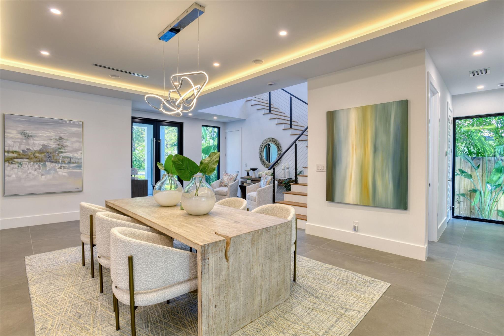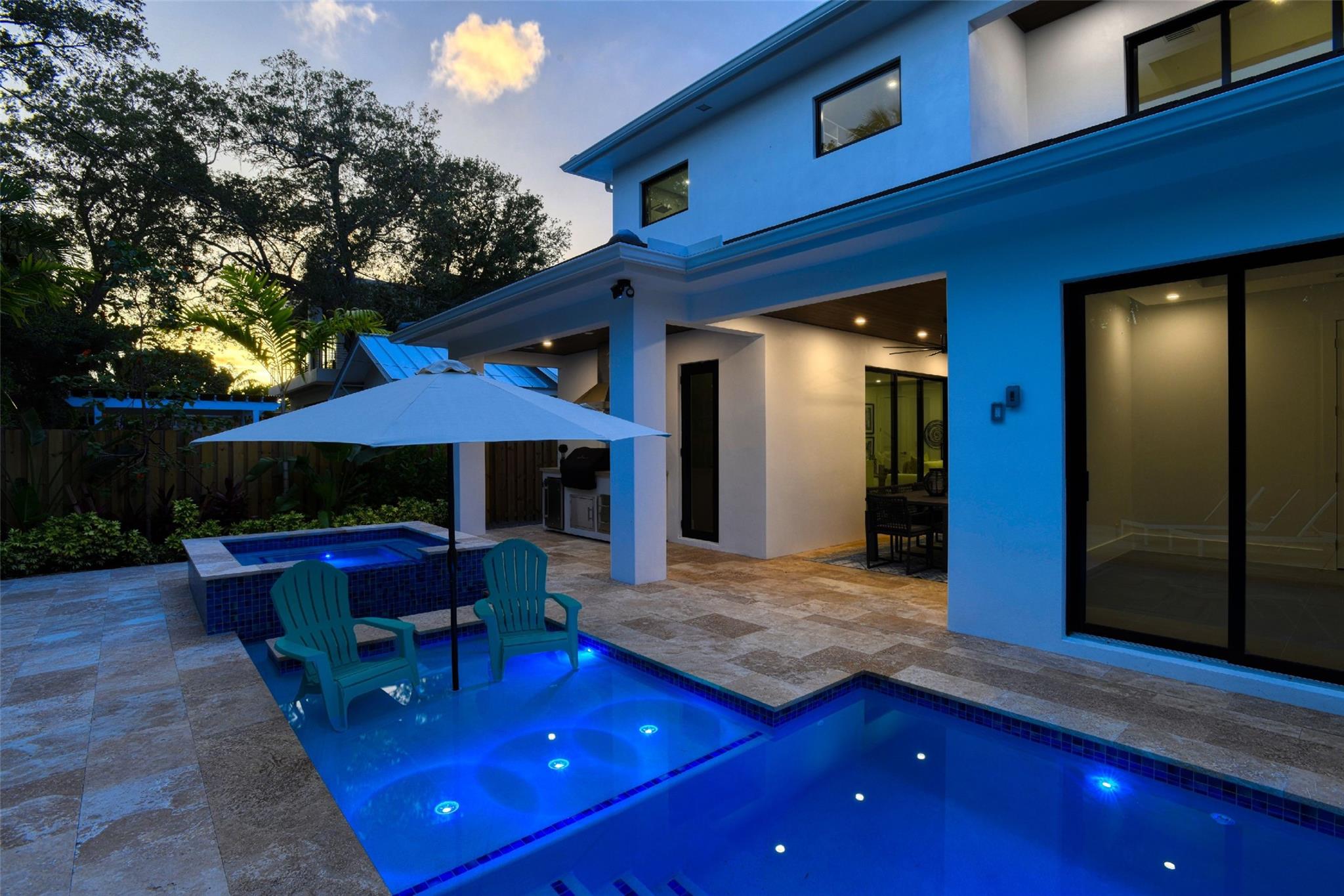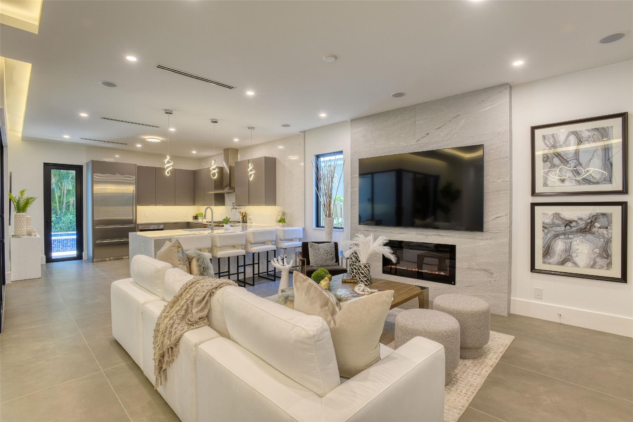 This Rio Vista New Construction home offers a stunning blend of style & function. The open-concept 1st floor features accordion doors that seamlessly connect the living room to the lanai, creating an indoor-outdoor flow perfect for entertaining. A versatile guest suite w/ a full bath opens to the lanai & can double as a home office. Upstairs, the luxurious primary suite impresses w/ his-and-her closets & a spa-inspired bathroom featuring a soaking tub within the shower. 2 generously sized guest bedrooms share a modern Jack-&-Jill bathroom. The gourmet kitchen has Wolf & Sub-Zero appliances, custom cabinetry, & elegant finishes. High ceilings, porcelain tile floors, & accent lighting enhance every space. Step outside to your private oasis, complete w/ a pool, hot tub, & lush landscaping.