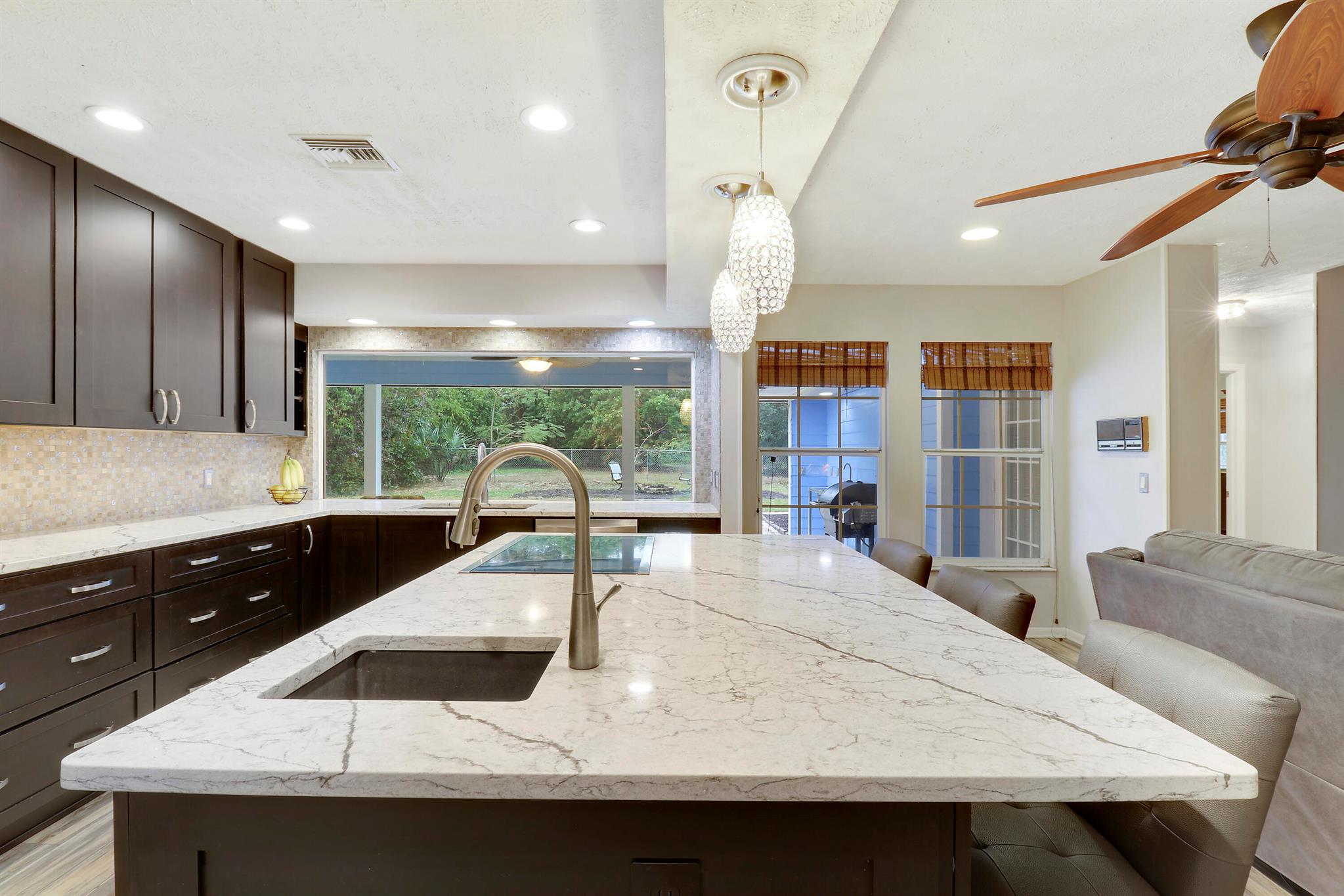 Check out this 3-bed, 2-bath PLUS 20x12 bonus room w/separate entry. Pool home with a metal roof on over 1/2 acre in desirable Rocky Point. No HOA. Boat/RV Parking. Renovated kitchen boasts quartz counters, a large island with prep sink, walk-in pantry & Stainless-Steel appliances, double oven. Custom cabinetry features pot drawers& pullouts. Italian porcelain tile floors throughout kitchen & living areas. Formal dining room with shiplap walls and chandelier. Living room with volume ceilings and French doors overlooking the pool and expansive backyard. Spacious master suite with French doors and walk-in closet. Master bath with double vanity. New solid wood interior doors. Hardi-plank siding. 2019 A/C. Minutes to boat launches, shopping & delicious restaurants.