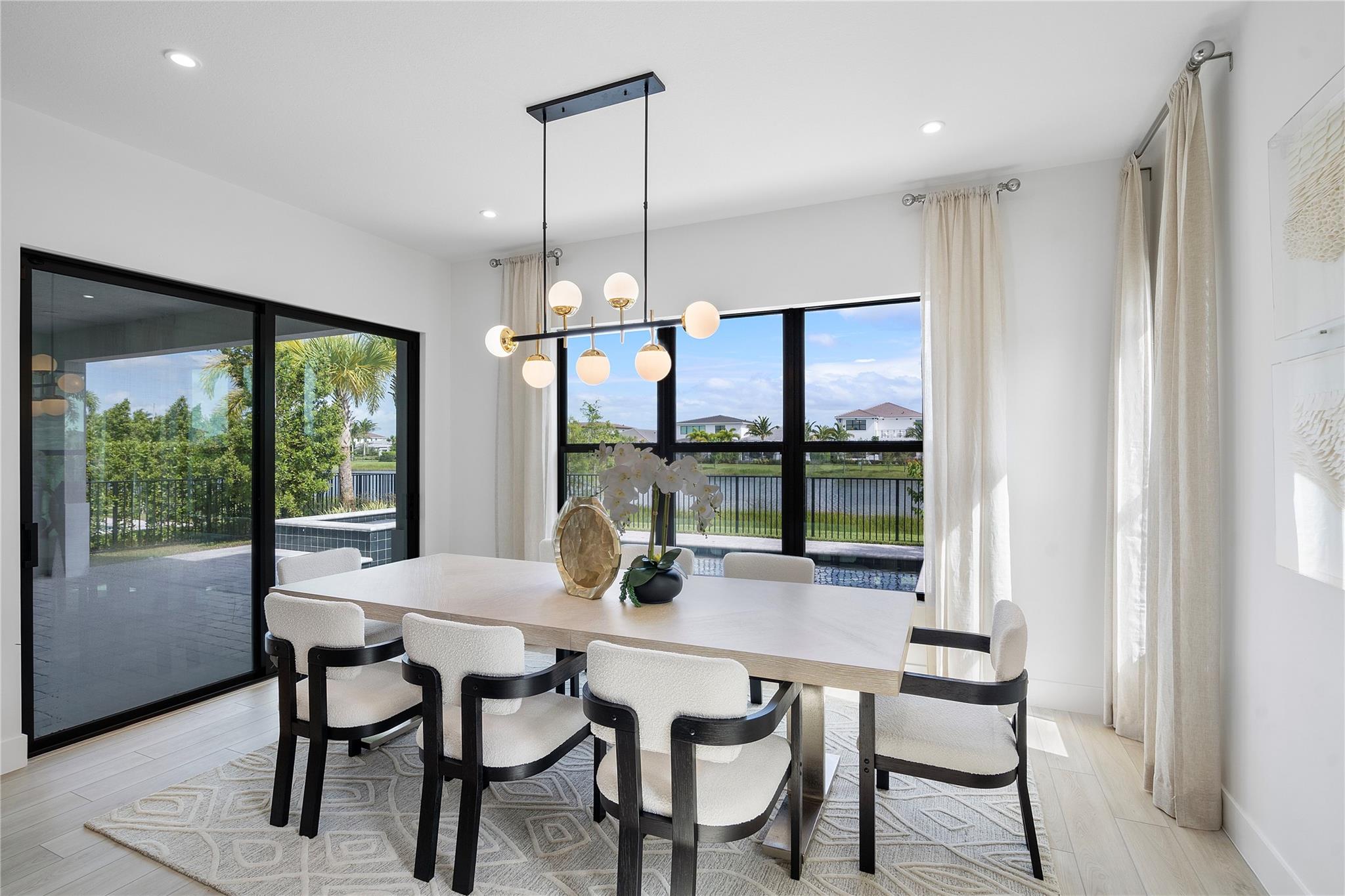 The Santa Monica floorplan at Solana Bay in Avenir is a contemporary style dream home! With 5 bedrooms and 6 baths, it offers ample space for a family or guests. The lakefront location adds to the charm, & having a custom pool included is a fantastic bonus for enjoying the Florida lifestyle. The three-car garage is perfect for multiple vehicles or extra storage. And at 4,096 square feet, there's plenty of room to spread out. The two-story design & oversized loft adds to the feeling of spaciousness. The abundance of natural light makes the interior feel even more welcoming. Solana Bay is a gated community which adds an extra layer of piece of mind. The his and her baths in the primary suite add a touch of luxury and convenience. Square Footage is approximate.