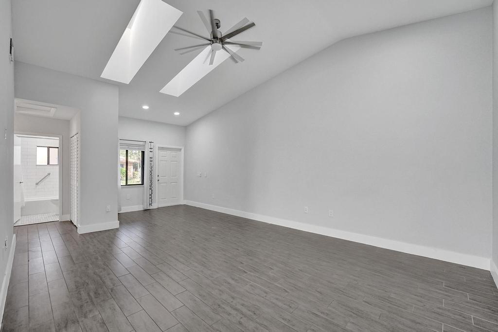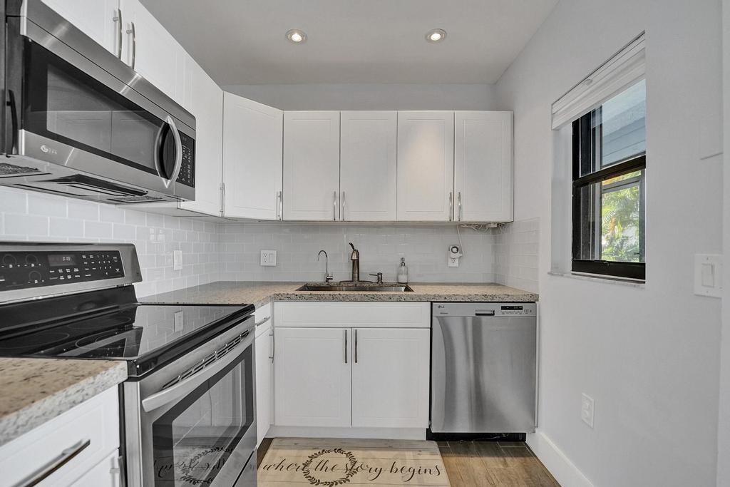 This stunning 3/2 end-unit townhome east of US1 is everything you've been searching for! From the moment you step inside, you'll fall in love with the vaulted ceilings, skylights, and modern updates throughout. The upgraded kitchen features sleek stainless-steel appliances, gleaming granite countertops, and stylish tile flooring that flows seamlessly through the entire home. As a unique corner unit, it offers extra outdoor space, including a screened-in porch, BBQ area, and a large green space ideal for entertaining or play. This gated community includes a pool and two assigned parking spaces, all while being in the heart of Hollywood's best. You’re just minutes from the beach, the vibrant new Dania Pointe shopping center, charming downtown Hollywood, FLL Airport, and more. Roof & AC 2018.