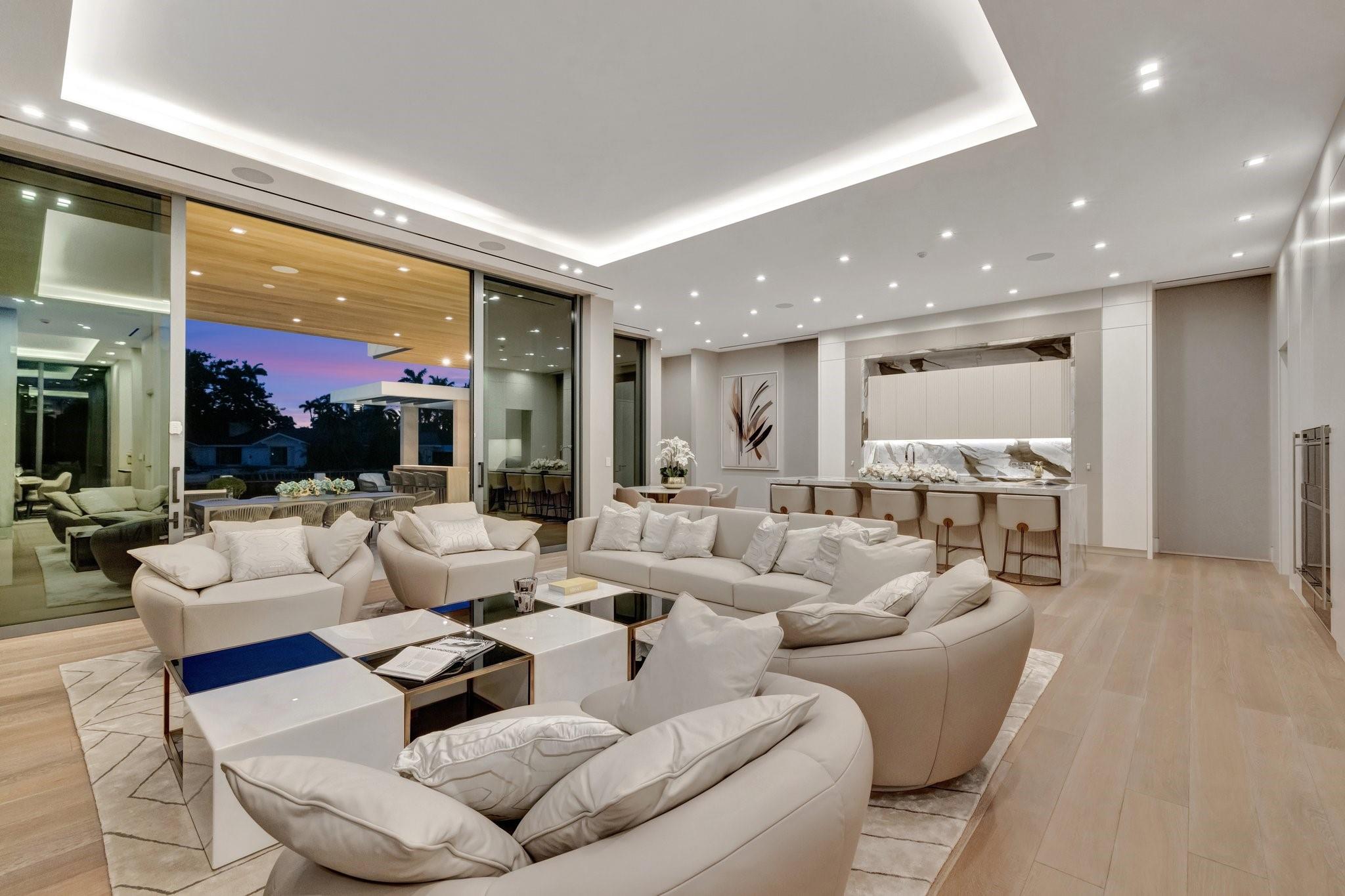 One of the newest Estates to be completed in guard-house gated & private Surf Club, Harbor Beach ! 110 ft deep-water dockage, open panoramic views on wide turning basin & premier Del Lago address. Stunning Coastal Modern collaboration by Randall Stofft/Sarkela Corp/professional interior design & furnished by Italian D-Editors. Built to highest custom standards with extraordinary detailing & materials throughout. Floorplan focus on open concept living, Chef's kitchen & separate prep/caterers kitchen, expansive club/media room, elegant formal dining area & first level VIP suite. Ultra-luxurious primary suite with dual spa-style baths & separate completed custom closets. Spacious bedrooms & second VIP suite, incredible views from many rooms, private resort style pool. Lift compatible garages.