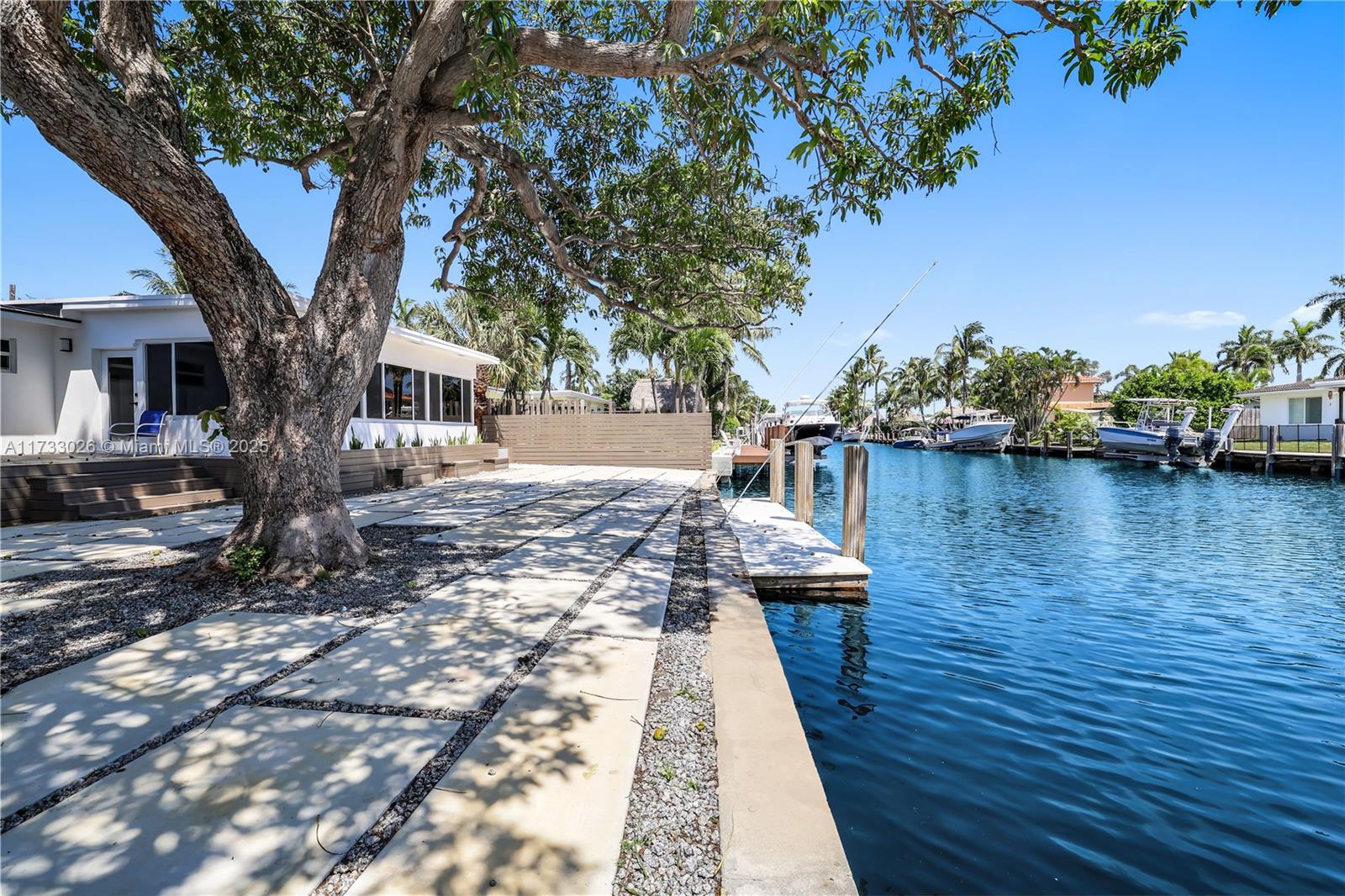 BRAND NEW ROOF, BRAND NEW AC, ALL IMPACT WINDOWS. This stunning property has undergone a meticulous transformation revealing a masterpiece of modern living with 70 ft of water frontage & ocean access. Every inch of this residence has been thoughtfully reimagined. The heart of this home is its modern kitchen & open layout with tile floors, plenty of natural light creating a bright & welcoming ambiance. Step outside to the expansive outdoor oasis, where the enchanting melody of the water complements the generously sized patio invites al fresco dining while the private dock offers a gateway to endless nautical adventures.