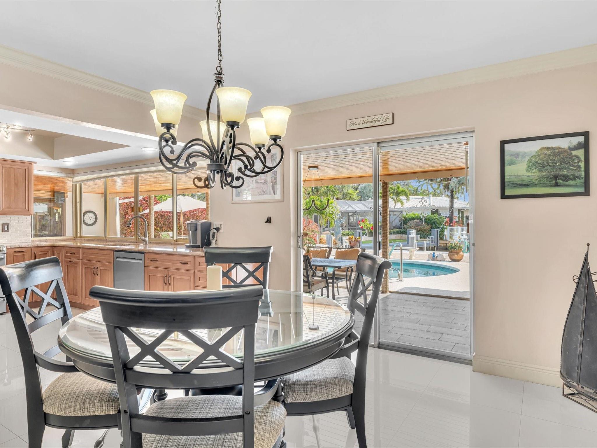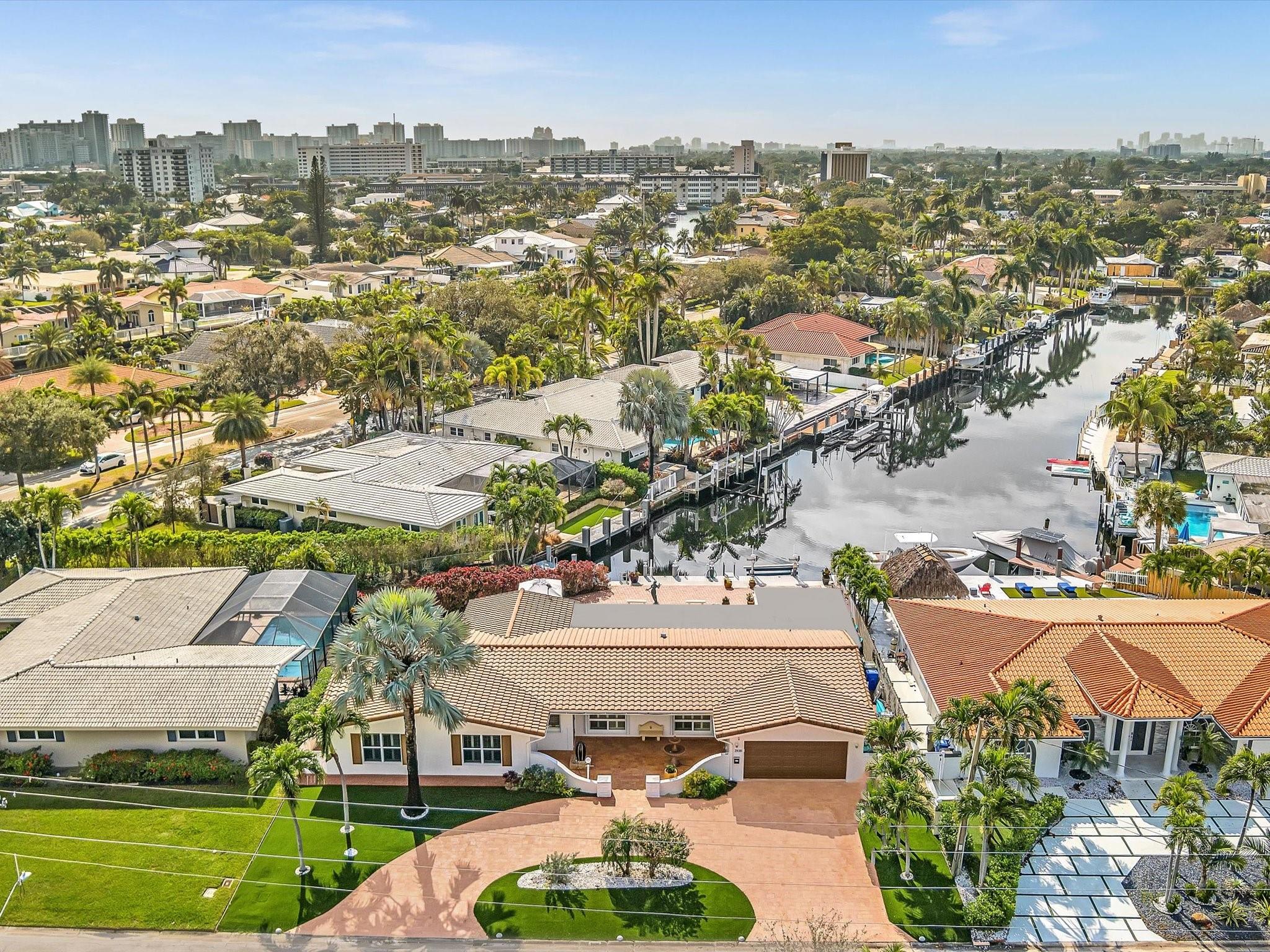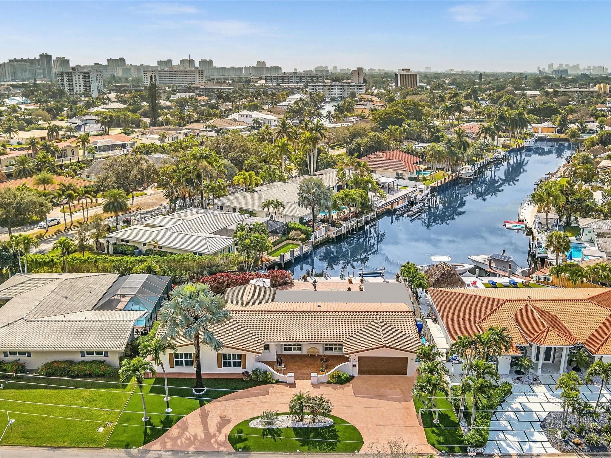 Wonderful waterfront home in the coveted Landings Neighborhood. This 4/4 home is ideally situated for those who desire a coastal lifestyle -boating, fishing & kayaking. Bring your boat - deep-water access, mins to Intracoastal, with 7000 lb boat lift. New seawall, dock, floating dock 2023. Two master suites, with private mother-in-law or au pair suite. True eat-in kitchen, perfect for family gatherings. The spacious living areas have amazing water views that flow seamlessly to the private covered patio & heated pool, offering a serene retreat for outdoor living. Plenty of storage with huge walk-in closets, kitchen pantry, circular drive, two-car garage, Hurricane Impact Windows. Mins. to Beach, Lauderdale-by-the Sea, restaurants & shopping. Freshly painted outside 12/2024, Roof 2013.