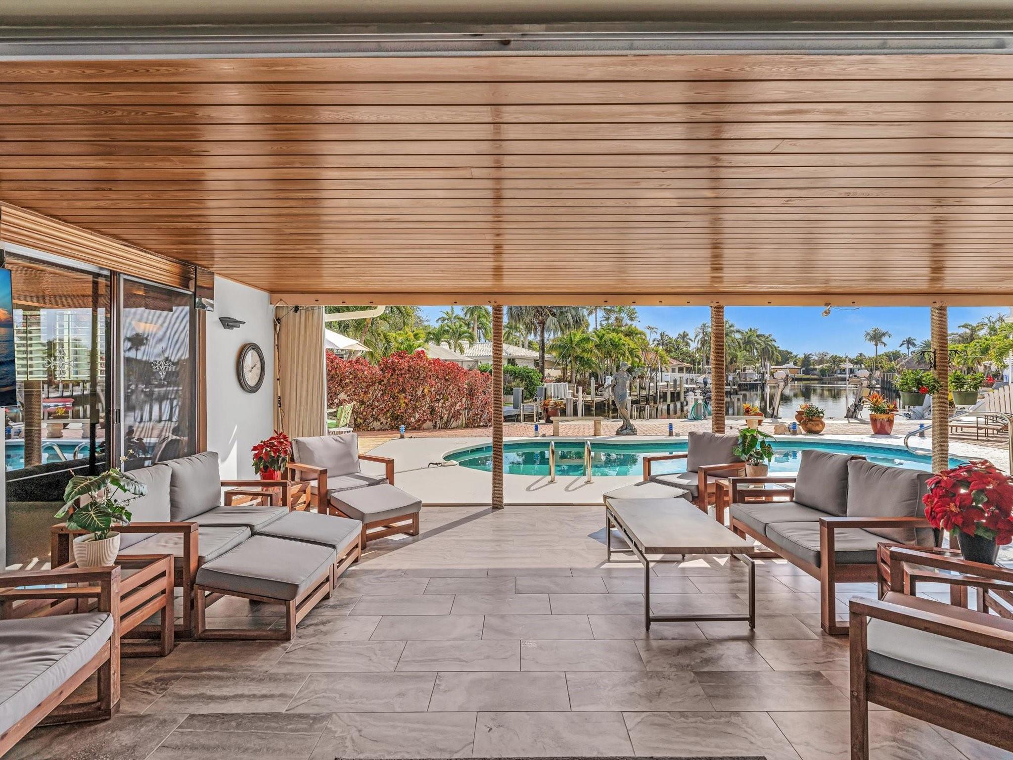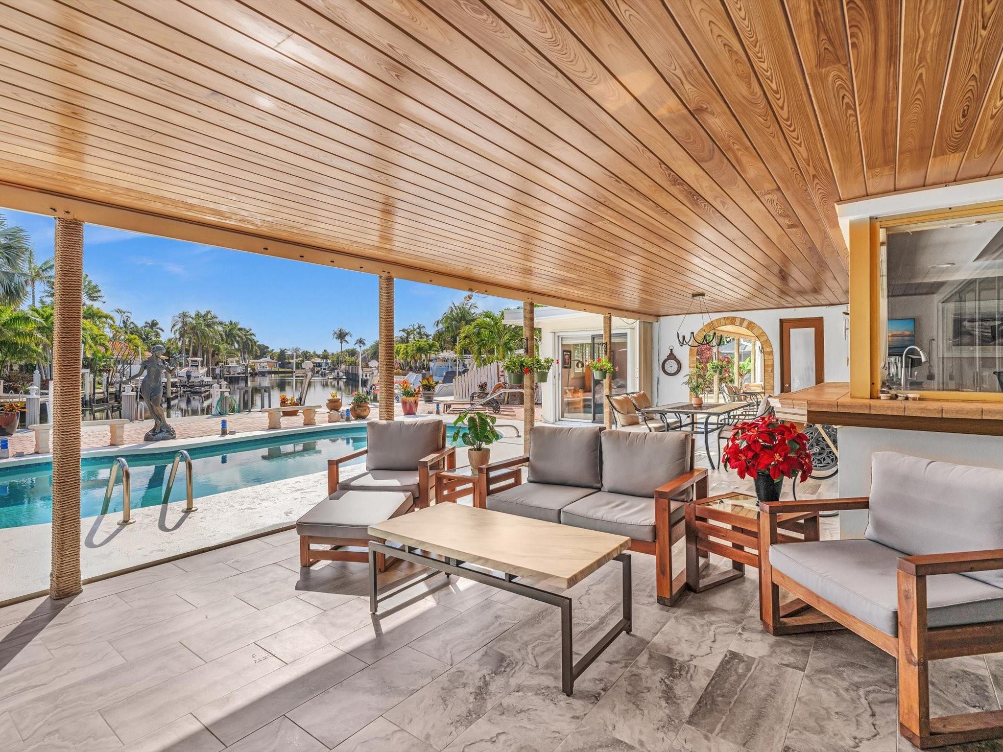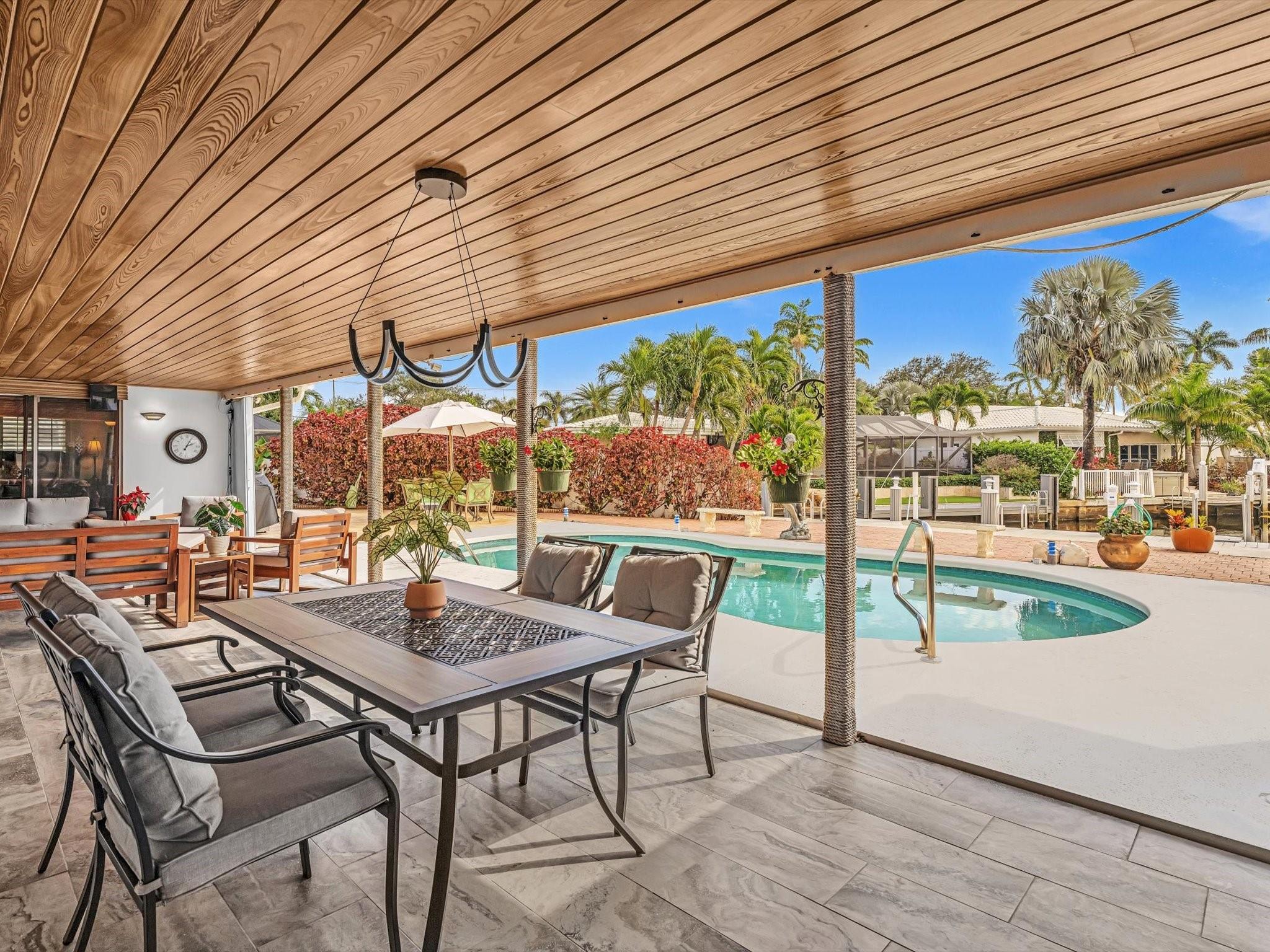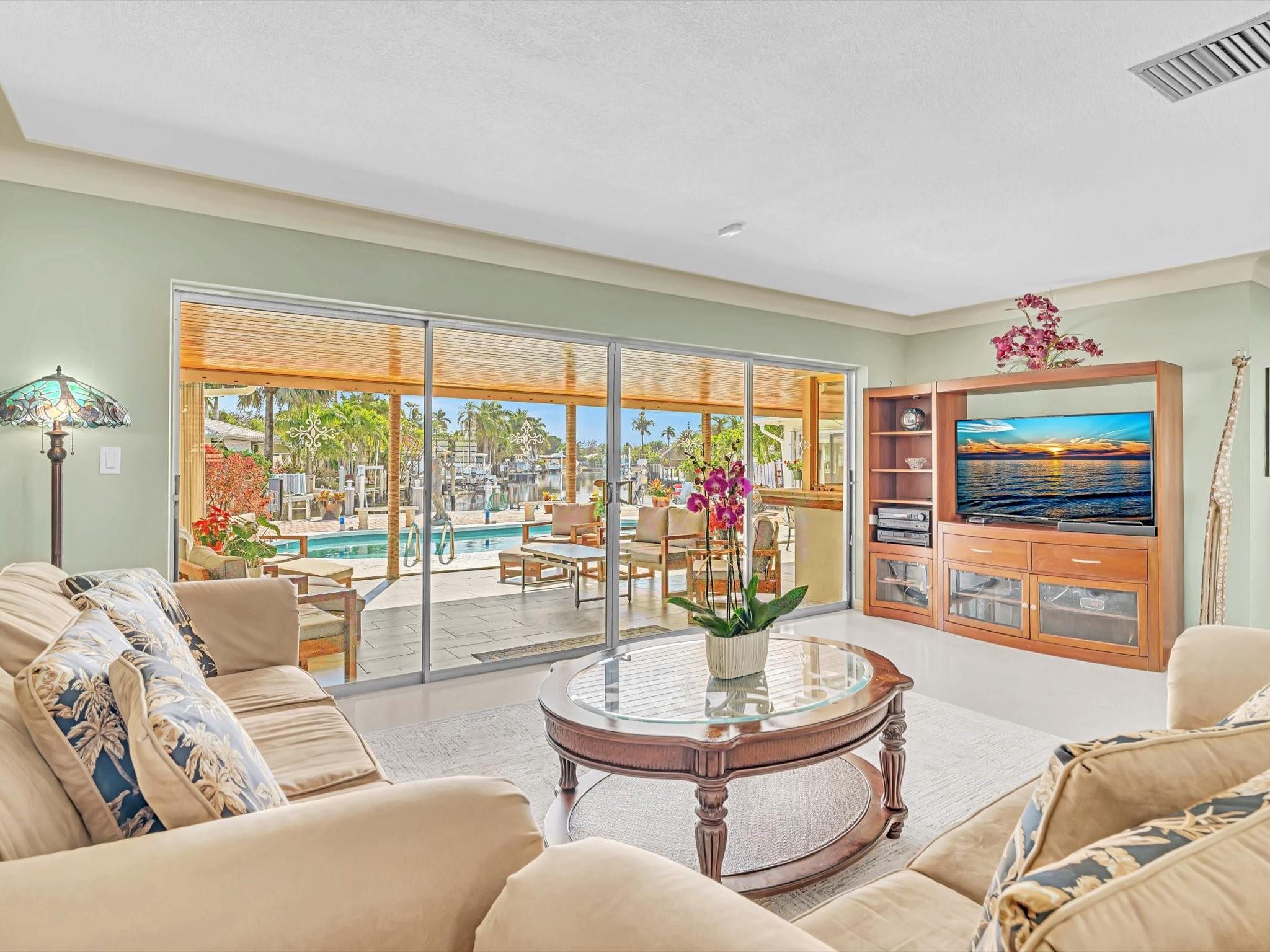 Wonderful waterfront home in the coveted Landings Neighborhood. This 4/4 home is ideally situated for those who desire a coastal lifestyle -boating, fishing & kayaking. Bring your boat - deep-water access, mins to Intracoastal, with 7000 lb boat lift. New seawall, dock, floating dock 2023. Two master suites, with private mother-in-law or au pair suite. True eat-in kitchen, perfect for family gatherings. The spacious living areas have amazing water views that flow seamlessly to the private covered patio & heated pool, offering a serene retreat for outdoor living. Plenty of storage with huge walk-in closets, kitchen pantry, circular drive, two-car garage, Hurricane Impact Windows. Mins. to Beach, Lauderdale-by-the Sea, restaurants & shopping. Freshly painted outside 12/2024, Roof 2013.