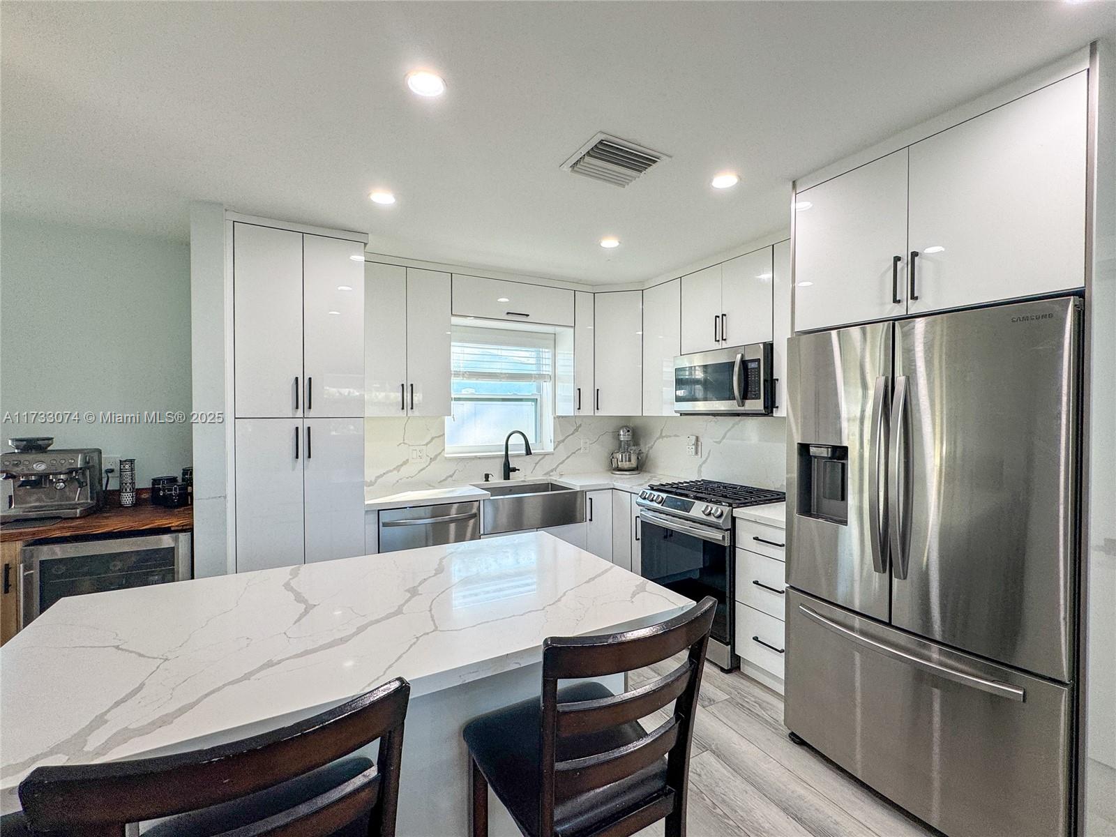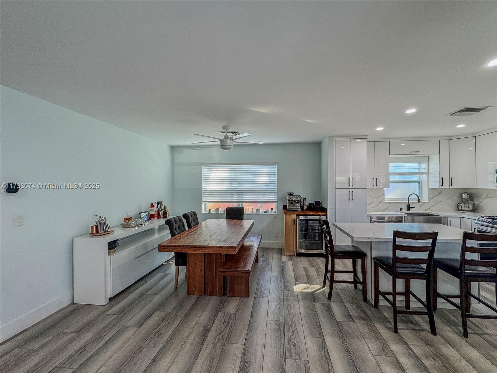 Welcome to an inviting 3 bedroom 2 bathroom home on the water with ocean access! This turnkey updated home is located on a tranquil no-through street on the canals of East Hollywood. Inside you will find an open floorplan that has been elegantly updated. Kitchen has timeless quartz countertops complete with smart stainless appliances. Primary bedroom features large walk-in closet (previously 4th bedroom, easy to convert back) and ensuite which has dual sinks. Family room leads out to harmonious backyard located on the canal. Boat dock has been updated with Trex, electric, and water spigot ready for outdoor activities. Mature mango and banana tree in backyard. Large laundryroom/mudroom entrance from carport complete with appliances. This home is ready for its next owner to call home!