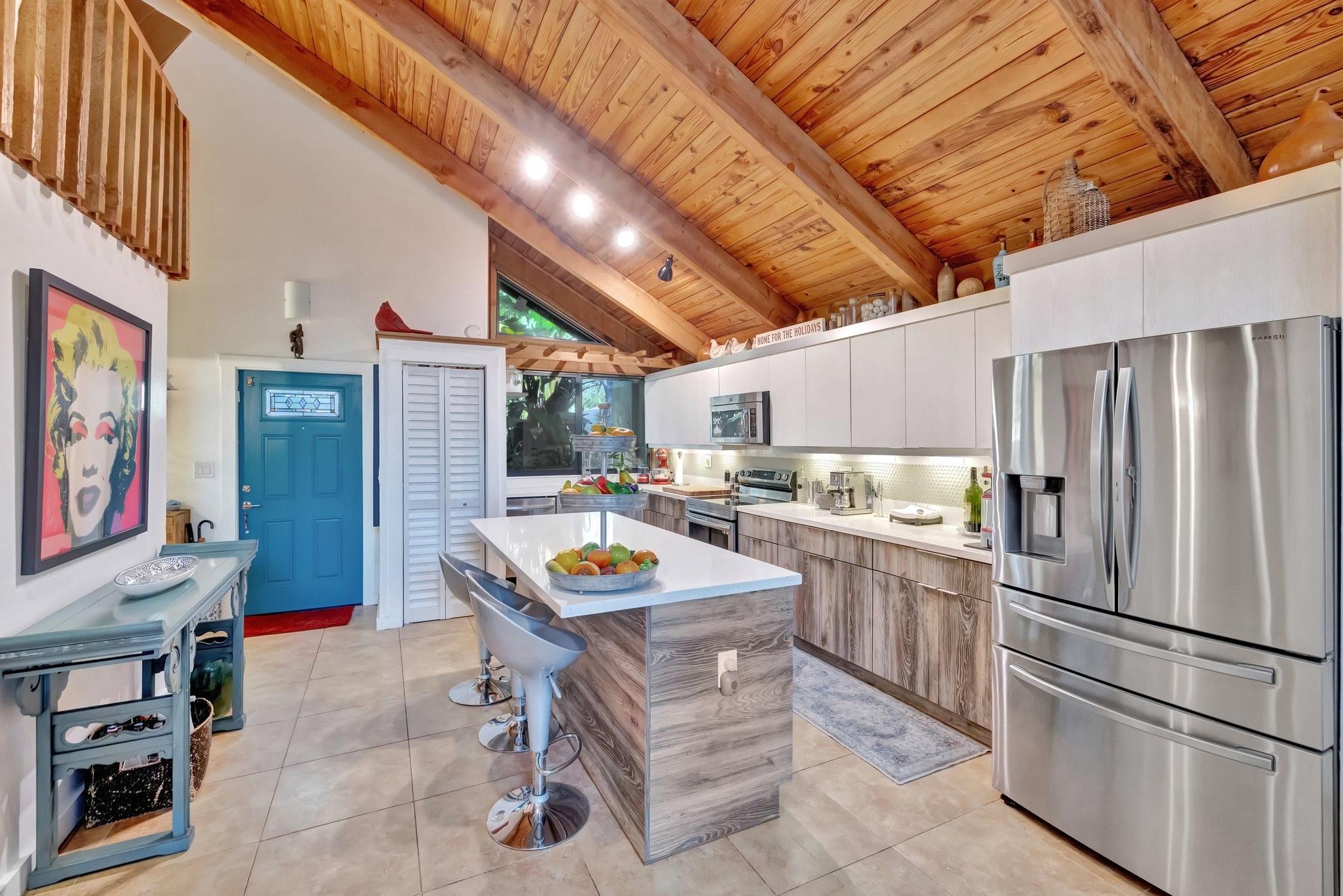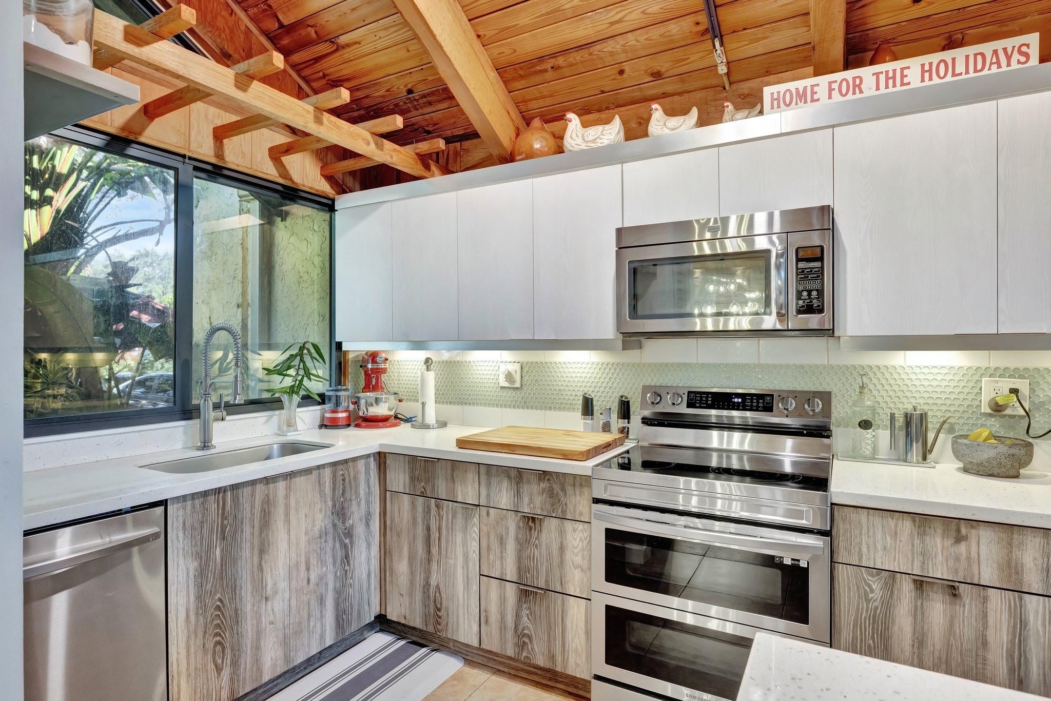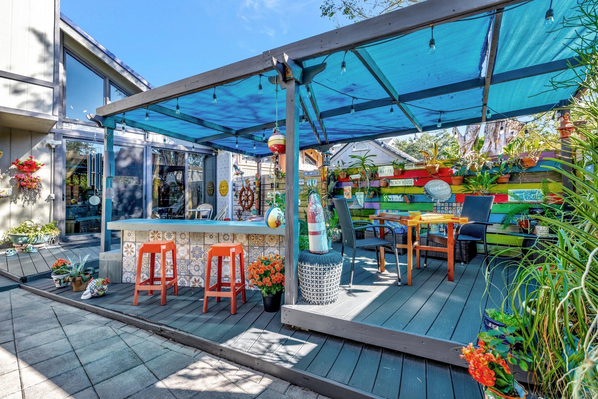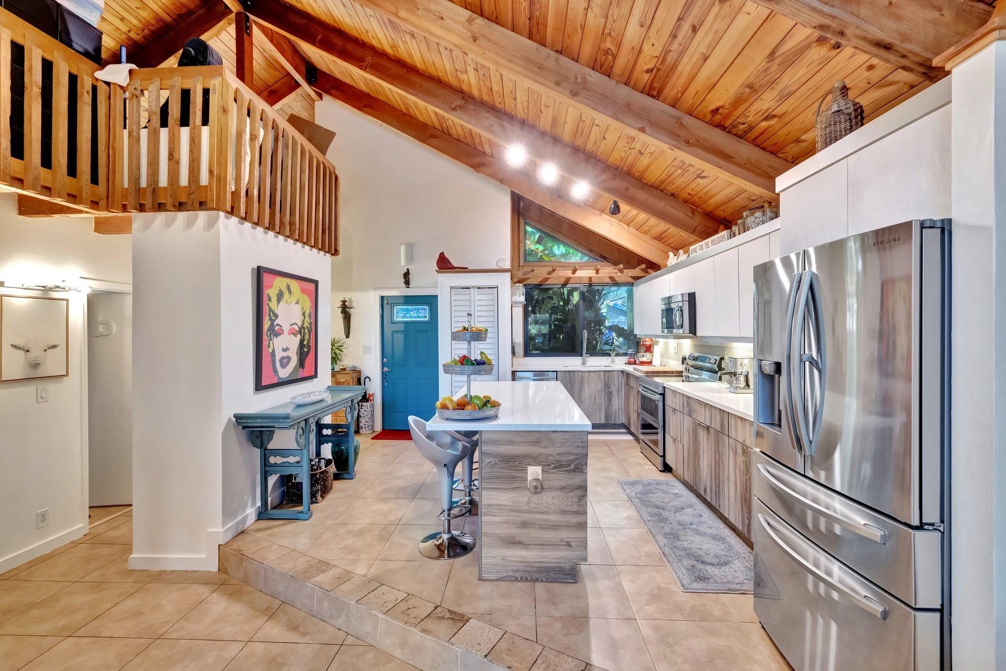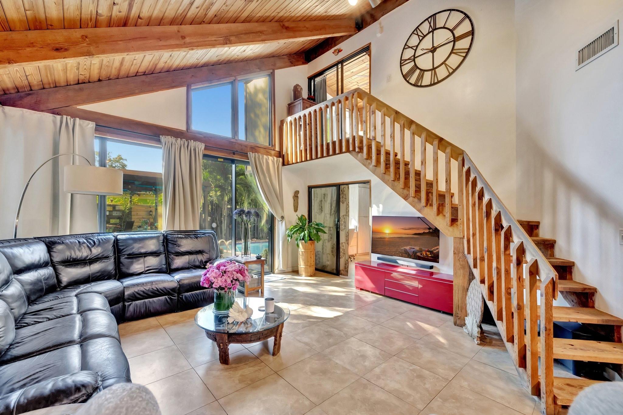 Welcome to Your Private Paradise Resort! This corner townhome is an entertainer’s dream! Move-in ready with modern updates, fresh paint, and stylish finishes, this home offers effortless comfort from day 1. The contemporary kitchen features beautiful quartz countertops, impressive custom cabinets, and stainless appliances. Soaring cedar ceilings invite relaxation in the living area overlooking the pool. The primary suite upstairs offers privacy. 2 bdrms downstairs for family or guests. Secured with impact windows & doors. Florida room is 3rd bedroom/office, plus loft for 4th room or study. Relax in your private pool, enjoy outdoor dining, and entertain at the summer kitchen/bar, all surrounded by a lush garden with a shed for extra storage. Very low HOA —schedule your tour today!