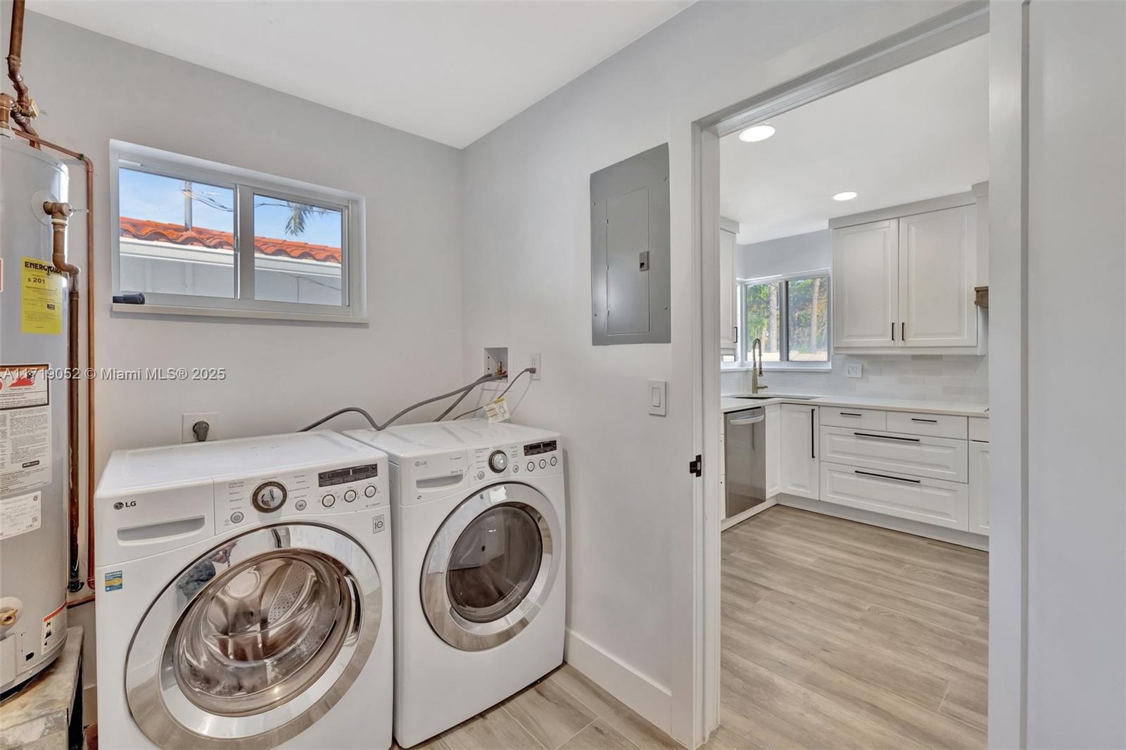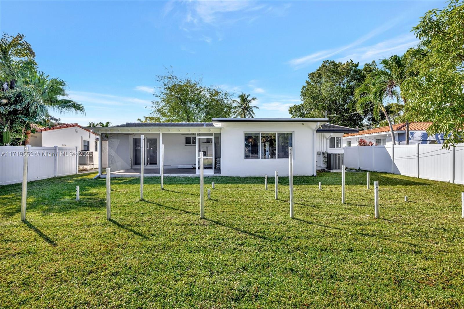 Modern bohemian 3-bed, 2-bath home w/ 2022 Tile ROOF by Paletz, Hurricane IMPACT windows & doors, '22 ELECTRIC PANEL, updated plumbing, '19 SCREENED PATIO & newer AC. Open concept w/ gorgeous white kitchen, quartz counters & newer stainless appliances w/ gas stove! Bright living room, dining area & den overlooking backyard + spacious laundry rm w/ washer & dryer. Piles started for a new pool - Seller invested over $49k toward project - now's your chance to customize & complete your backyard. Large, covered screened patio w/ travertine marble overlooks backyard. No HOA or Rental Restrictions. Alley behind home for garbage. Ideally located near houses of worship, lakes, intracoastal, beaches, schools, parks, shopping, dining & major highways.