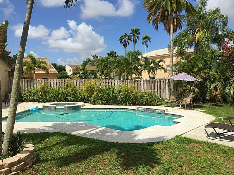 Great family oriented neighborhood, Custom kitchen cabinets with elegant granite countertops, Stainless steel appliances, tastefully renovated bathrooms with granite all over, , ceramic tile in kitchen, living areas and master bath. Masterbedroom downstai rs. Berber carpeting through out on stairs and second floor. Tropical garden setting, fenced in oversize back yard with pool and deck. Screened in covered patio great for entertaining. For showings please see broker remarks.