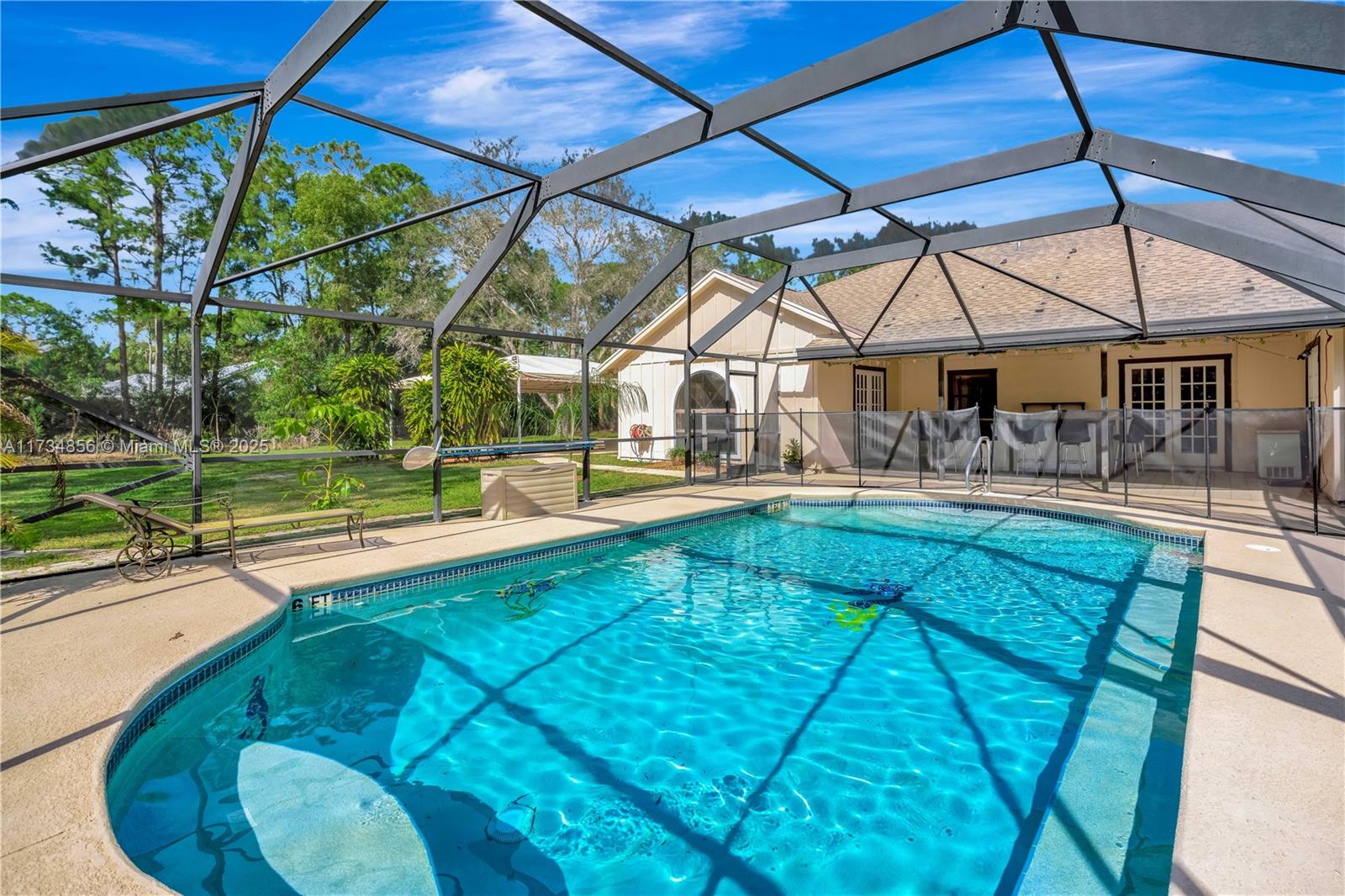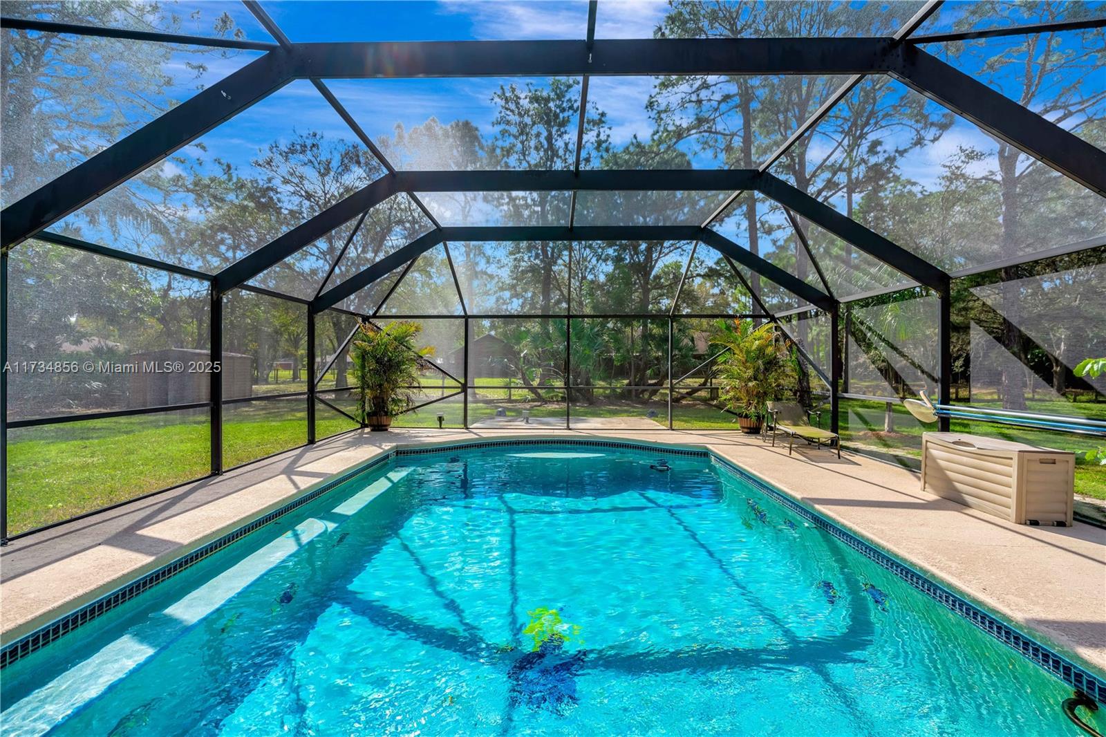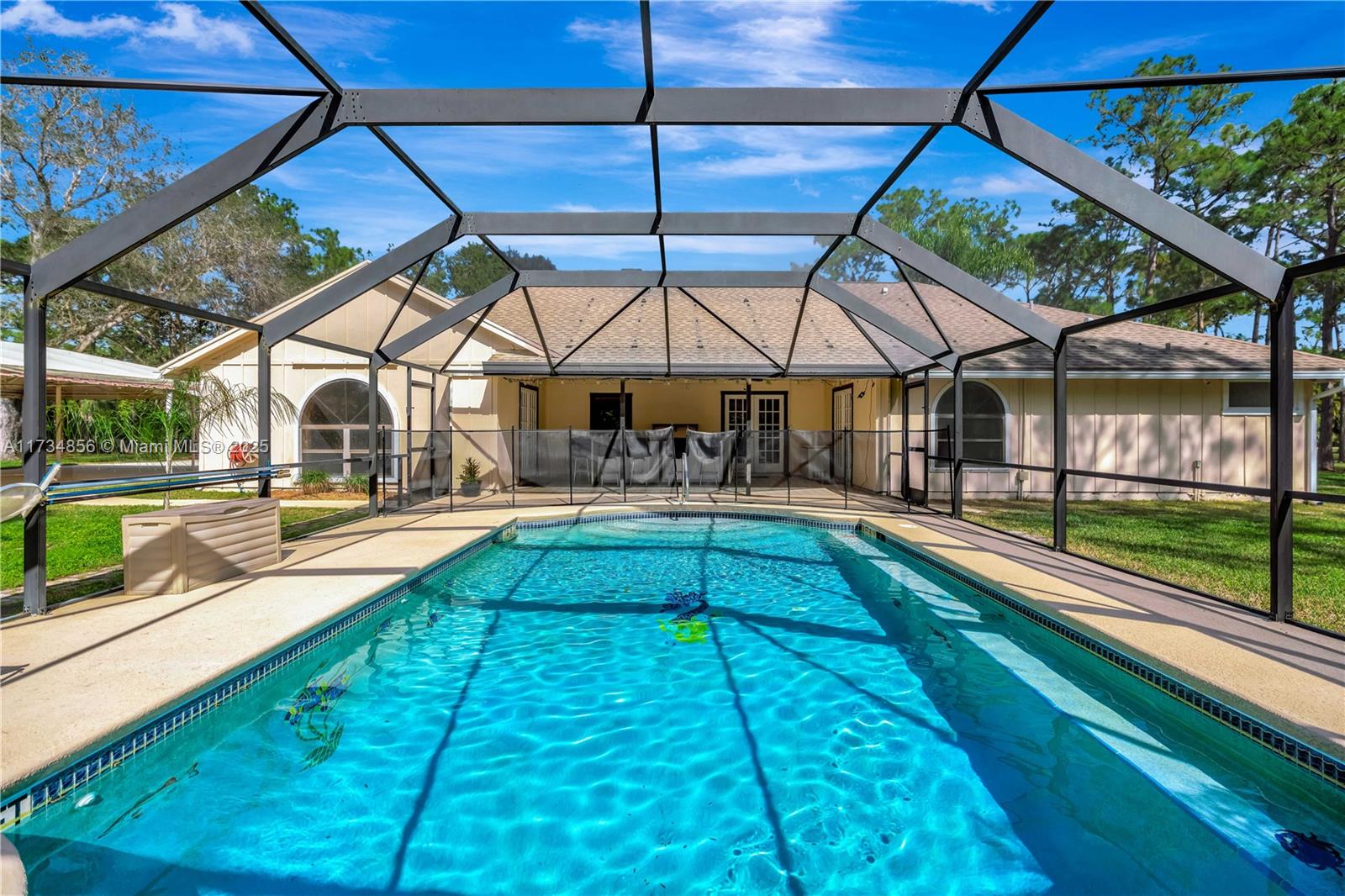 Tucked away on a private fully fenced lot, this spacious 2454 sqft home offers 3 bedrooms, 2.5 baths plus an office & plenty of room to host family gatherings. Freshly painted, boasting newer kitchen appliances & a sleek primary bathroom with floating vanities, rain shower & body jets. Enjoy the expansive screened-in saltwater pool with full service patio bar including: ice maker, sink, refrigeration & RGB lighting. Pool area features Pentair pool automation, a new salt cell, & RGB LED pool light, all surrounded by a child safety pool fence. The gazebo/carport is ideal for large occasions. Smart panels control lighting, cameras, & house music. Additional upgrades include: tankless water heater, 50amp RV/EV hookup, new toilets, large safe, hurricane-rated garage door & whole-house gutters.