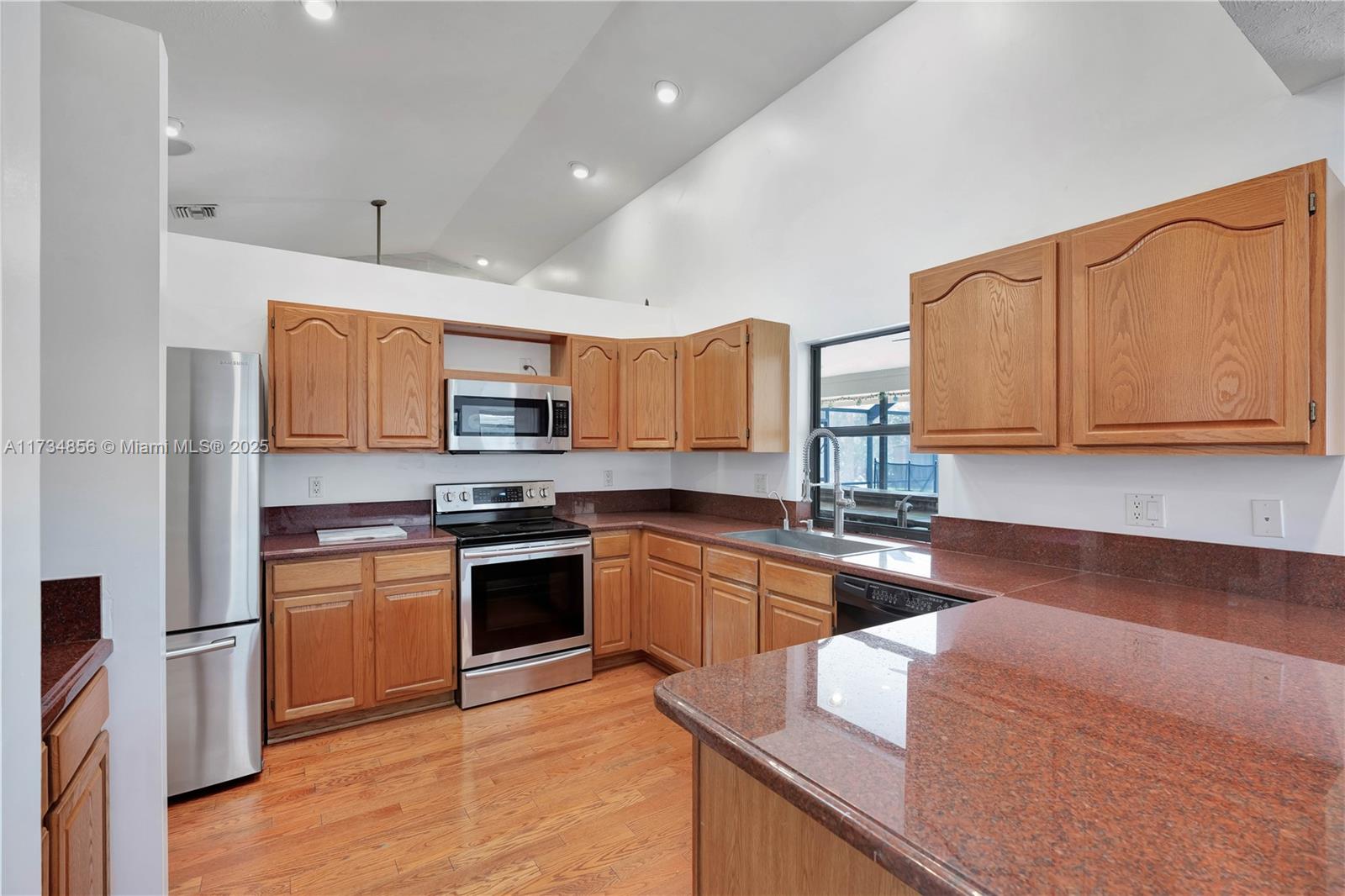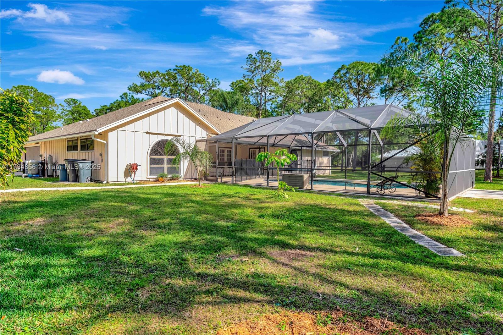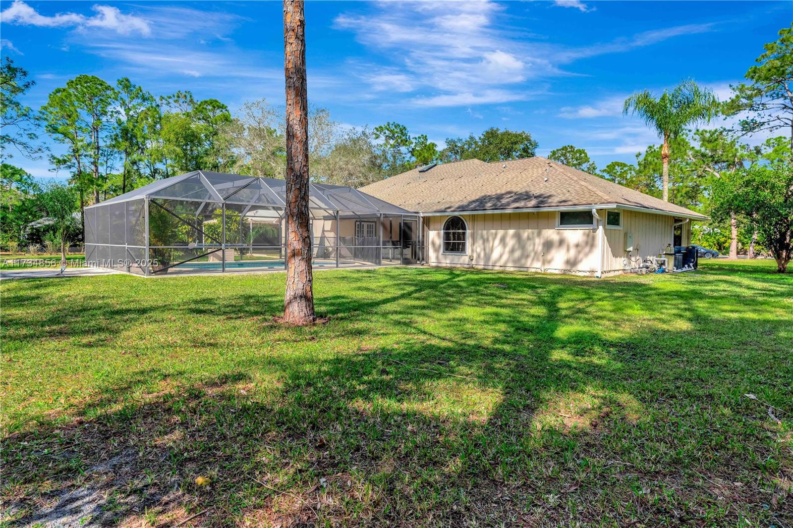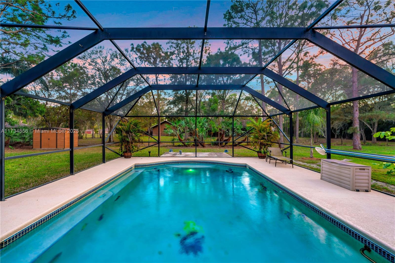 Tucked away on a private fully fenced lot, this spacious 2454 sqft home offers 3 bedrooms, 2.5 baths plus an office & plenty of room to host family gatherings. Freshly painted, boasting newer kitchen appliances & a sleek primary bathroom with floating vanities, rain shower & body jets. Enjoy the expansive screened-in saltwater pool with full service patio bar including: ice maker, sink, refrigeration & RGB lighting. Pool area features Pentair pool automation, a new salt cell, & RGB LED pool light, all surrounded by a child safety pool fence. The gazebo/carport is ideal for large occasions. Smart panels control lighting, cameras, & house music. Additional upgrades include: tankless water heater, 50amp RV/EV hookup, new toilets, large safe, hurricane-rated garage door & whole-house gutters.