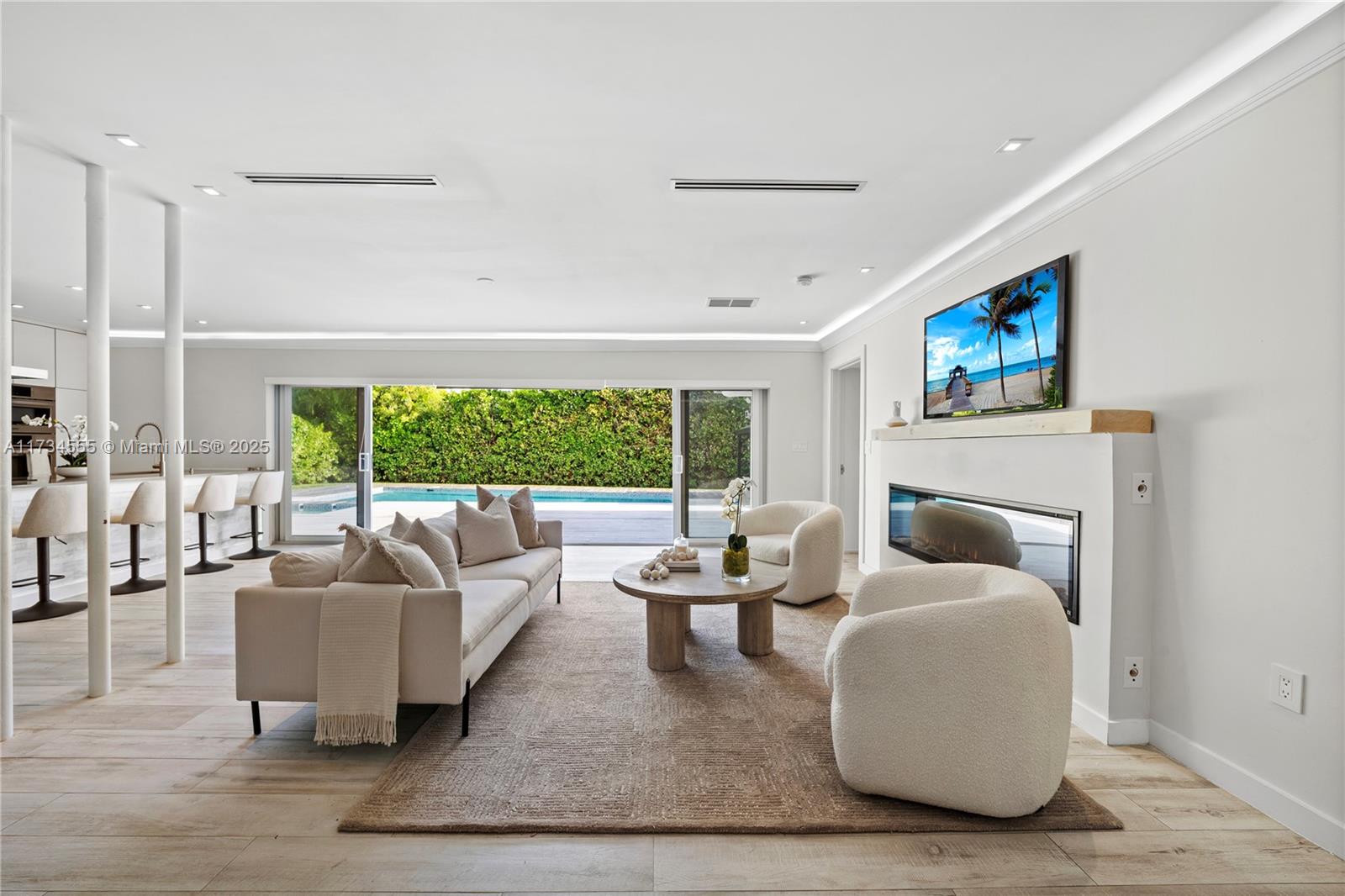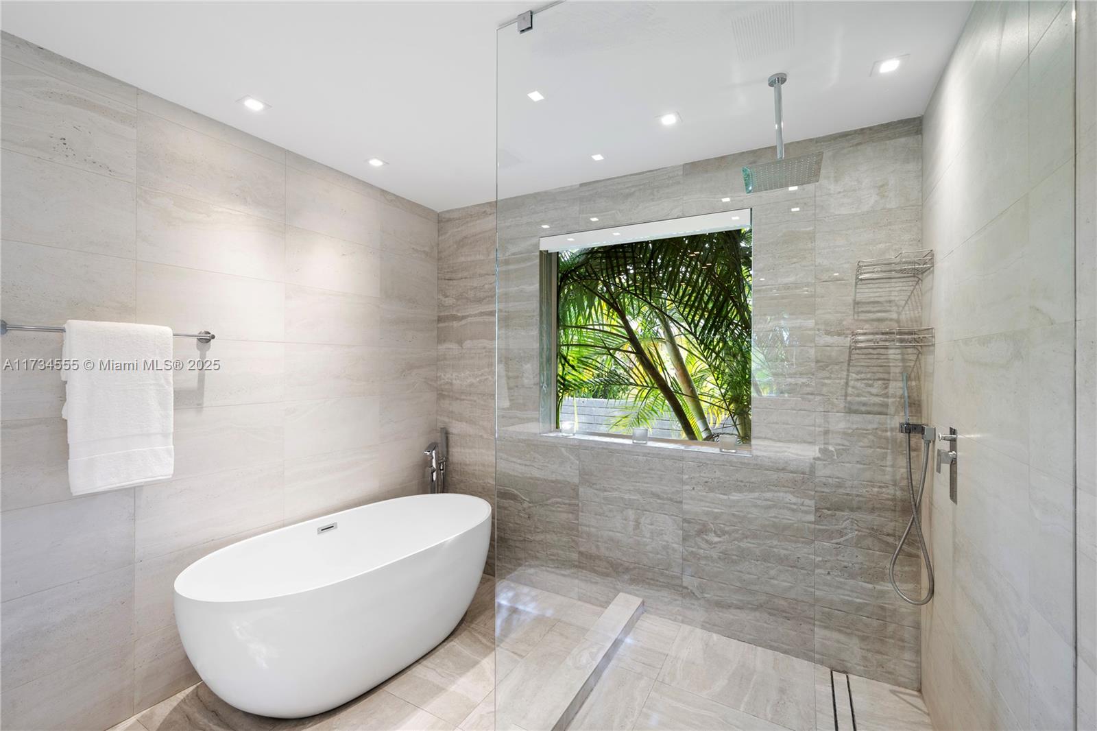 This ultra-private home is situated on an oversized 14,028 SF lot, offering 3BD, 3.5BA, 2 car-garage with A/C and a Tesla charger. Enjoy an open and airy floor plan with abundant natural light, large bedrooms with en suite baths, spacious living and entertaining areas, gourmet chef's kitchen with top-of-the-line Bosch appliances, custom cabinetry and large island. The primary suite is a true retreat, boasting a walk-in closet, motorized window treatments and a spa-like bath with soaking tub and separate shower. Outside find a beautifully enclosed landscaped backyard oasis with alfresco dining, a large 36' saltwater pool, jacuzzi and lush tropical greenery. Located in Miami Shores, one of Miami's most sought-after neighborhoods. Near top schools, shopping & dining. 15 mins to MIA airport.
