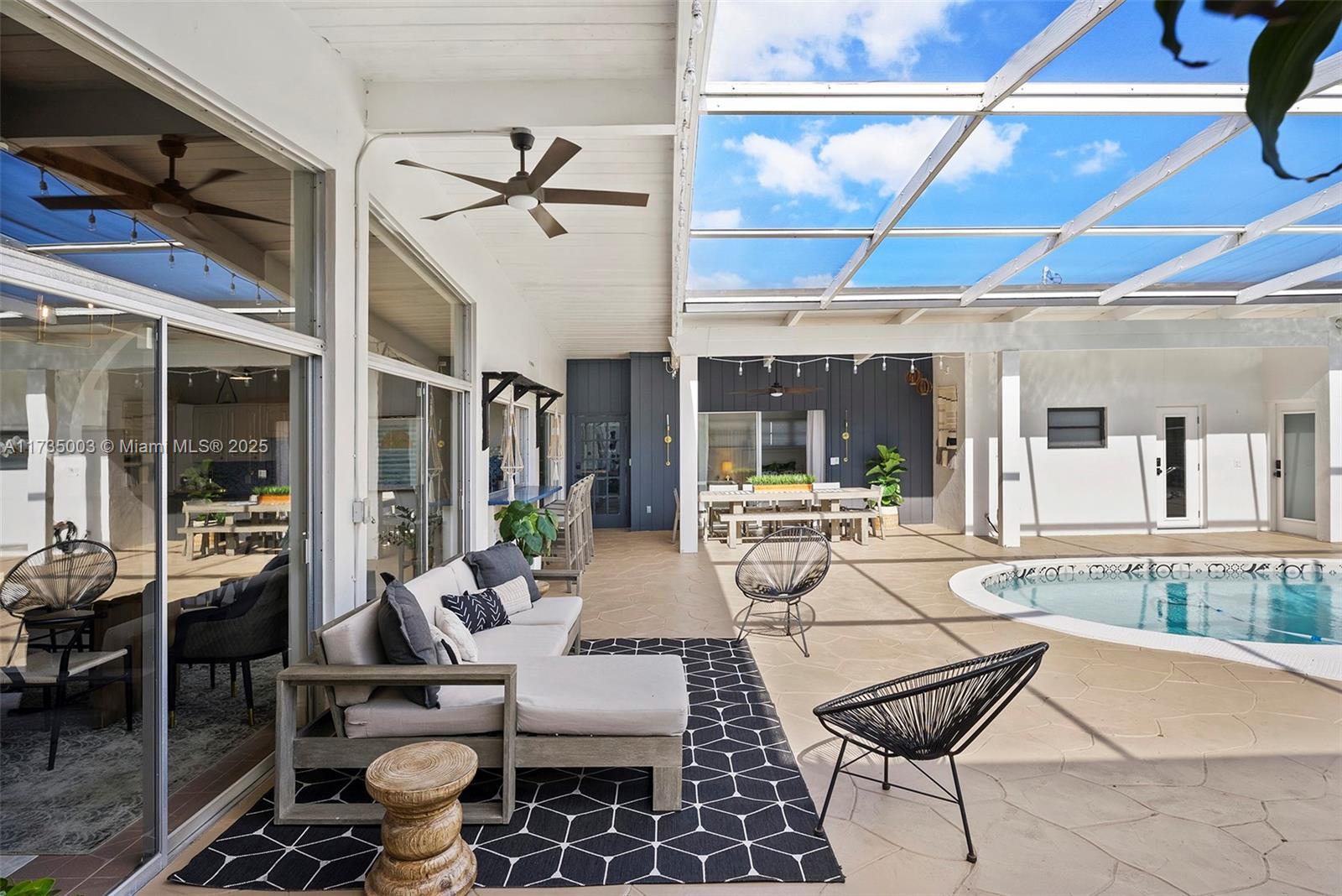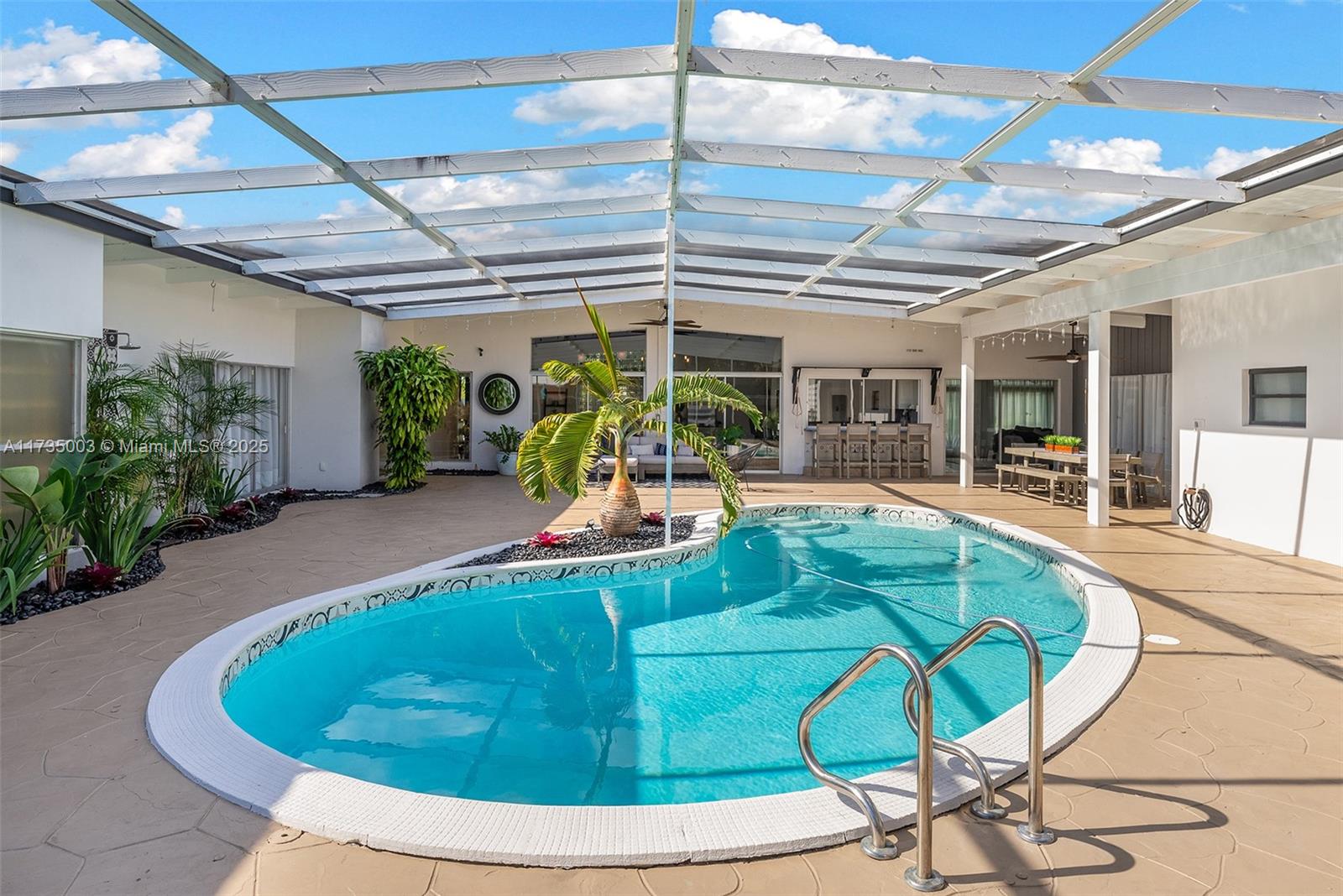 Welcome to this impeccable mid-century move-in ready modern gem in highly desirable Hollywood Hills. Every detail of this spacious home adds character and charm, and exudes sophistication, with impeccable attention to detail, creating a space that feels effortlessly luxurious. A bright, open layout features natural light, large windows, vaulted ceilings, and stylish finishes that embody mid-century design, blending timeless architecture with modern upgrades. Recent upgrades include two new AC units (2024) with updated ductwork, partial impact windows, a reinforced impact door, a saltwater heated pool, an outdoor shower, turf and a whole-house water softener with reverse osmosis filtration. This home offers style, function, and peace of mind in a prime South Florida location.