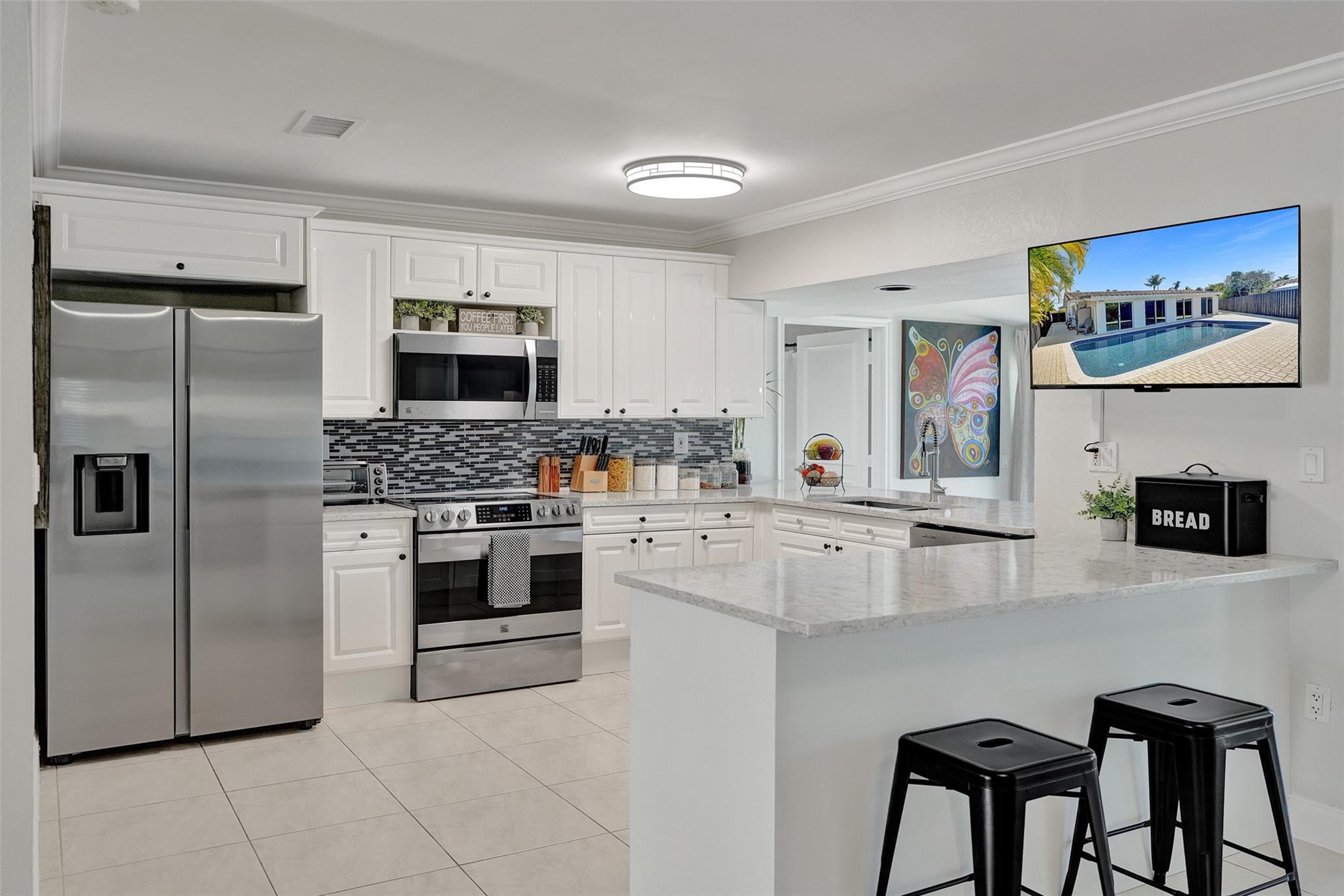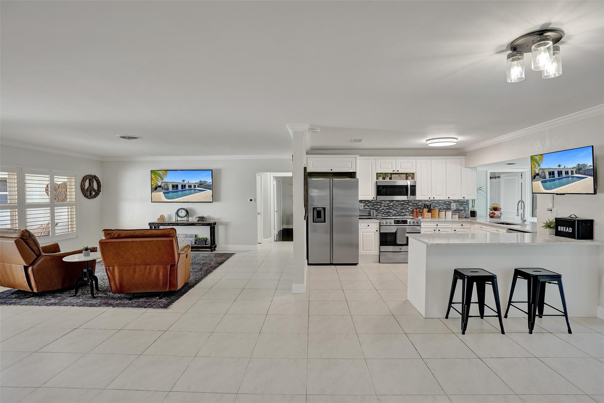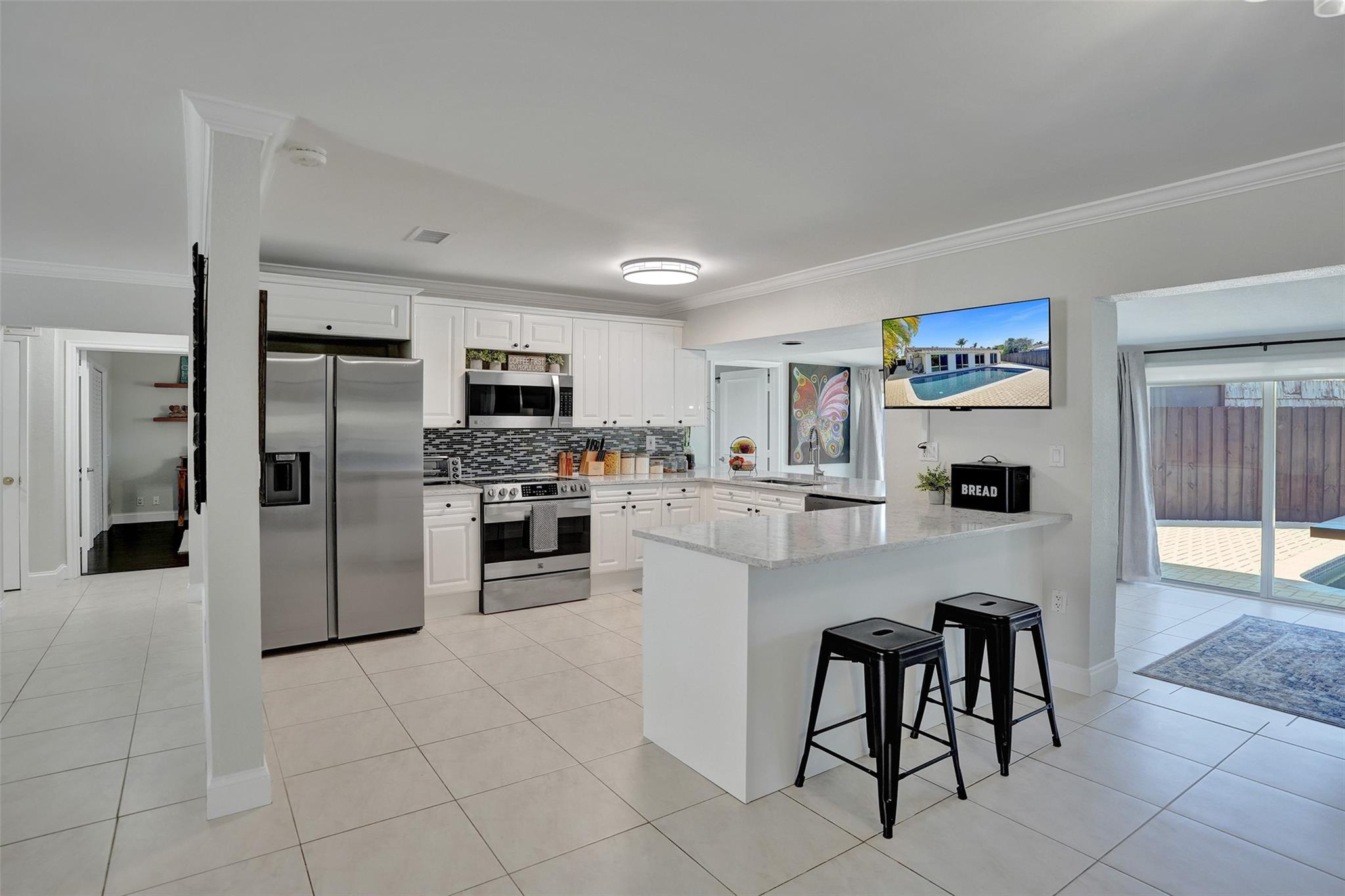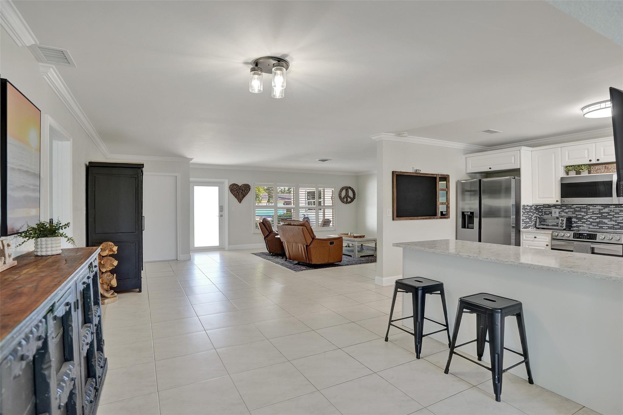 Discover this stunning 4-bedroom, 3-bathroom waterfront home tucked in on a cul-de-sac street. Nestled on 25ft of water and an oversized .213 acre lot, this property is ideal for anyone who loves an amazing water view. From the charming covered front porch, step inside to find a spacious and inviting layout, perfect for entertaining. Abundant storage options, including a spacious walk-in closet and a newly epoxy-coated garage, provide ample space for all your needs. Four impact sliding doors seamlessly blend indoor and outdoor living. Out back, enjoy your private oasis featuring a recently refinished pool and a fully fenced yard, providing privacy for relaxation, play, and pets. Don’t miss this opportunity to own a waterfront retreat with incredible outdoor living spaces.