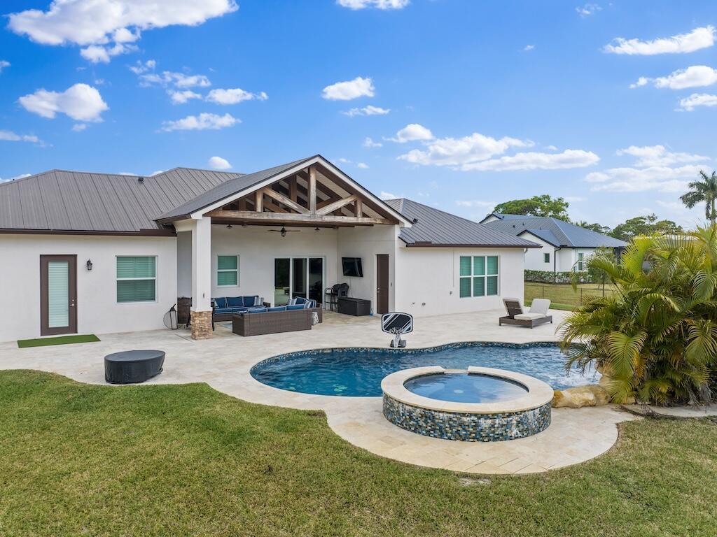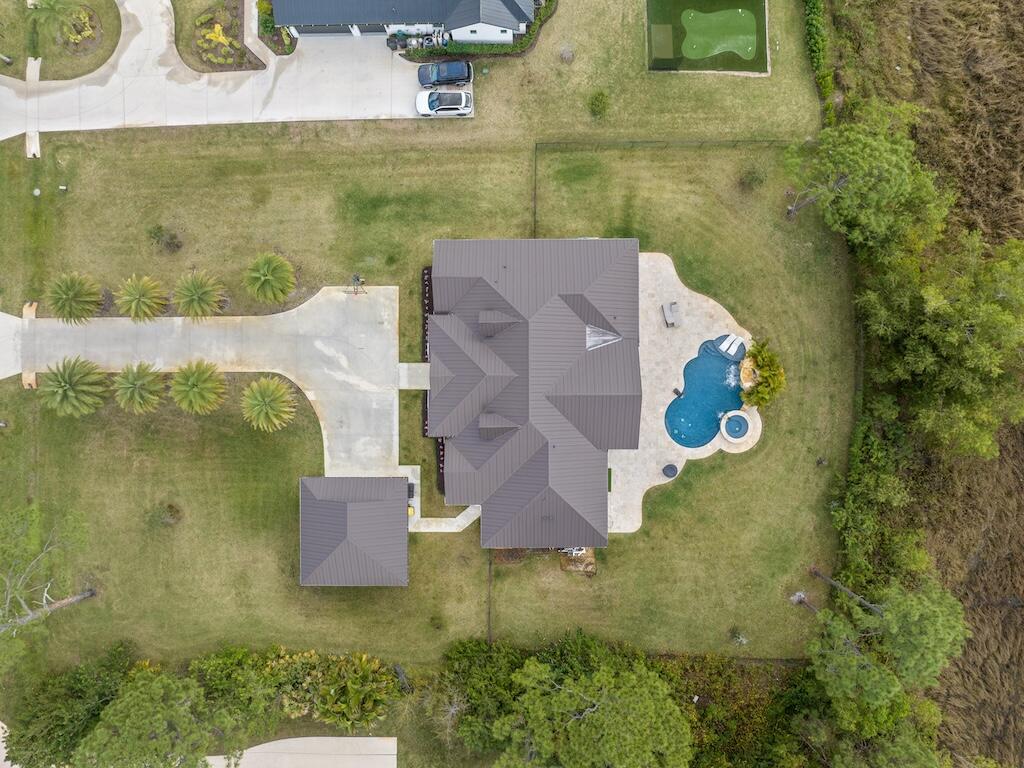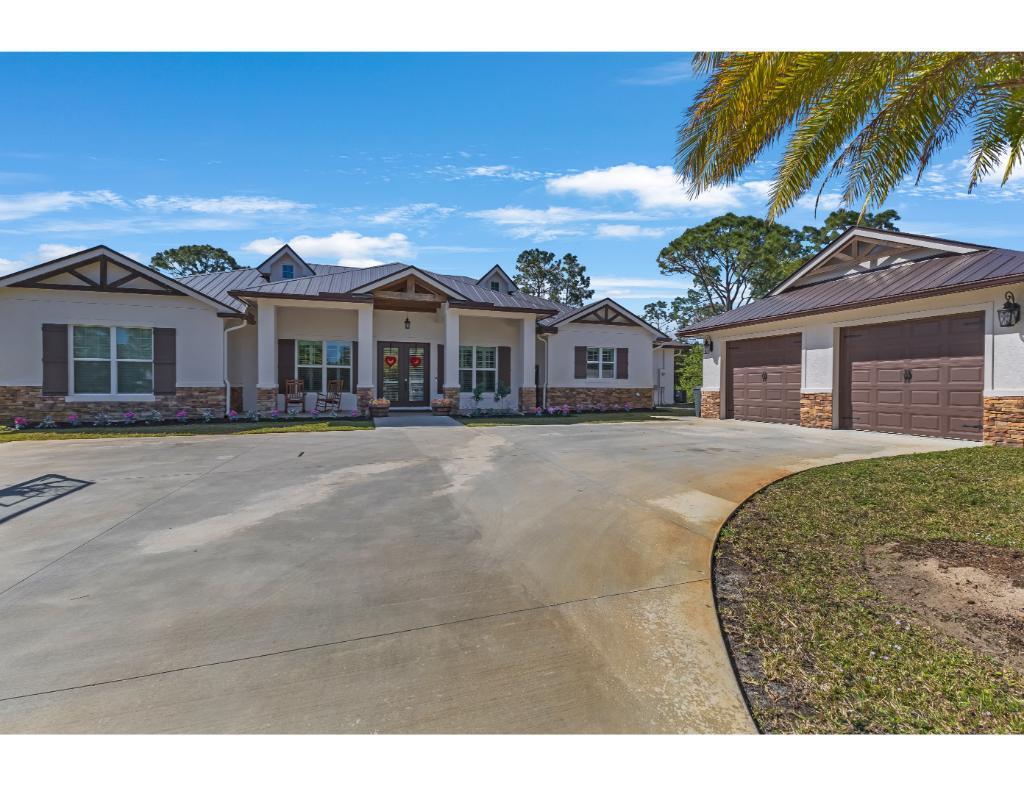Welcome home! Discover this exceptional CBS residence in the highly sought-after Evergreen/Crane Watch neighborhood. This meticulously maintained property is situated on a 1-acre lot and was constructed in 2020. The home features 3 bedrooms, 2 1/2 bathrooms, an oversized detached 2-car garage, and a spacious flex room (19' x 10') suitable as a game room or 4th bedroom. Highlights include a metal roof, hurricane impact windows and doors, over 3,000 square feet of living space, and a custom pool with a built-in jacuzzi and rock waterfall. Additional amenities comprise a custom-built bar with a Granite Countertop and Plantation Shutters throughout.