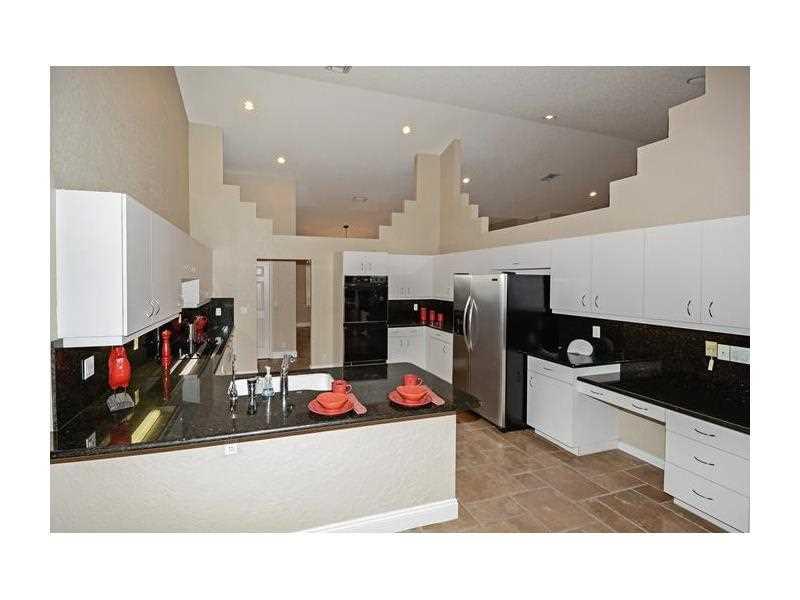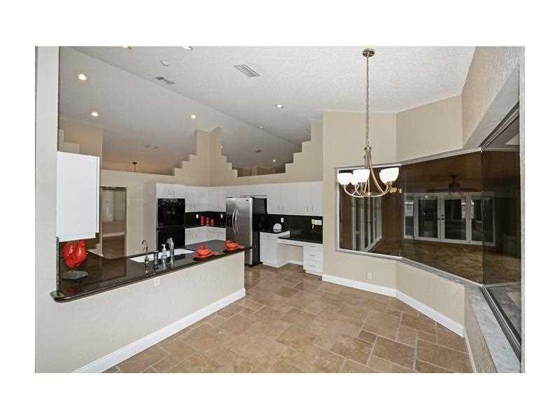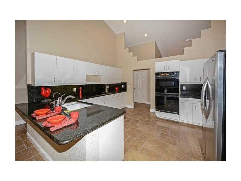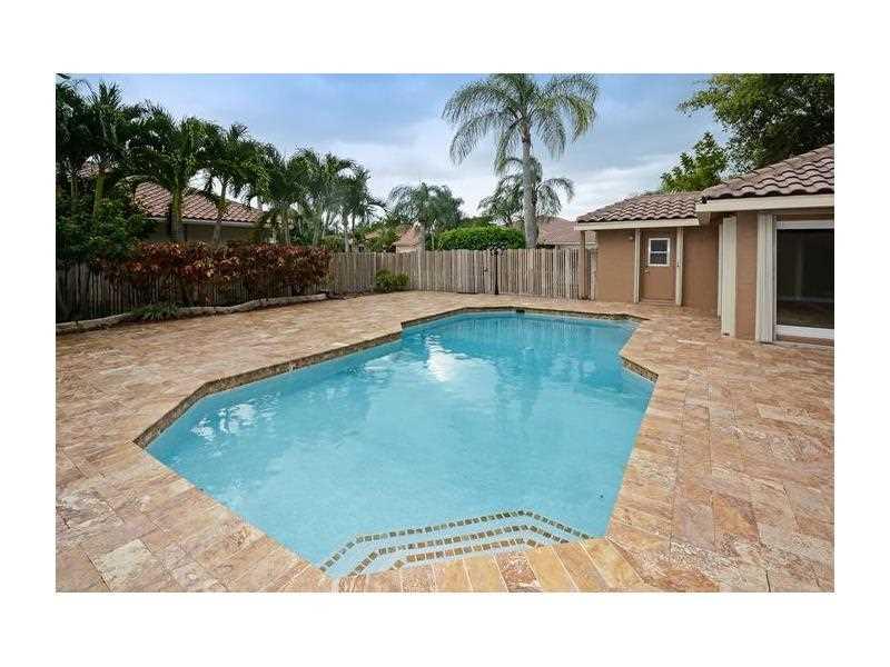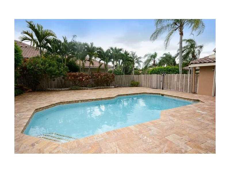 Boutique gated community of Palm Island featuring a 5 BR,4BA has significant upgrades! Lg pool w/travertine decking & covered patio perfect for entertaining! Newer windows/doors and roof . Travertine flooring in living areas. Granite counters, radiant co ok top & stainless steel appliances and double wall ovens to satisfy any gourmet Chef. Accordion shutters, high ceilings, closet organizers, surround sound, fresh paint inside/out, front load washer/dryer. Weston's "A" rated schools, Community Tennis.