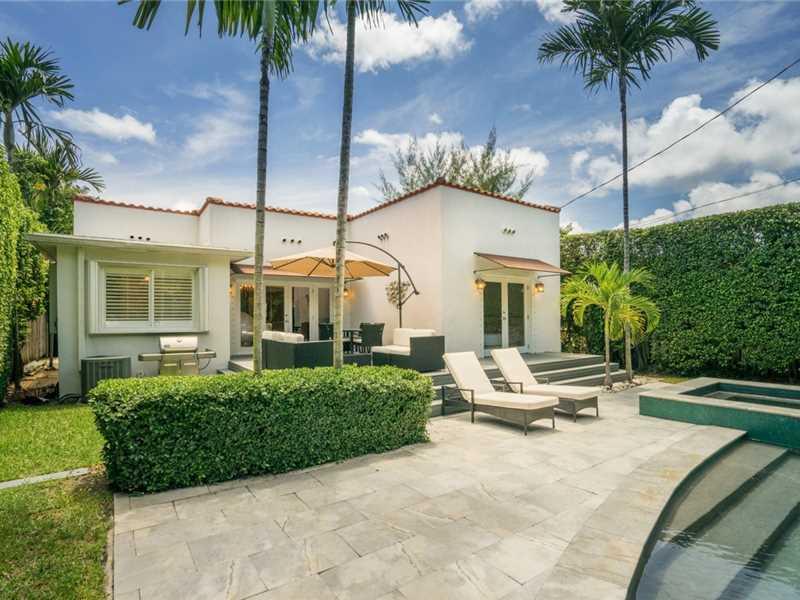 Blocks from the white sand beaches & minutes to Sobe & Lincoln Road. This completely updated gated 3BD/2BA 1-story pool home is oozing w/ charm w/ all of today's modern conveniences: stainless steel appliances, gas stove, mosaic tiled bathrooms, wood floo rs, central A/C, sound system, sprinkler, outdoor lighting, spectacular heated saltwater pool w/ hot tub & waterfall. High vaulted ceilings, lush landscaping & more!