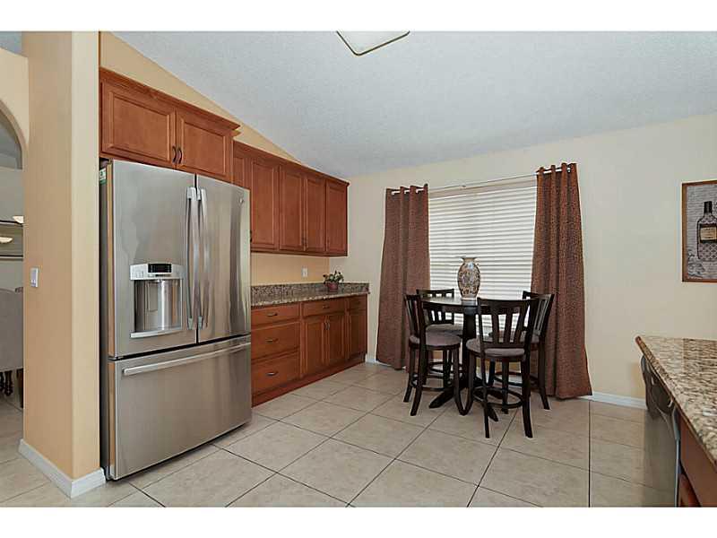 Spacious home in gated, family oriented community of Pelican Cove. Home features high ceilings, split bedrooms floor plan. Open concept yet well-defined formal living, dining and family room spaces. Remolded kitchen has stainless steel appliances, grani te counter tops and lots of warm wood finish cabinets. Eat-in kitchen area plus breakfast bar. Accordion shutters throughout! Enjoy outdoor living in this screened patio and low maintenance fenced backyard. Hurry...it won't last long.