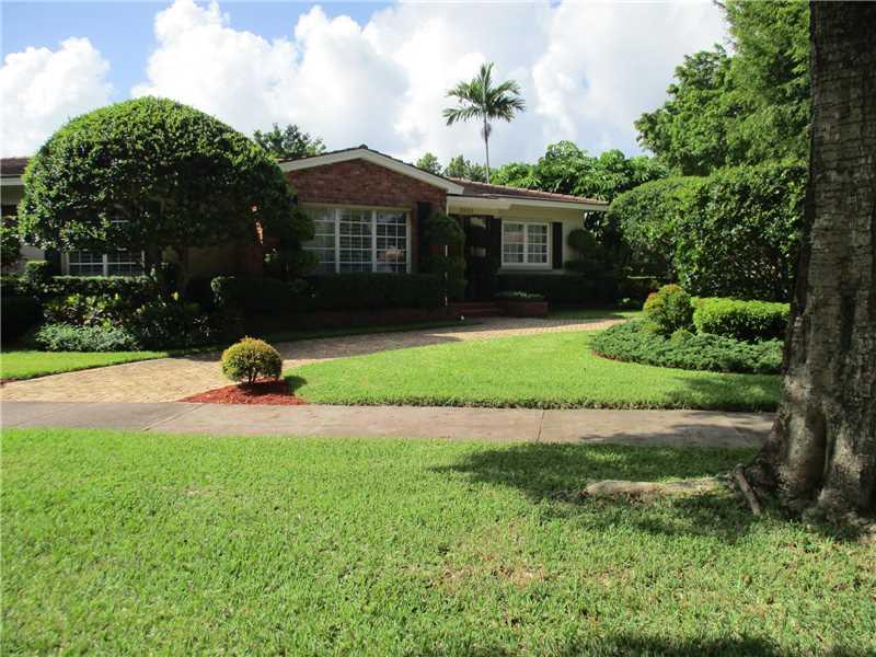 Desirable Golden Triangle area near Venetian Pool, Youth Center, Library & Miracle Mile. Charming 4/2/ 2 car garage home designed by architect H.George Fink. Home features; foyer entrance, hdwood floors, split bedrm plan, open/spacious formal liv & din ro oms + family rm & eat-in kitchen. Lovely private backyard patio w/vine covered pergola for entertaining. No room for a pool. Covered front entrance & great curb appeal with lush landscaping on corner lot. Chicago brick circular driveway. A turn key!