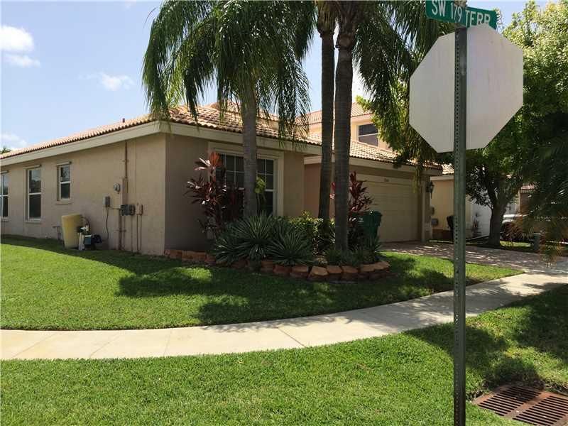 Beautiful very well kept corner lot home! Extra parking on the side of the home. Features two updated bathrooms, master bath has heated jacuzzi w/ sep shower, eat-in kit includes all stainless steel appliances with granite counters and backsplash,tiled th roughout except brms, brm carpets have plush padding, master brm has a tray ceiling and plantation shutters, all cust window treatments stay, newer w/d stay in utility rm, open patio, alarm system and much more! Home has great curb appeal!!