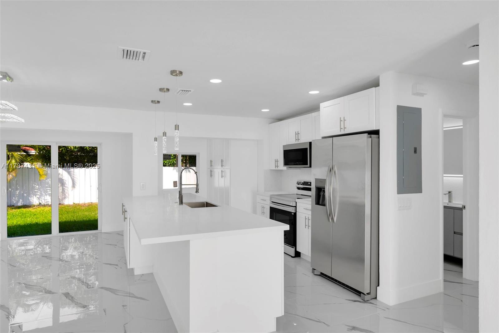 Welcome to this beautifully fully remodeled 4-bedroom, 2-bathroom home with a 1-car garage in a highly desirable neighborhood! This move-in-ready home features a brand-new roof with warranty, impact windows and doors for added security, and a working home generator for uninterrupted power. The modern kitchen is equipped with brand-new appliances, all under warranty, ensuring reliability and peace of mind. Enjoy the convenience of a dedicated laundry room with a brand-new washer and dryer to be installed prior to closing. The spacious lot offers ample room for a boat, and best of all, NO HOA, giving you the freedom to enjoy your home without restrictions. Don’t miss this incredible opportunity—schedule your showing today!