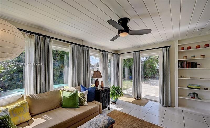 Welcome to this beautifully maintained 3-bedroom, 2-bathroom home in the highly sought-after Lyons Park neighborhood. Featuring an open-concept kitchen with modern white cabinetry. Enjoy indoor-outdoor living with a fenced backyard, a brand-new travertine deck, and lush tropical fruit trees, perfect for entertaining or relaxing in your own private oasis. Inside, you'll find tile flooring throughout and plenty of natural light. This home offers easy access to shopping, dining, and the beach. No HOA and no rental restrictions make it a great opportunity for both homeowners and investors!