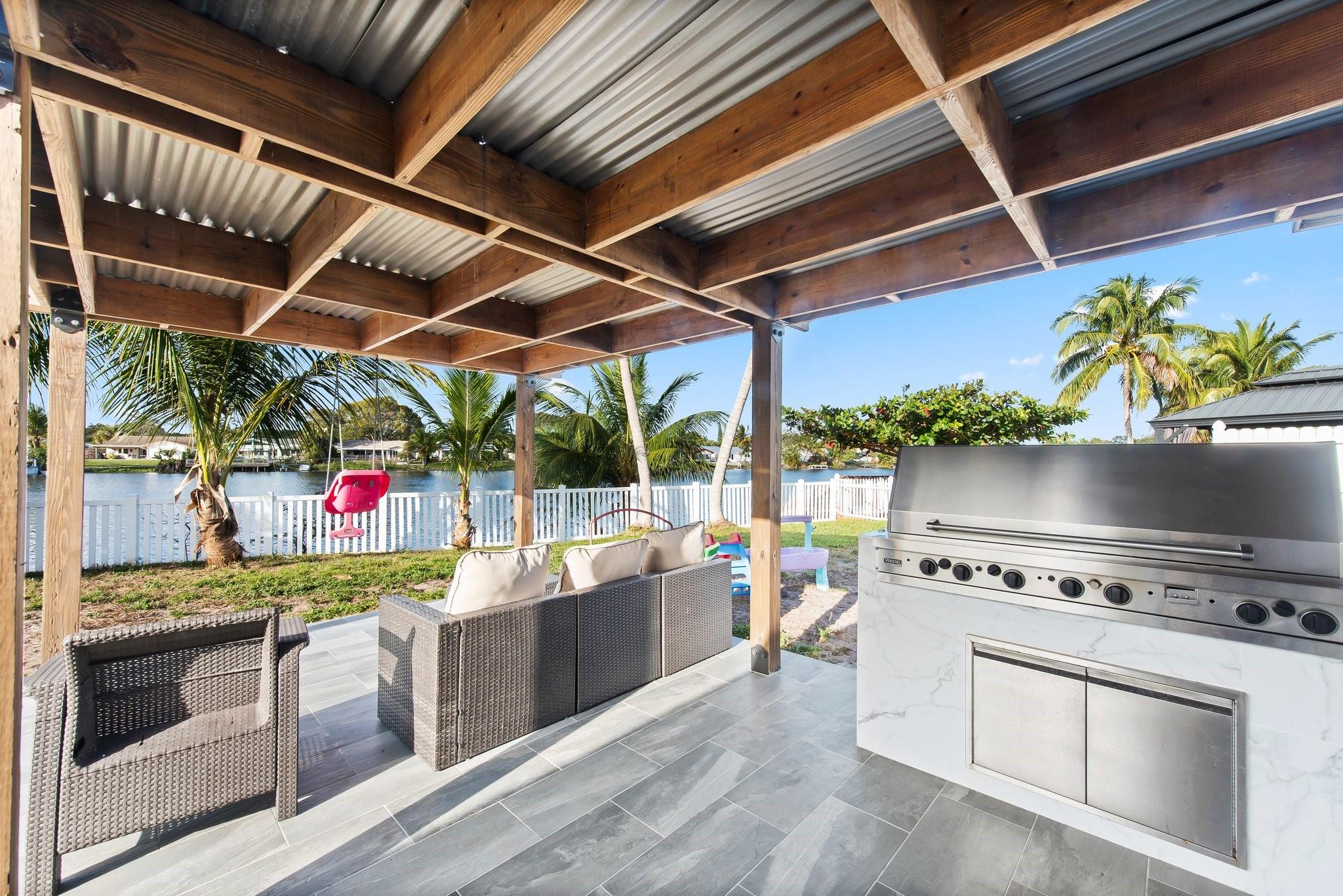 Experience breathtaking lake views from this beautifully updated 2-bed, 2-bath home with a huge yard and an amazing summer kitchen—tons of room for a pool. Bring your boat and toys—no HOA! Enjoy an updated kitchen and baths, full hurricane protection, and a well-maintained interior. The 1-car garage, partially converted for laundry, still fits a full-sized vehicle. Relax in your private oasis with endless possibilities for outdoor living. Don't miss this rare opportunity for waterfront living with ultimate freedom!