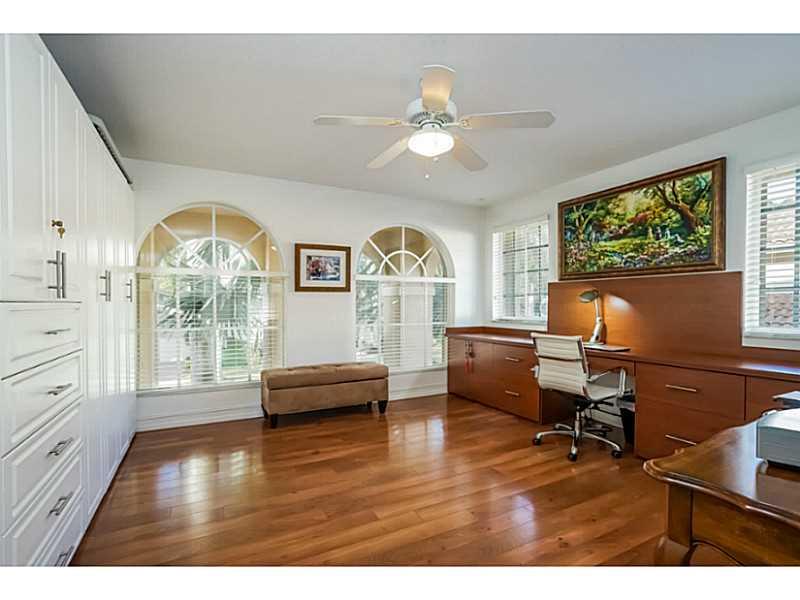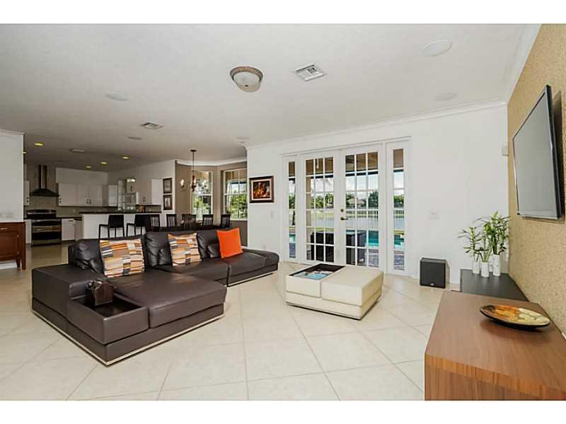 Waterfront HOME in Weston Hills. Gorgeous Nightingale Model with 7 Beds, MEDIA/OFFICE room & 5 Full baths. Automated home with CRESTON Technology. White kitchen with 42" cabinets. Tile on the 1st Floor, Hardwood on Stairs & 2nd Level. Master suite with si tting area and PRIVATE OFFICE. Versatile floor plan with 2 FULL Bed/Bath on 1st Floor.Pool overlooking long lake views 3 covered garages. Walking distance to park which has soccer, basketball and kid's playground.