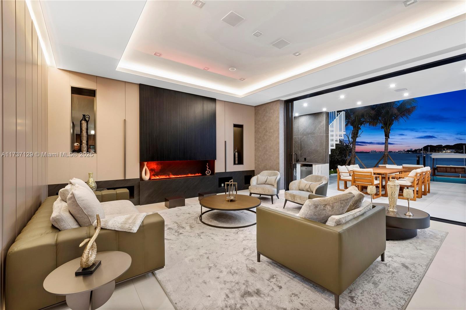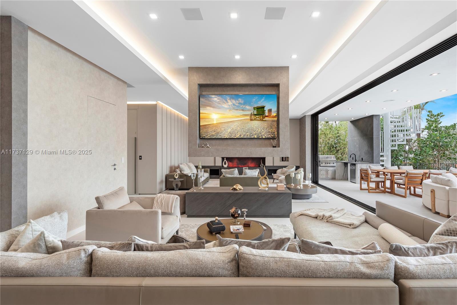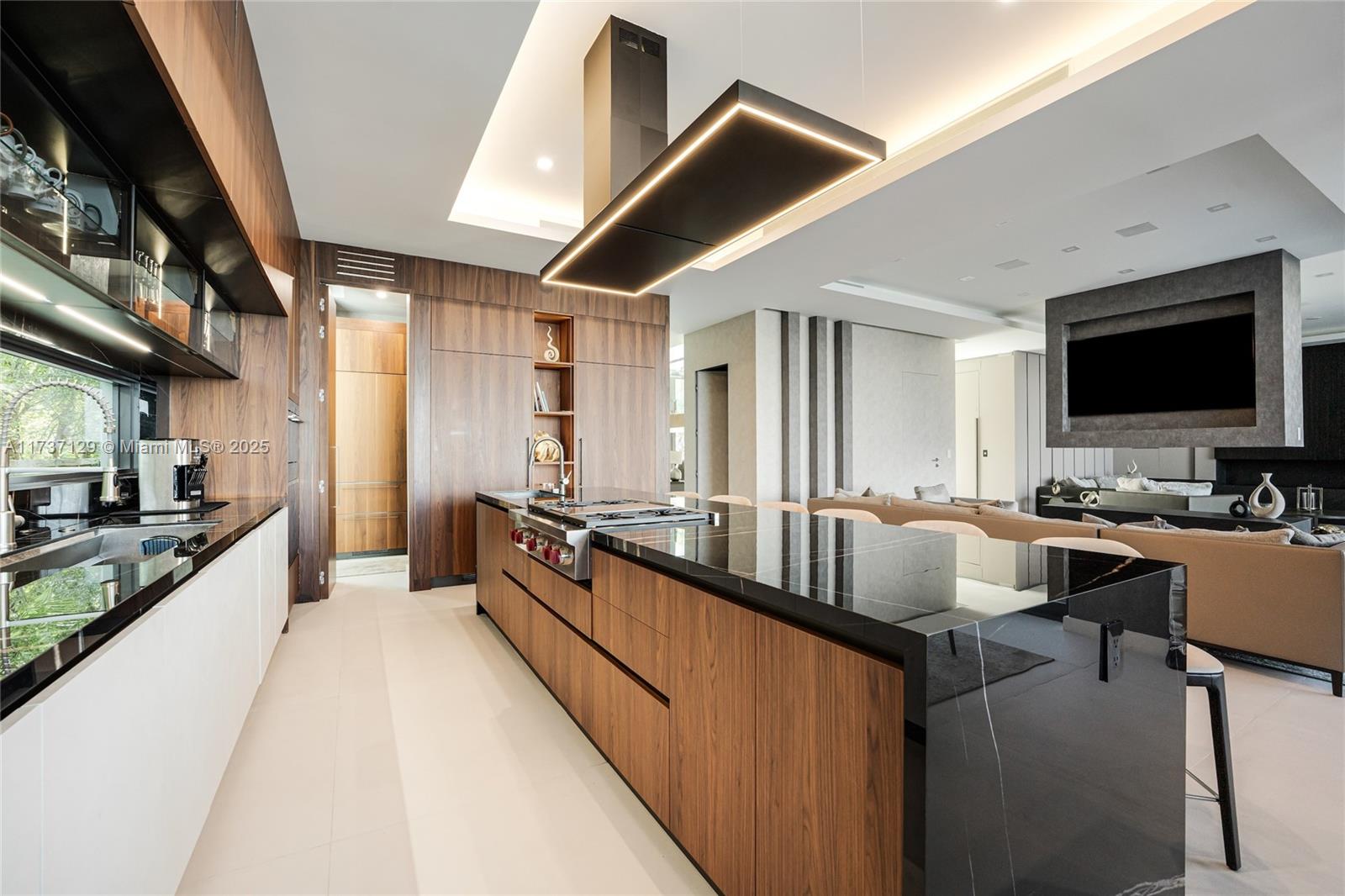 MODERN WATERFRONT VILLA with amazing open bay views featuring around 6,000 sf of living area including 6 beds, 6/1 baths. Magnificent Italian finishes throughout, large master bathroom and closet, gourmet kitchen, with chefs' kitchen, high end appliances. Open living area, Elevator to rooftop with spectacular views. Custom Italian furniture is included. Swimming pool ,jacuzzi ,summer kitchen, manicured lawns. 75’of waterfrontage with no fixed bridges to the ocean. Enjoy Bal Harbour shops, fine restaurants and good schools within close proximity.