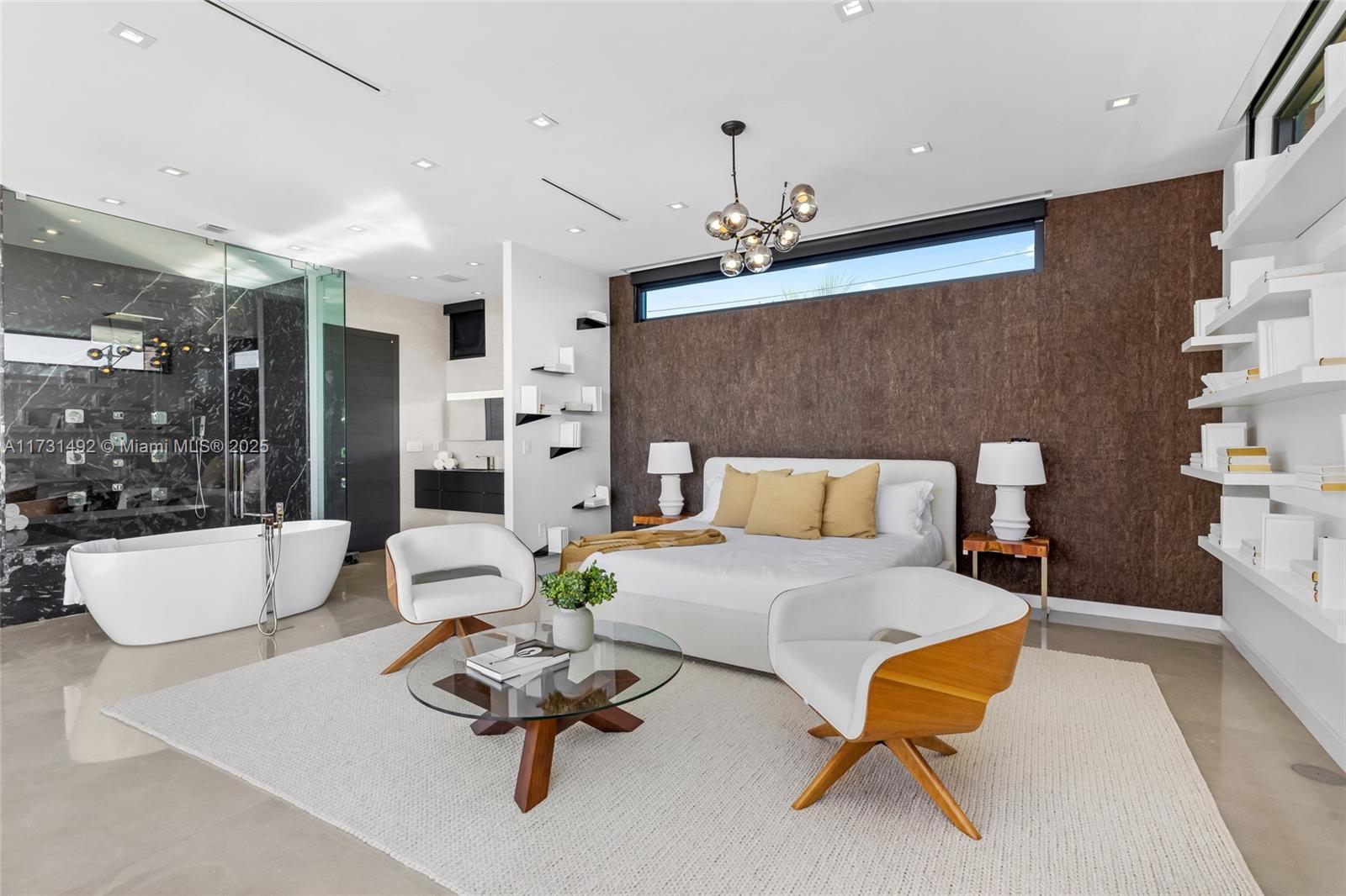 Modern and warm villa with unparalleled levels of luxury in guard gated Eastern Shores. Completed in 2017, this refined waterfront estate is a short drive to the beach and fine dining. Oversized 12,313 SF lot boasts 6 beds, 7.5 baths and spa. With over 5,000 SF under A/C, featuring stunning Italian kitchen with Subzero & Wolf appliances. Italian designer custom bathrooms, doors and closets. Exotic marble floor and stone slabs imported from Africa. Imported Brazilian wood ceiling, custom lighting with Lutron controls. Automated smart home with surround system. $120K exotic master shower with a stone that has millions years old fossils. Lavish salt water, heated pool. Custom boat parking. No fixed bridges out to the open ocean. Can be sold fully furnished and with lot next door.