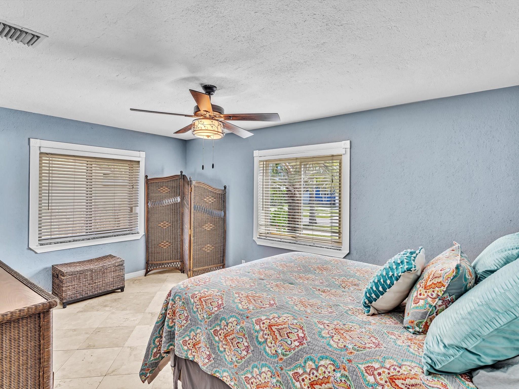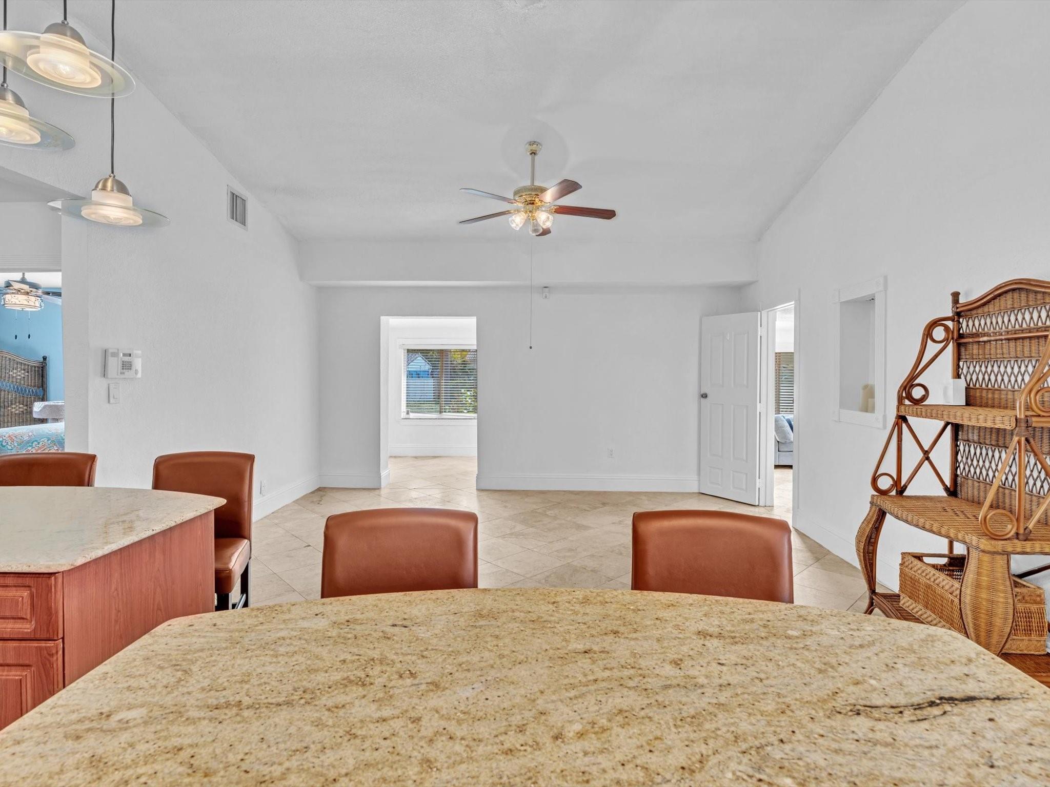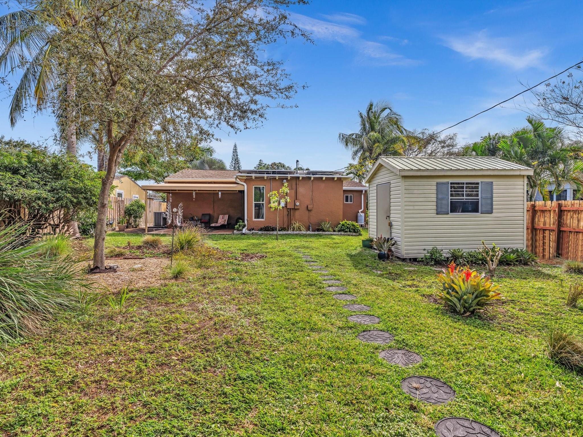 Just 2 miles from the beach, this meticulously maintained 3 bed/2 bath home offers amazing curb appeal in Hollywood East! Featuring a brand-new tiled roof, solar panels, hurricane windows & doors, & freshly painted exterior/2020 & interior/2022, blending style & sustainability. Bedroom en suite includes washer/dryer! Upgraded kitchen has two large islands/stainless steel appliances/granite countertops & provides ample prep space. The family room is flexible for use as an office/den/guest room/home theater. Enjoy travertine tiles, an encapsulated crawl space with dehumidifier, & new A/C with UV protection. With a rewilded fully landscaped yard, fencing for privacy & security, room for a pool, covered patio, & outdoor bolted shed, this home has been meticulously maintained, & is a must see!