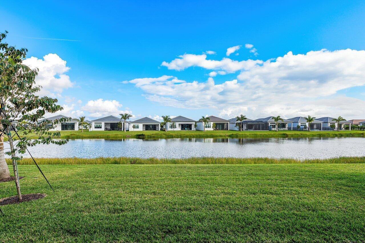 This amazing 3 BR + Den is a single-family home, located In Valencia Grand, a new 55+ community offering a luxurious lifestyle with incredible amenities. This home is newly constructed, never been lived in, located on a mid- lake site, offering many upgrades some of which include contemporary elevation, glass shower enclosure in second bedroom, summer kitchen stub outs, multiple high-hat lighting throughout, wall sconce lighting, Level 5 smooth walls throughout including ceilings and an upgraded kitchen with chimney style vent, stacked cabinets pullouts and convenience package. The master bathroom incorporates upgraded cabinetry. Carpeting in the bedrooms are upgraded. 24 x 48 high