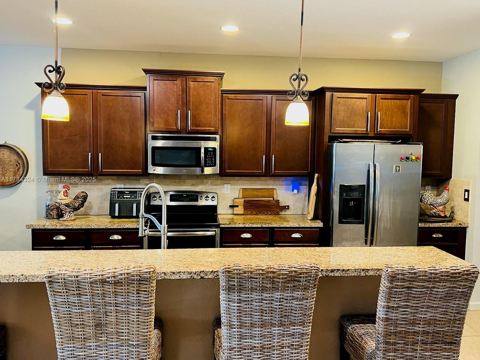 Stunning dream home in sought-after Redland Reef! Nestled on a serene cul-de-sac this is a ½-acre lot, this 4-bed, 2-bath home offers luxury and comfort. Enjoy a bright, open layout with a beautifully designed kitchen featuring SS appliances and ample counter space. The adjacent formal dining-room is perfect for hosting gatherings or enjoying family meals. The spacious master suite boasts a luxurious in-suite with dual sinks and a large shower. Tiled throughout, the home offers generously sized bedrooms and seamless flow. A 3-car garage and expansive driveway provide ample parking. Step into a private outdoor paradise with a koi pond, aviary, outdoor dining areas, and a fully equipped kitchen—perfect for entertaining. This home blends indoor elegance with outdoor charm. Don’t miss out!