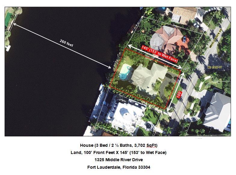 MIDDLE RIVER WATERFRONT. 100' X 145', 14,500 Square Foot Lot on 260' width of Middle River. Ocean access, subject to Sunrise bridge. Build your dream estate or remodel existing home that needs major renovations. Bayview School District. AS IS with no repairs. See survey and aerial photos attached. See 360 view in virtual tour.