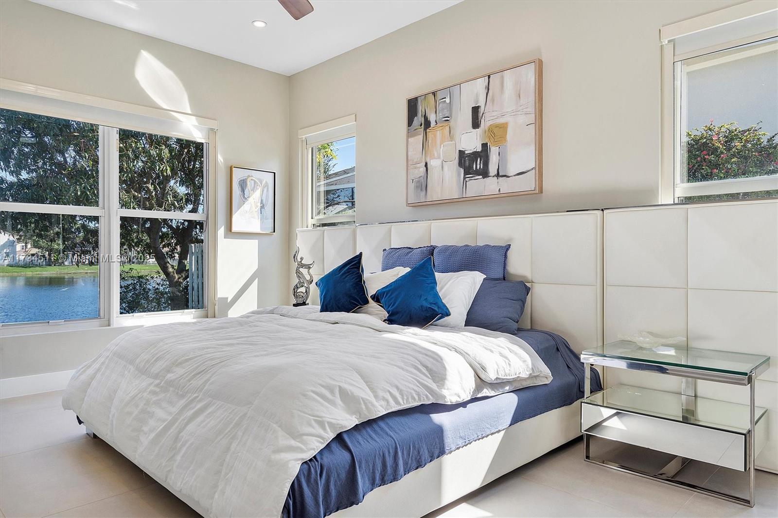 Spectacular fully renovated modern smart home in the Oakridge gated community.This lakefront home boasts an open concept design, seamlessly connecting the living spaces. Kitchen features top-of-the-line appliances, Taj Mahal countertops, and abundant cabinet space. Enjoy the airy ambiance created by 20-foot sliding doors, allowing natural light to flood the open living, dining, and kitchen areas. Indulge in the spa-like master bathroom with a floating tub, and a stand-in shower. Custom closets throughout offer convenient storage solutions. Garage space converted to a beautiful office unit. The expansive 75-foot wide backyard provides ample space for outdoor activities and entertainment with an option for a pool. Minutes from Hard Rock Casino, airports, Beaches and more. Options to purchase fully furnished.