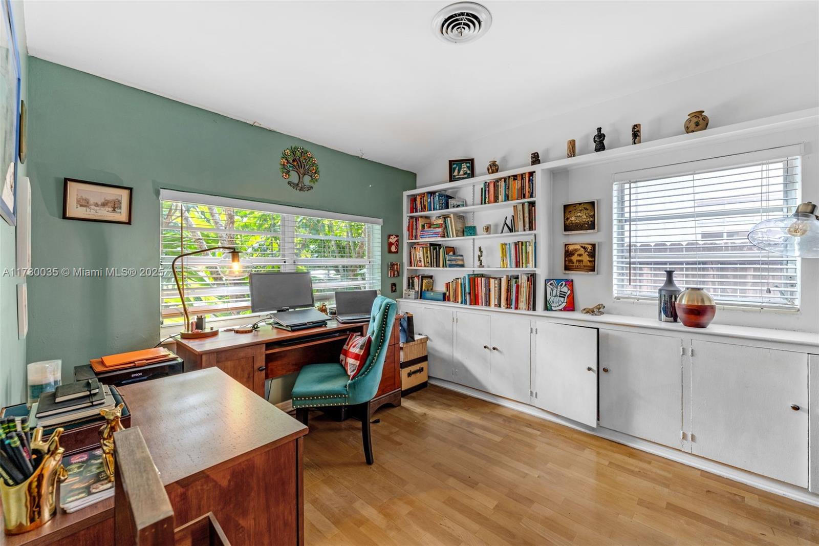 Welcome to Utopia! Nestled on a quiet, tree-lined street in sought-after South Grove. Light-filled living spaces feature hardwood floors, a beautiful fireplace, and elegant formal living & dining rooms. The updated kitchen boasts quartz countertops, wood cabinetry, and new appliances, including a wine fridge! With 3 bedrooms & 2 bathrooms, this home blends modern updates with timeless charm and offers potential to expand. French doors open to a lush, ultra-private garden oasis with a tree-canopied deck and brick patio. Fantastic location near top-rated schools, Michelin-star restaurants, shopping, Coral Gables & South Miami, a true Grove gem! Living area actual is 1,610 as per property appraiser