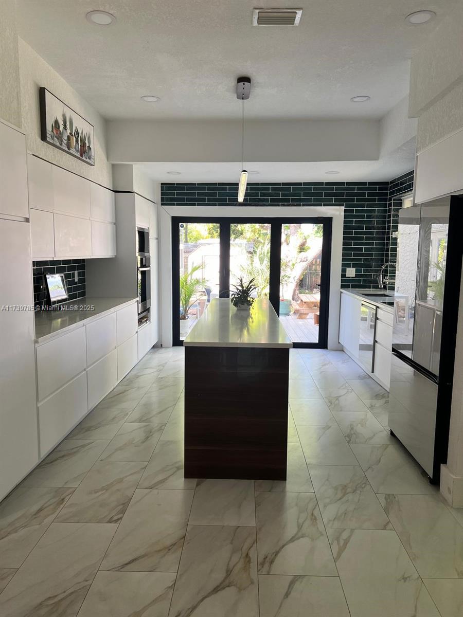 Discover this stunning 3-bedroom, 2-bathroom single-family home with a brand-new roof! Featuring a modern open-concept kitchen with quartz countertops, custom cabinetry, and stainless-steel appliances. The spacious living and dining areas boast abundant natural light, creating a warm, inviting atmosphere. Step outside to a huge double-lot backyard, a rare find in this area! Enjoy the shade of mature mango trees and plenty of space for outdoor entertaining, gardening, or even a future pool. The lush greenery provides a serene retreat right at home. Located just minutes from the beach, shopping, dining, and major highways, this property offers both tranquility and convenience. Whether you're looking for a primary residence or an investment opportunity, this move-in-ready home is must-see!
