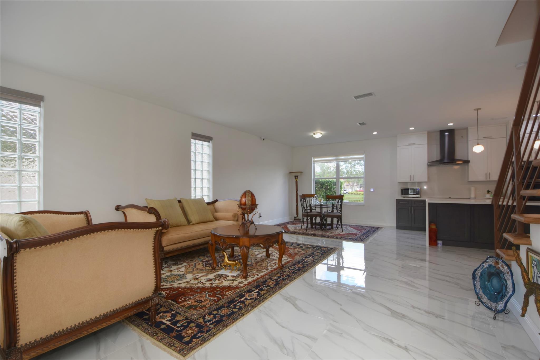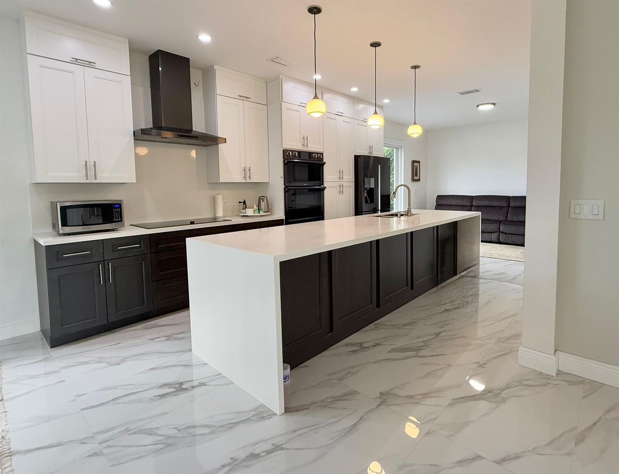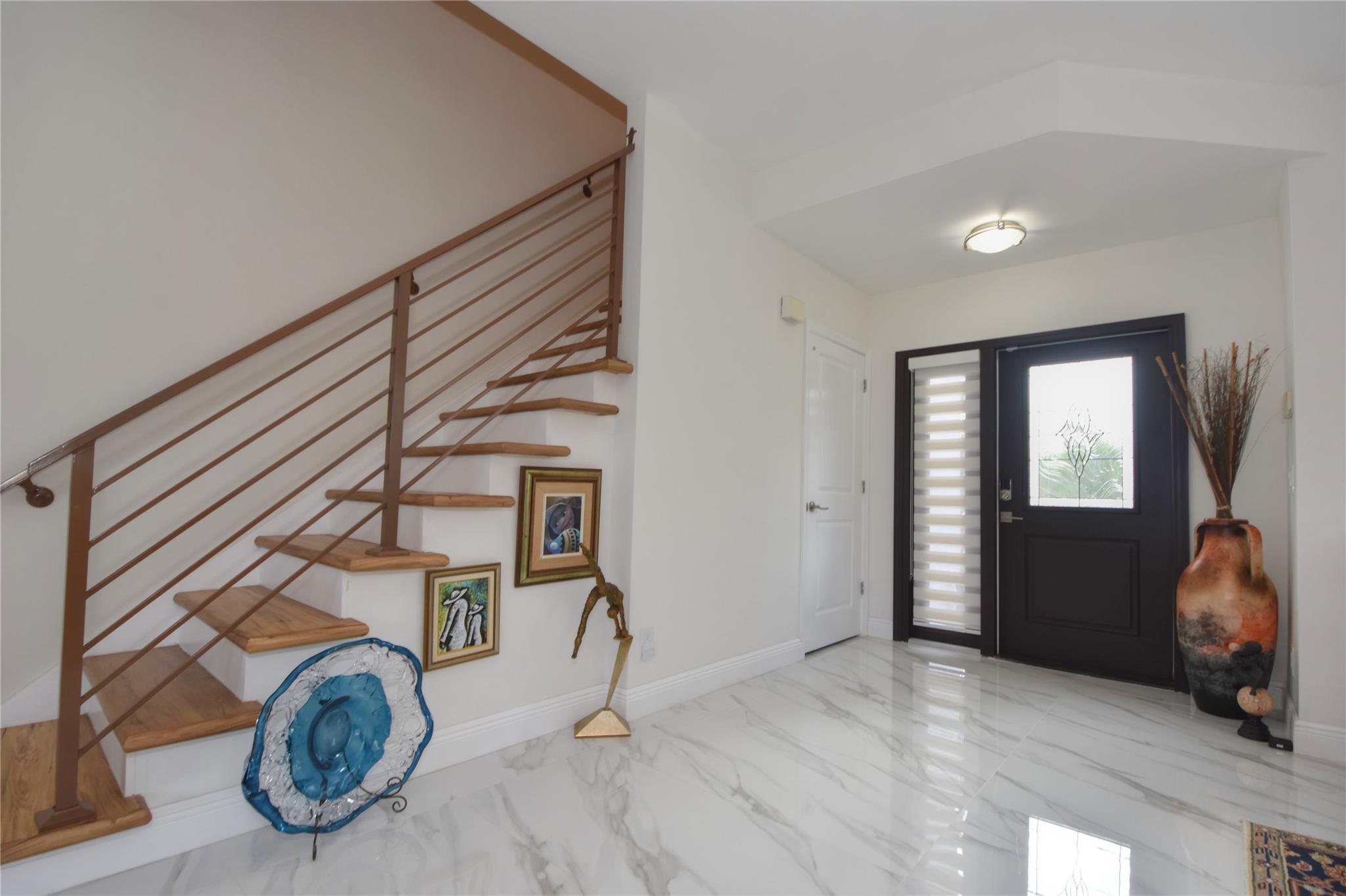 This beautifully renovated two-story lakefront home features 3 bedrooms and 2.5 bathrooms. The 4th bedroom was converted into a huge walking closet for the master bedroom. Renovations include white porcelain flooring downstairs and wood like flooring upstairs. A new wood staircase with steel railings. An open modern floor plan with a stunning new kitchen offering a huge white quartz countertop. Washer and dryer has been conveniently moved into the living area. Modern new bathrooms. New impact front door and all the back windows had been replace for new high impact . This waterfront home is conveniently located in the gated community of Opal Creek which offers a huge community pool, playground, & 24/7 security guard.A rated Schools. Owner has initiated new roof replacement !