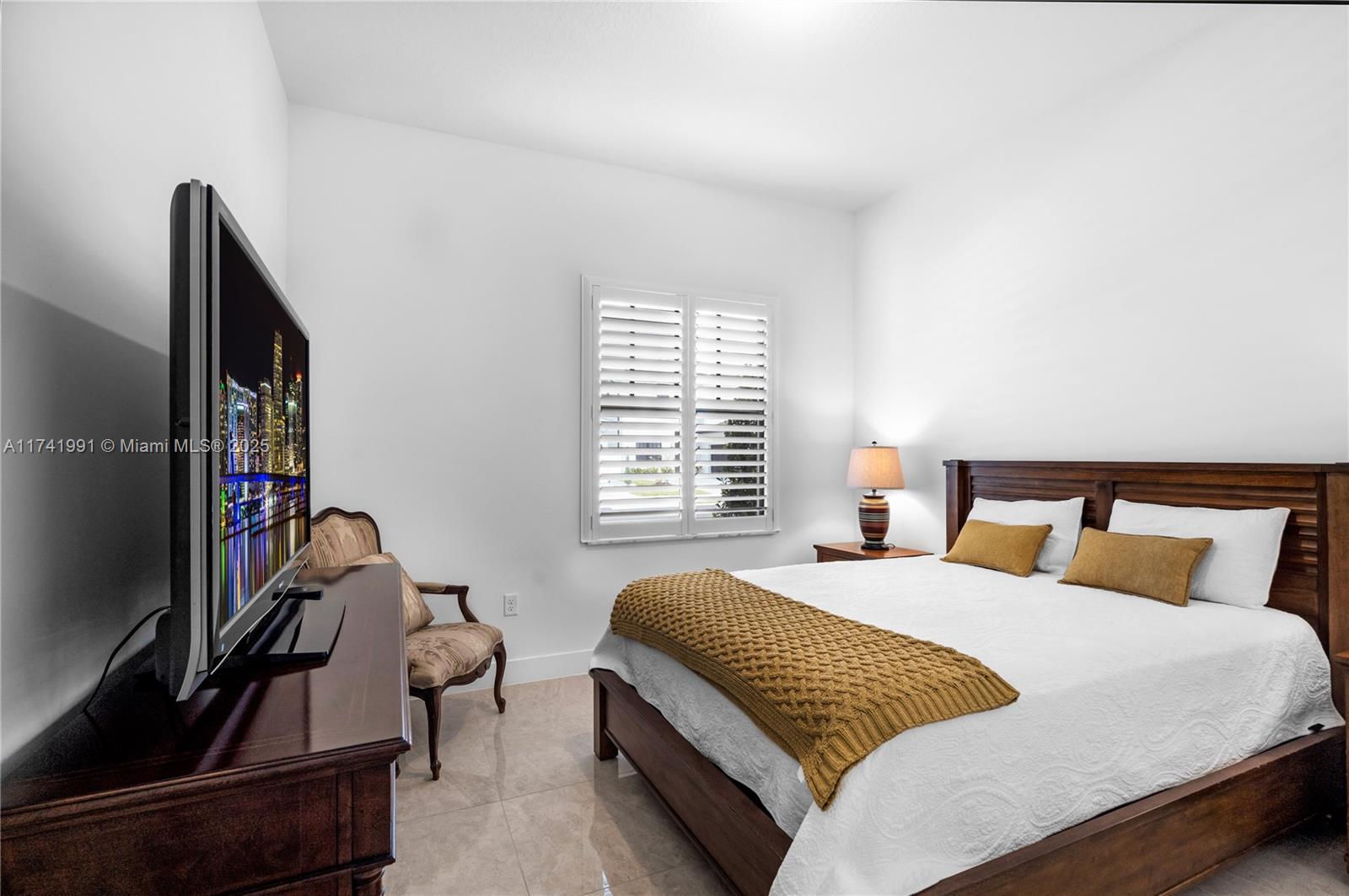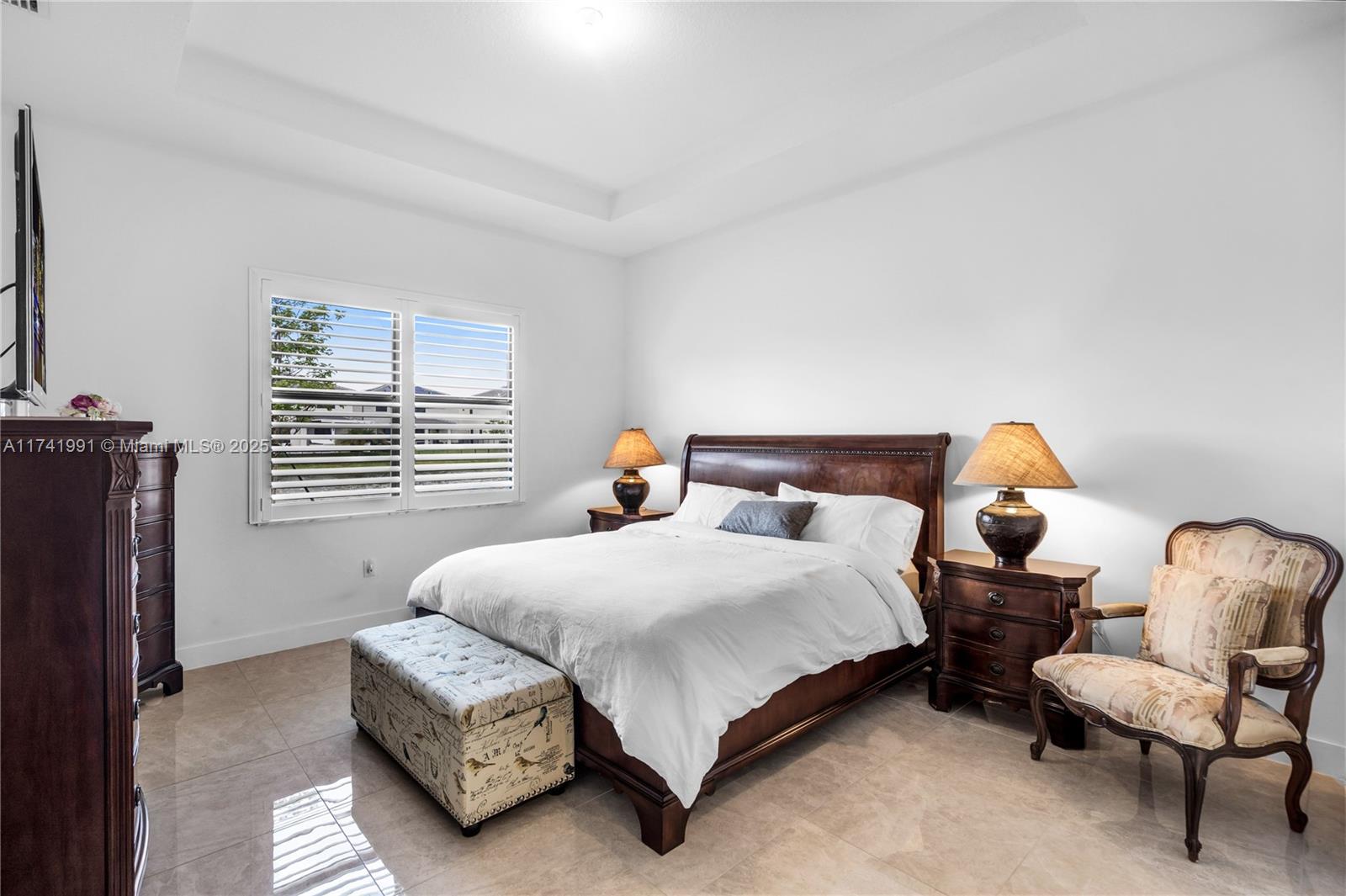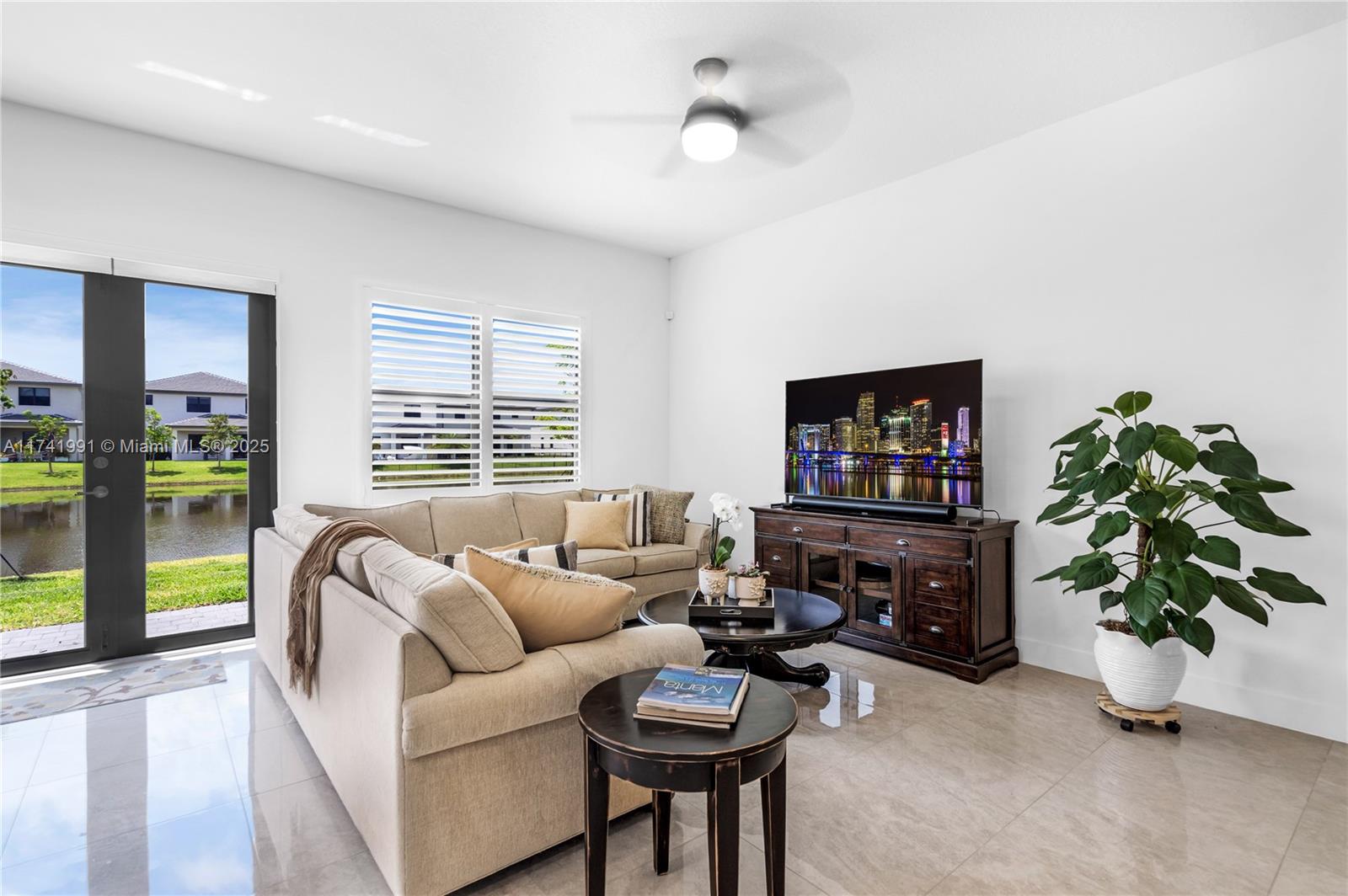 Experience this single-level home, located in the prestigious community of Marbella. Boasting 4 bedrooms, 3 bathrooms, and a two-car garage with an EV connection, this residence combines convenience and luxury. The porcelain floors and high ceilings bring an elegant atmosphere to every room, while the kitchen features quartz countertops and stainless-steel appliances, perfect for any cooking enthusiast. Take in breathtaking lake views from the backyard, living room, and primary suite. Conveniently located near top-rated schools. Thoughtful upgrades include rain gutters, plantation shutters, a Ring alarm system, and custom-designed His and Hers closets. Highly motivated seller!