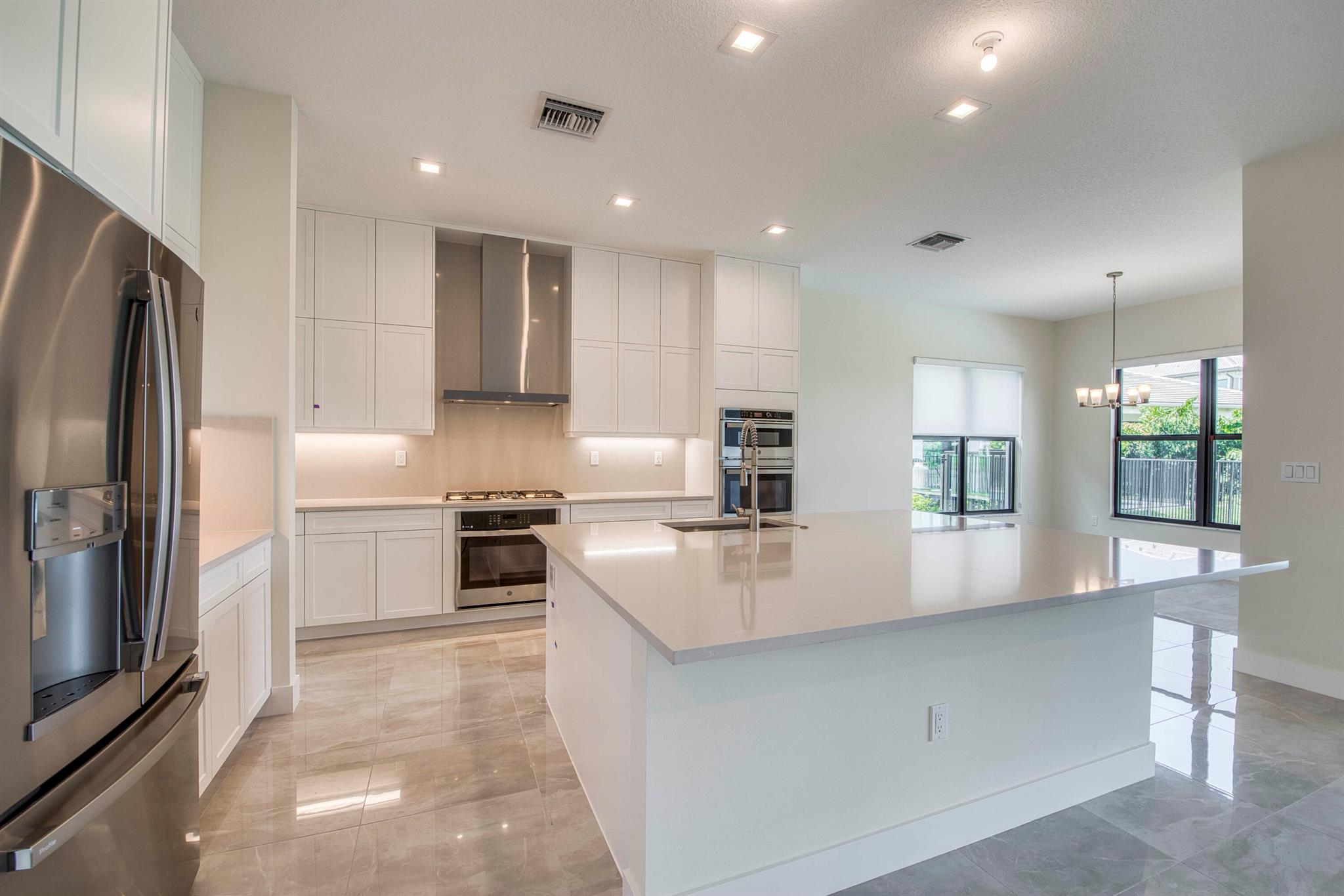 Modern Luxury in Apex at Avenir. 5 Bedroom 7 Bath lakefront home with Loft and 2 car garage. This home has all the features you need including a luxurious 24''x24'' porcelain floor tile package in key areas including the foyer, great room, family dining room, and laundry room. Gourmet kitchen featuring upgraded cabinetry and sleek quartz countertops with a flat polished edge, complemented by a full backsplash. This culinary haven is equipped with a GE appliance package, including a gas cooktop, and boasts a spacious kitchen island with seating, making it perfect for both cooking and entertaining. The laundry room offers an upgraded cabinet package with quartz countertops, and a built-in laundry sink for added convenience. Plush carpeting throughout the home (excluding tiled areas),