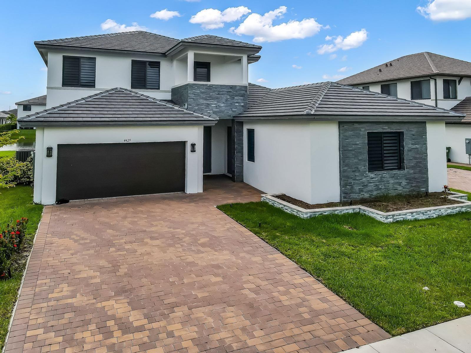 PRICE REDUCED! Brand-new community of Marbella Miramar! This stunning 5 bedrooms, 4.5 bath home offers an open concept combo living, family and kitchen space that flows seamlessly with breathtaking views of the expansive lake and state-of-the-art clubhouse. The pool and deck are ideal for entertaining guests. The home features an attached in-law's quarters complete with a private living, bedroom, bath, and its own entrance. The ground floor boasts a luxurious primary suite with a separate soaking tub & shower + a massive walk-in closet. Upgrades throughout include oversized tiles, modern, sleek custom cabinetry and features, all enhancing the brand-new construction's elegant aesthetic. Upstairs: 3 bedrooms, a loft, and bar, offering a versatility & space. Embrace a lifestyle of luxury!