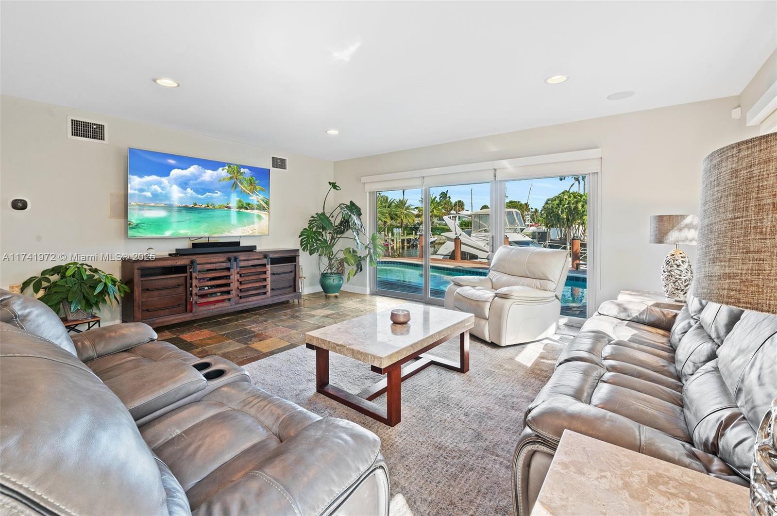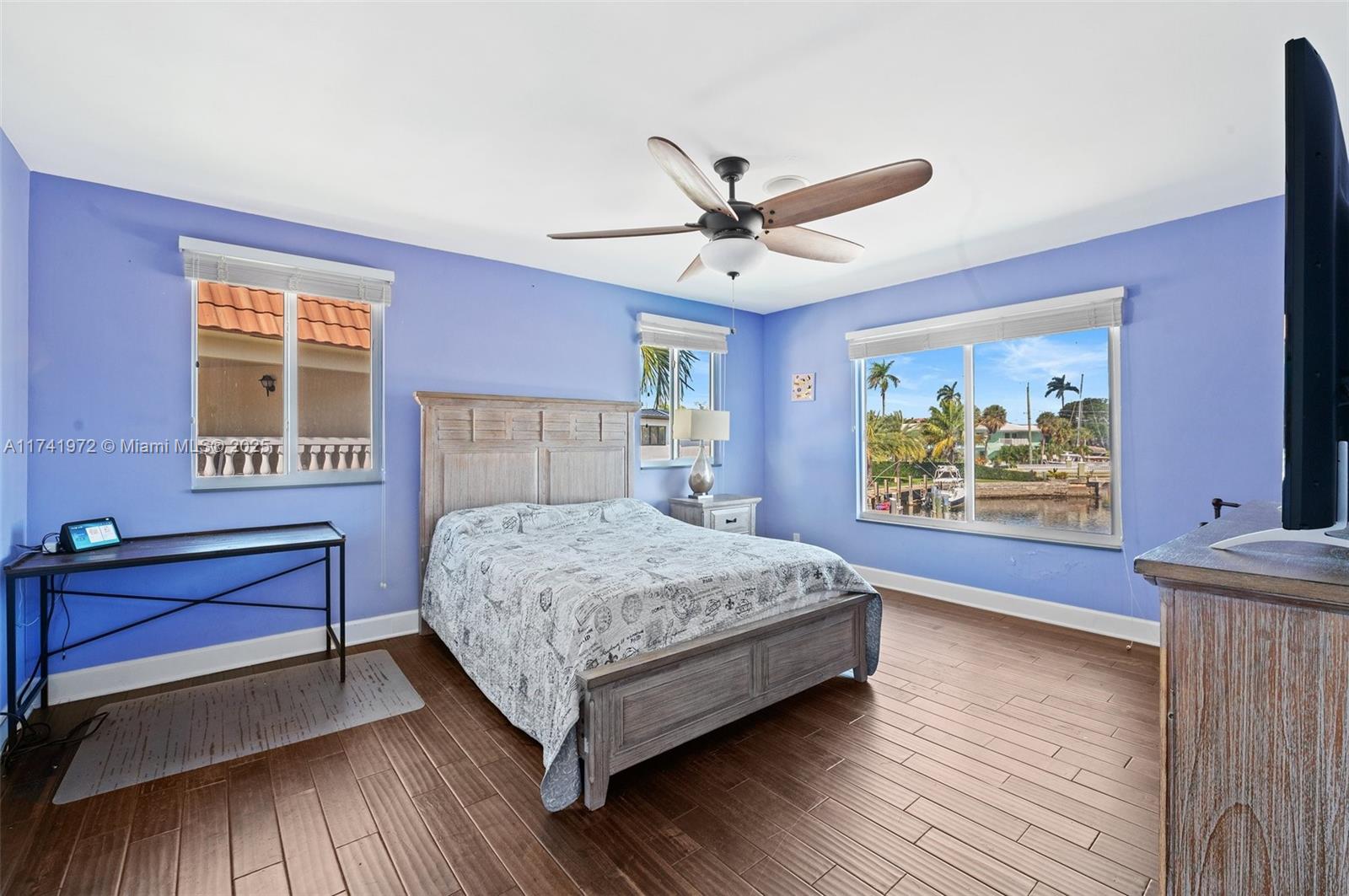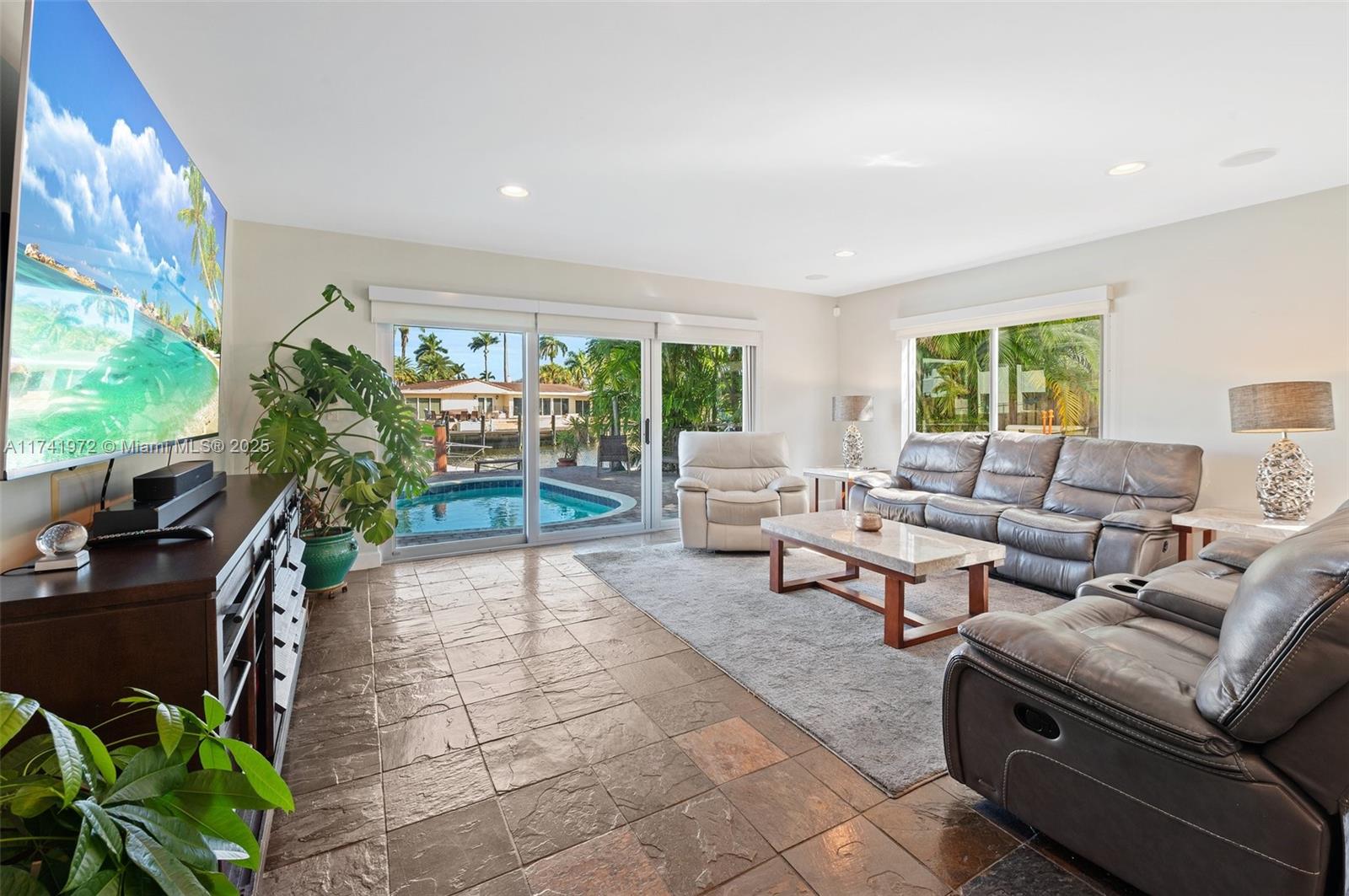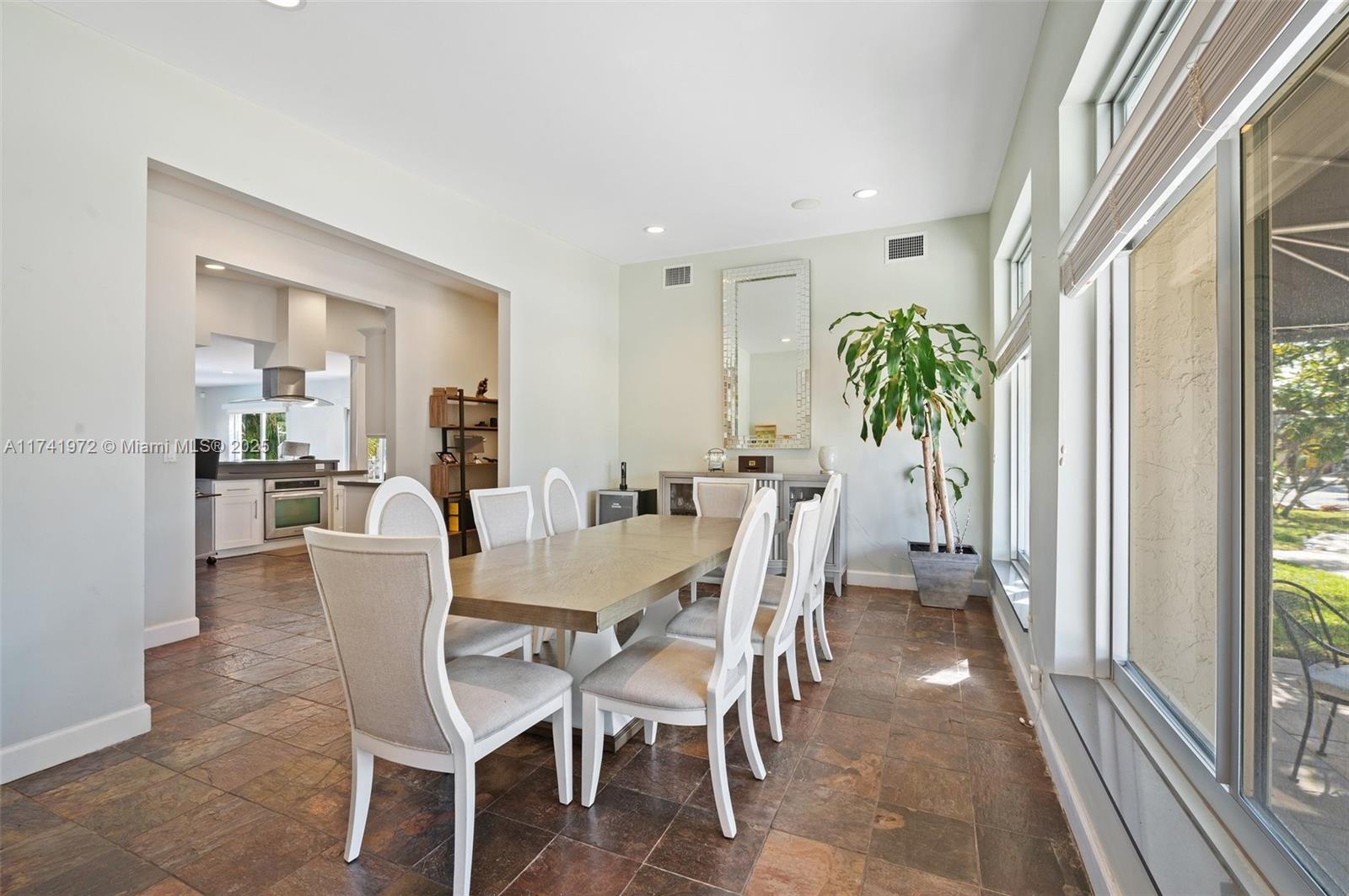 Discover coastal luxury in this spectacular waterfront oasis in Santa Barbara Shores! Boating enthusiasts will appreciate the 50-ft dock with ocean access and no fixed bridges, heated pool and beautiful water views. This 4 BR/3BA features 3,058 sq. ft. open and functional living space with master suite and one bedroom on the first floor and two additional bedrooms and versatile loft upstairs. Gourmet kitchen features wood cabinetry, quartz countertops, and stainless-steel appliances. Embrace modern efficiency with a 2021 roof, solar panels, impact windows/doors and Tesla charging station. Located just minutes from shopping, dining, and less than 10 minutes from the beach. Experience the best of South Florida living in this turnkey waterfront retreat, where luxury meets functionality!