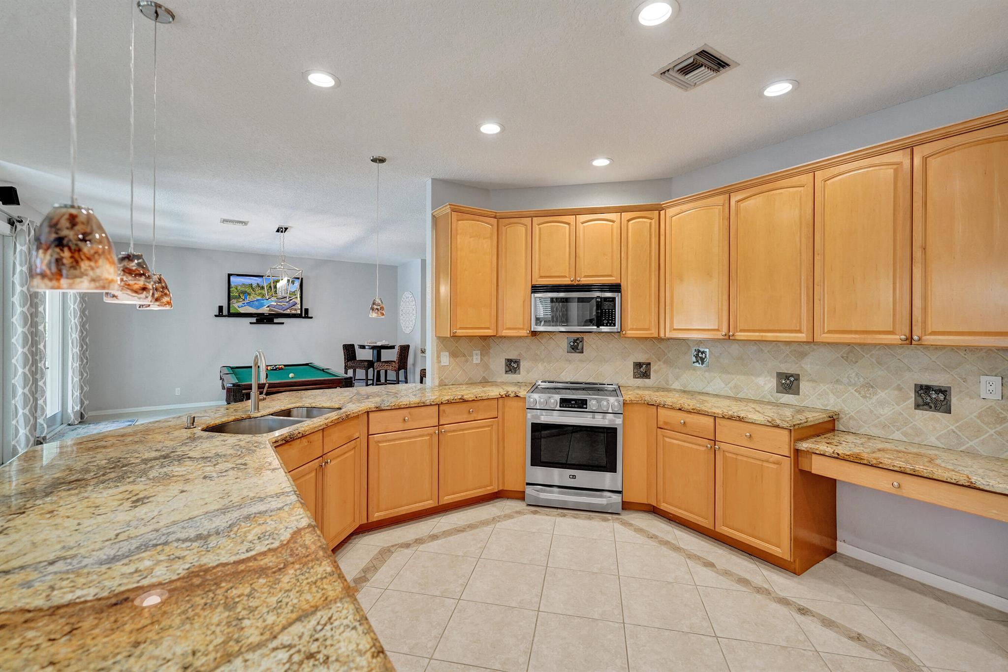 Rarely available in the gated community of Hidden Hollow! The largest model available on a stunning corner lot that backs up to the 102 acre nature preserve, The Ridge, also giving you easy walking access to Tree Tops Park. Enjoy peace and luxury as you sit in your custom patio over-looking your resort style pool and catch horses running by in your backyard. It doesn't get any better! This home is a true 7 bedroom with an extra kitchen serving as an in-law suite or flexible living space. Also featuring complete impact windows, a gorgeous, high-end, impact front door, a 4 year old roof, and updated bathrooms. No expense was spared with these updates. Don't miss your chance to own this exceptional home in one of the area's most sought-after community of Forest Ridge!