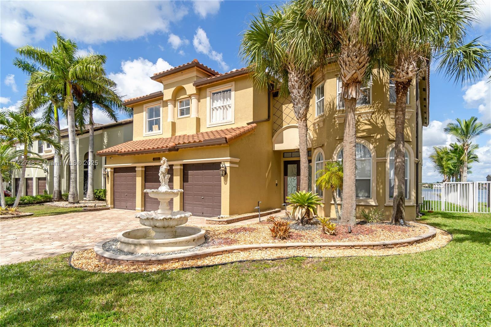 Exclusive waterfront opportunity in the gated community of Riviera Isles! This stunning 6-bedroom, 6-bathroom home with a 3-CAR garage boasts a lavish backyard oasis with a pool and spa, overlooking a breathtaking lake view. The home features an open concept with high double-volume ceilings, providing an airy and spacious feel. The gourmet granite kitchen includes plenty of counter space, built-in appliances, and an eat-in kitchen with everything you need. The breakfast area and large walk-in pantry offer ample storage space for your grocery and kitchen essentials. This home is a must-see! Close to schools, hospitals, supermarkets & shopping malls.