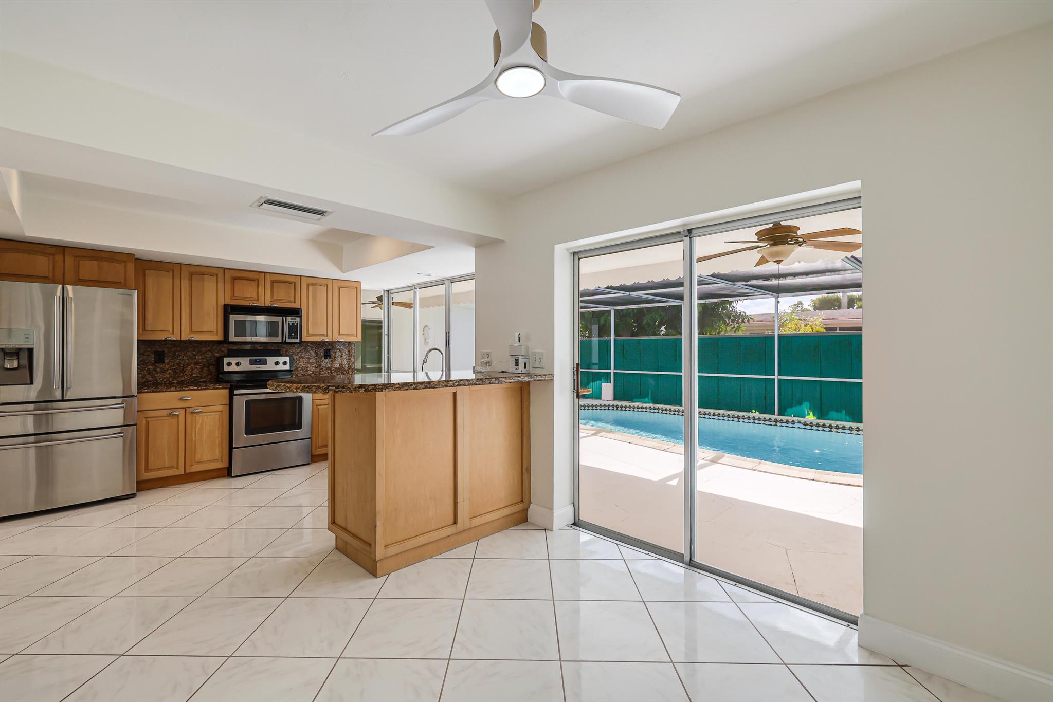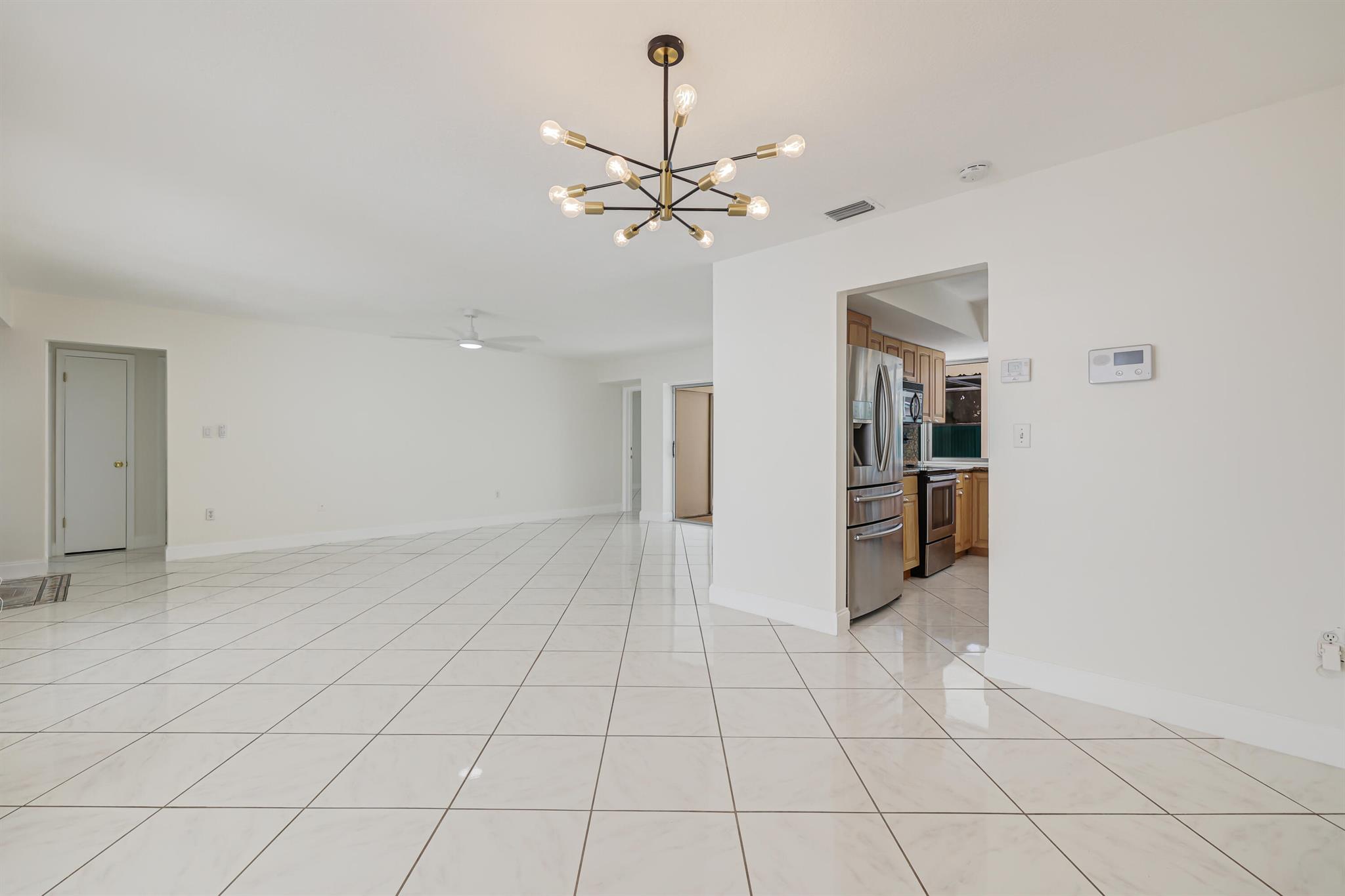 This charming 3-bedroom, 2-bathroom home offers a fantastic residential investment opportunity with no HOA fees, making it perfect for both primary residence and investment purposes. The property boasts a large circular driveway with two graceful palm trees, creating an impressive curb appeal. Inside, you'll find a beautifully upgraded kitchen featuring clean cabinetry and a window that opens up to the expansive screened-in pool patio, ideal for outdoor entertaining. The spacious master suite offers his-and-her closets and an ensuite bathroom with direct access to the pool area. Energy-efficient solar panels provide added savings. The home also includes a one-car garage that could be easily converted into additional living space.