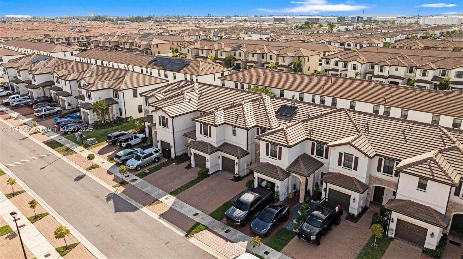 Amazing townhome newly built in 2022 located in the best gated community of Aquabella in Hialeah Gradens.Property has solar panels This newly built gated community style living has a 24/7 security,convenient private garage plus a driveway offering space for two more cars .Delux clubhouse with resort style pool and sundeck, progressive fitness center ,game and party rooms, outdoor grilling station and lounge areas.