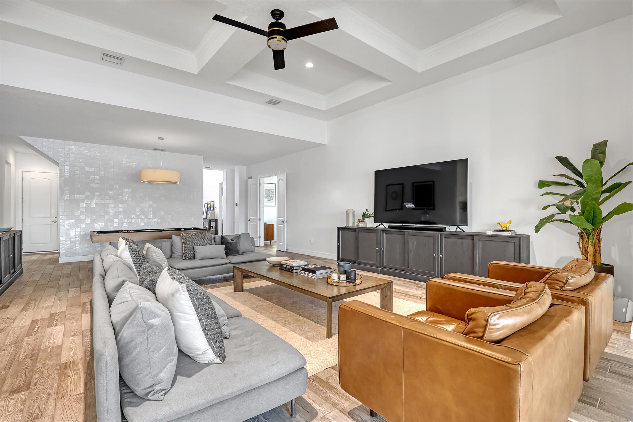 Lakefront living in Jupiter Florida! Welcome to this gorgeous ''Stonewater'' model in the highly sought-after Sonoma Isles community! This stunning single-family residence boasts 5 bedrooms, 4 bathrooms, and 3,856 square feet of thoughtfully designed living space, perfect for families of all sizes. Situated on one of the largest lots in Sonoma Isles, this property features a fully fenced and turfed side yard. In the back, you'll enjoy arguably the finest lake views in the community. The outdoor bar area and Pebble Tec pool create an ideal setting for entertainment and relaxation. Step inside to discover an open and split floor plan that masterfully blends style and functionality. The first floor includes 3 bedrooms and 3 bathrooms, while upstairs you'll find a spacious loft and 2 additiona