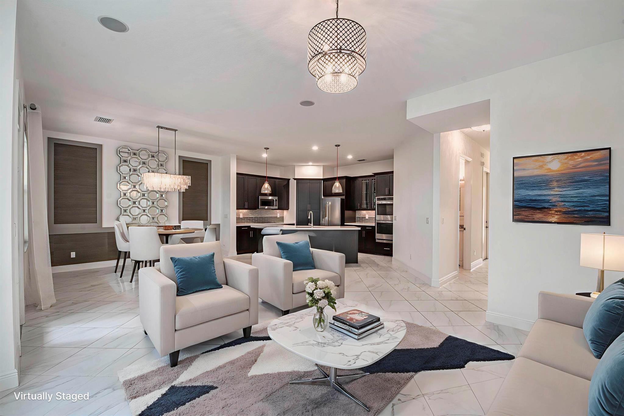 Stunning Custom Key West Townhouse in Hampton Cay. Discover this exceptional Key West-style townhouse in the highly sought-after, gated community of Hampton Cay. Thoughtfully designed with custom features, this home showcases decorative accent walls, a bespoke bar, and volume ceilings. Built for both style and durability, it boasts a Brand new HVAC Nov. 2025, NEW Washer/Dryer Nov. 2025, all-impact windows and doors and a sleek metal roof. This spacious residence offers 3 bedrooms, 2.5 baths, a versatile loft, and two private balconies. A two-car garage adds convenience, while the home's prime location backs up to a serene preserve, providing ultimate privacy and tranquility. Located on Piccadilly Street with direct access to PGA Boulevard, commuting and everyday errands are effortless.