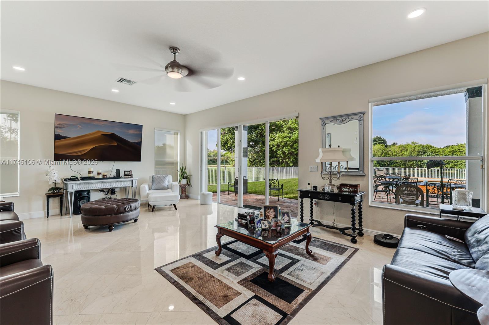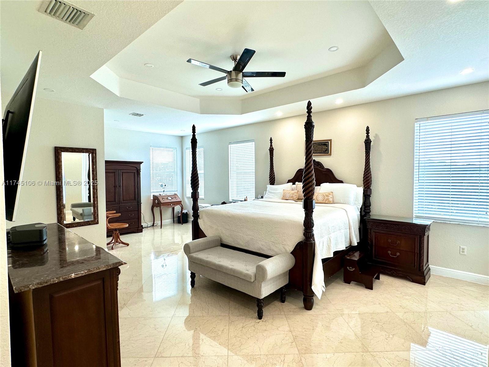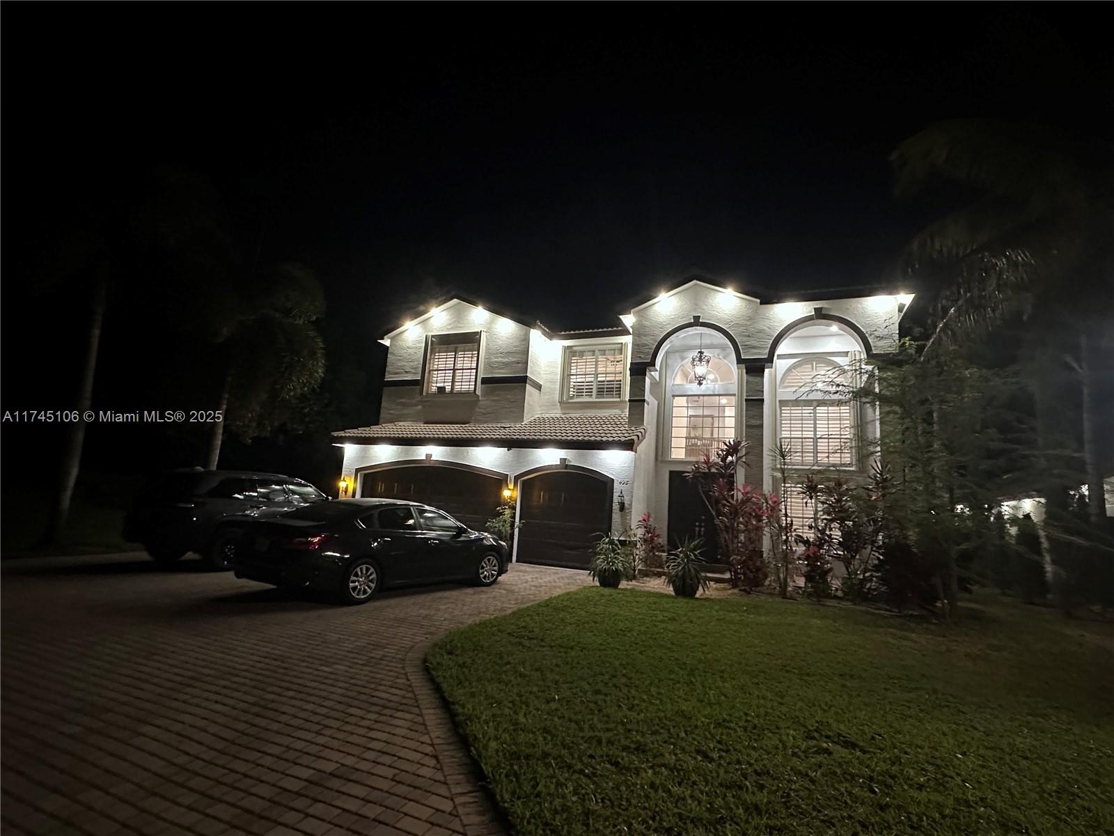 Welcome to your dream home in Sunset Lakes Miramar! This stunning 6-bedroom, 5-bathroom residence sits on a sprawling 15,772 sq ft corner lot that includes an extensive driveway w plenty of room for parking. Enjoy breathtaking lake view from this beautiful pool and spa area which is perfect for relaxation and entertaining. Step inside to discover a chef-inspired kitchen featuring dark cherry wood cabinetry, sleek black granite counter tops, and high-end stainless steel appliances with marble floors throughout. The open layout seamless connects the living and dining areas, making it ideal for family gatherings. the first floor includes a convenient full bath and bedroom, providing flexibility for guests or a home office. Don't miss this incredible opportunity to own a slice of paradise!