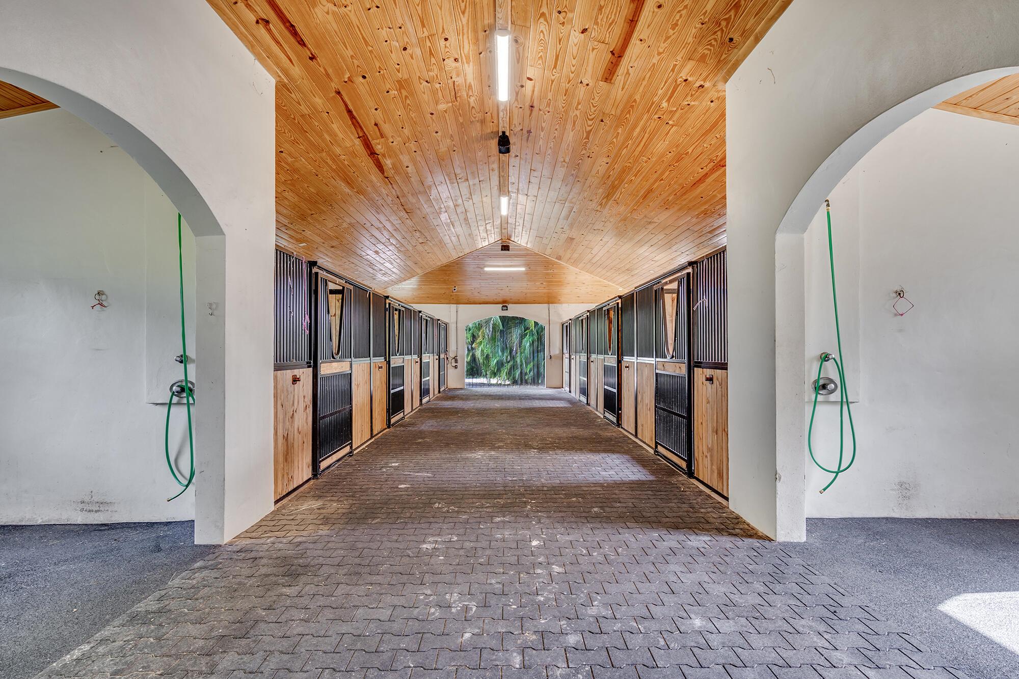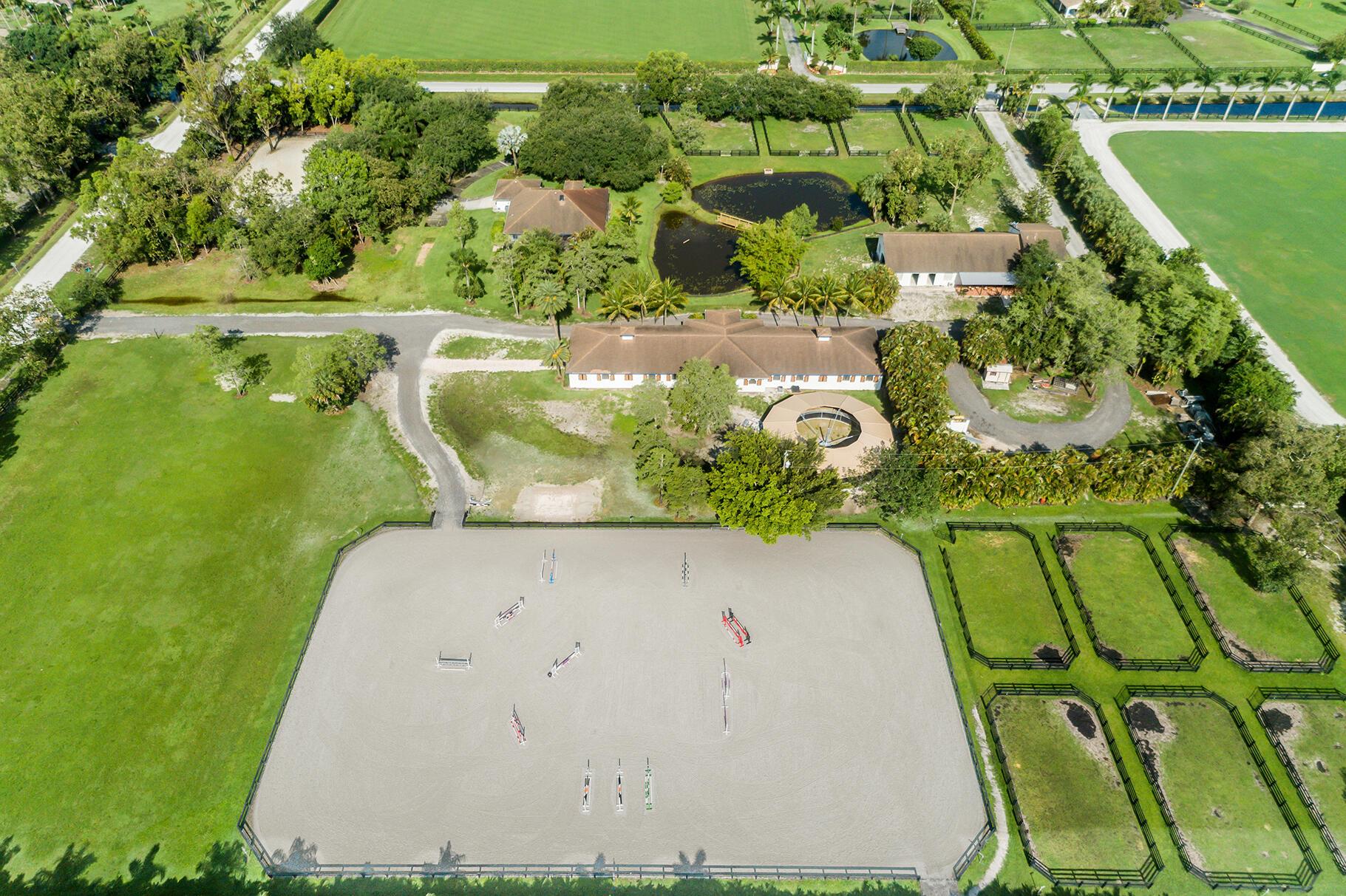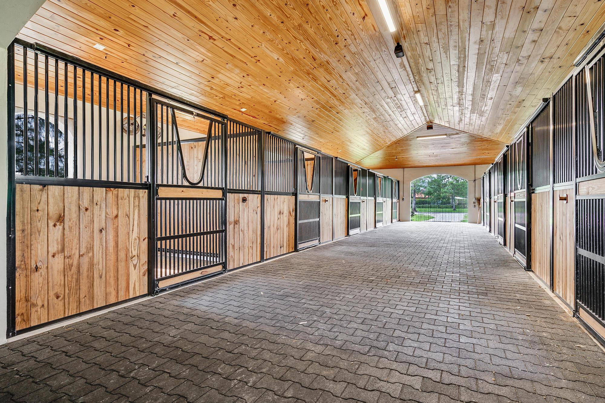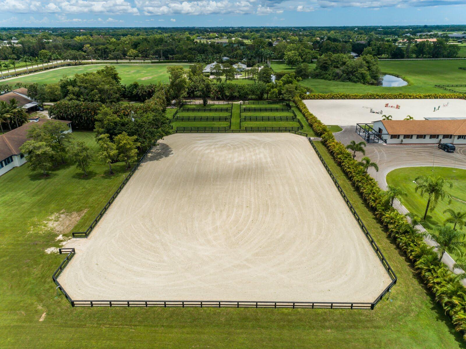 Enjoy the best of both worlds on this exceptional 10+-acre equestrian property, ideally located just minutes from Global and WEF while offering the tranquility of Wellington's farm life. This property combines top-tier equestrian amenities with luxurious living, providing everything needed for you and your horses. The 26-stall center-aisle barn is the standout feature of this property, equipped with 6 wash stalls, 2 tack rooms, a feed room, and a lounge. A separate building offers even more versatility, with a second lounge, 2 bathrooms, an oversized laundry room, and 2 spacious 2-bedroom, 1-bathroom apartments. Additionally, a huge storage area provides ample space for hay, shavings, tractors, golf carts, jumps, and farm equipment. Other equestrian facilities include 2 all weather arenas