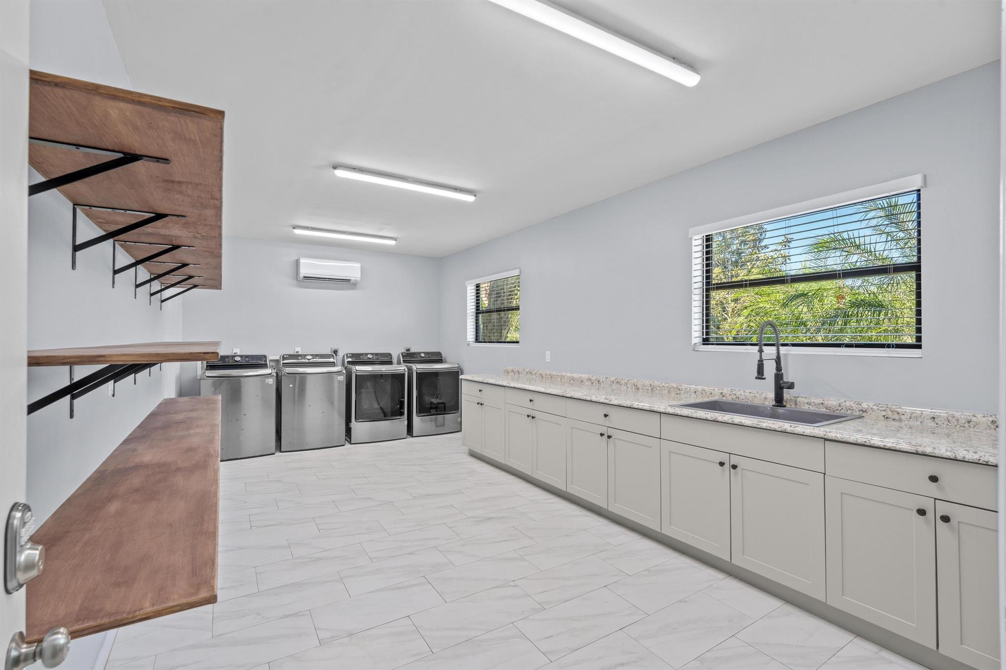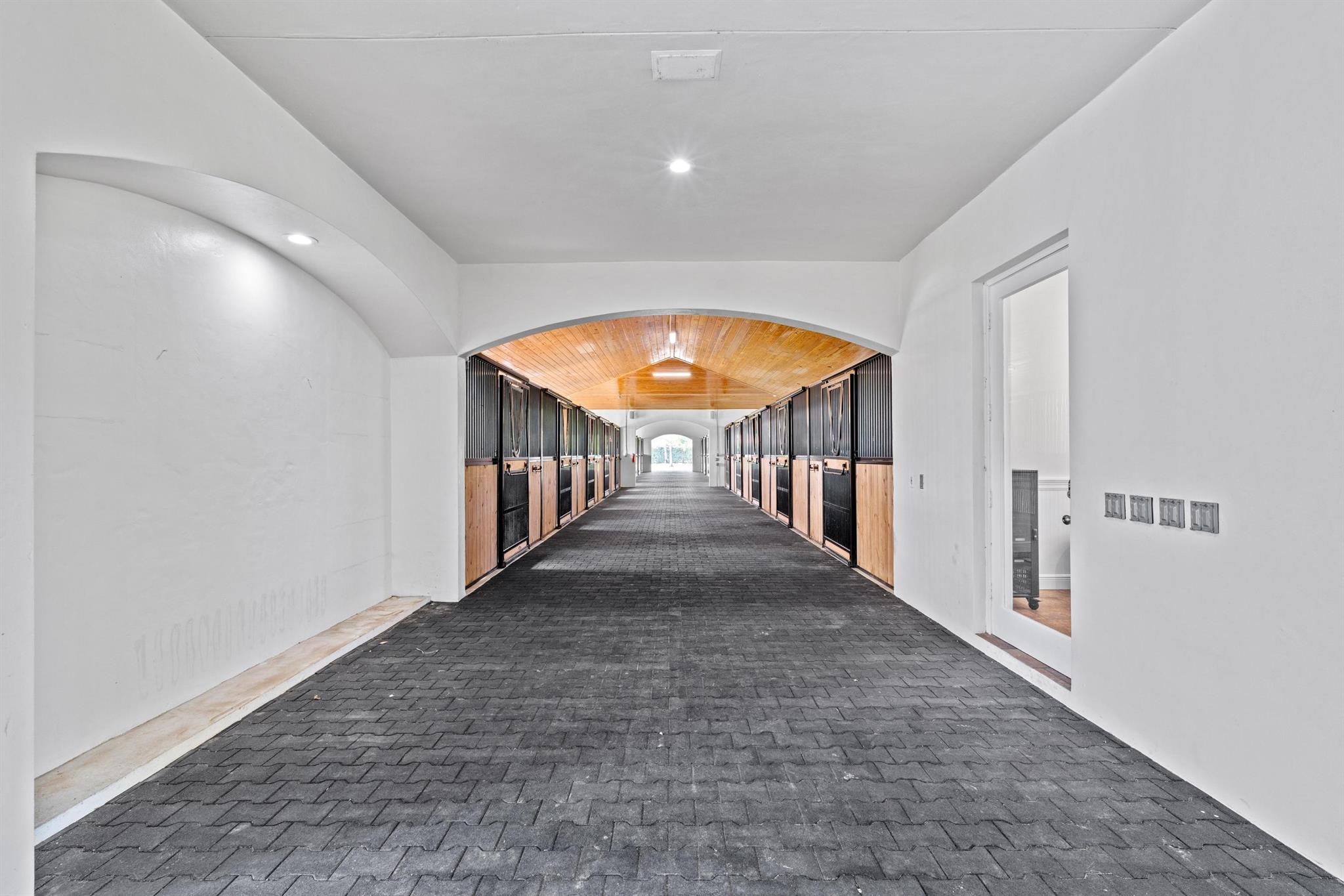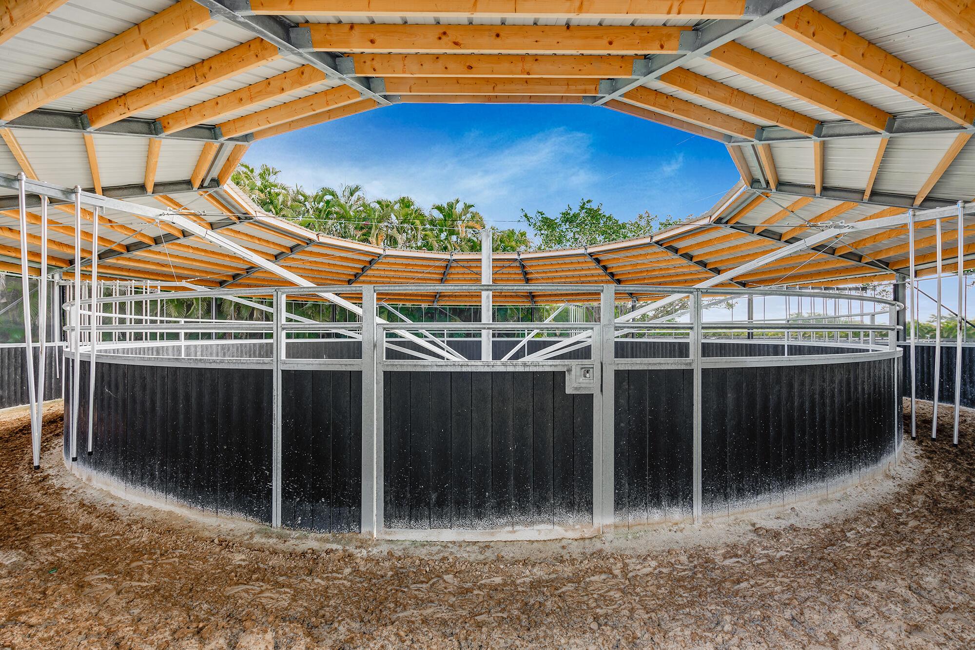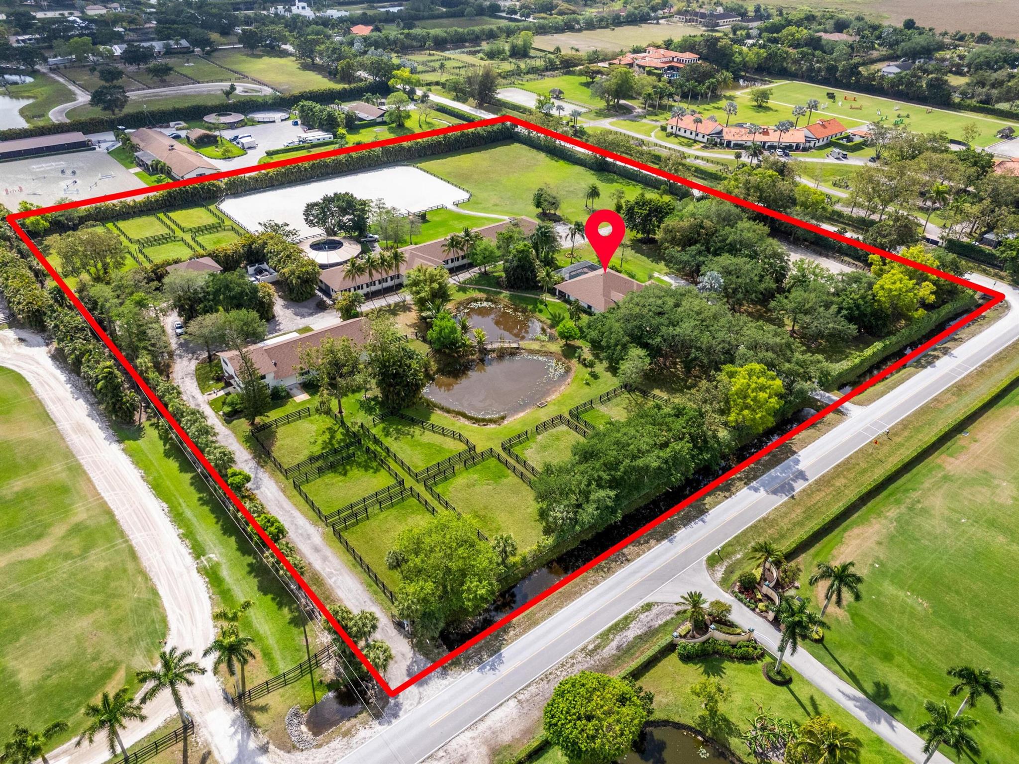Enjoy the best of both worlds on this exceptional 10+-acre equestrian property, ideally located just minutes from Global and WEF while offering the tranquility of Wellington's farm life. This property combines top-tier equestrian amenities with luxurious living, providing everything needed for you and your horses. The 26-stall center-aisle barn is the standout feature of this property, equipped with 6 wash stalls, 2 tack rooms, a feed room, and a lounge. A separate building offers even more versatility, with a second lounge, 2 bathrooms, an oversized laundry room, and 2 spacious 2-bedroom, 1-bathroom apartments. Additionally, a huge storage area provides ample space for hay, shavings, tractors, golf carts, jumps, and farm equipment. Other equestrian facilities include 2 all weather arenas